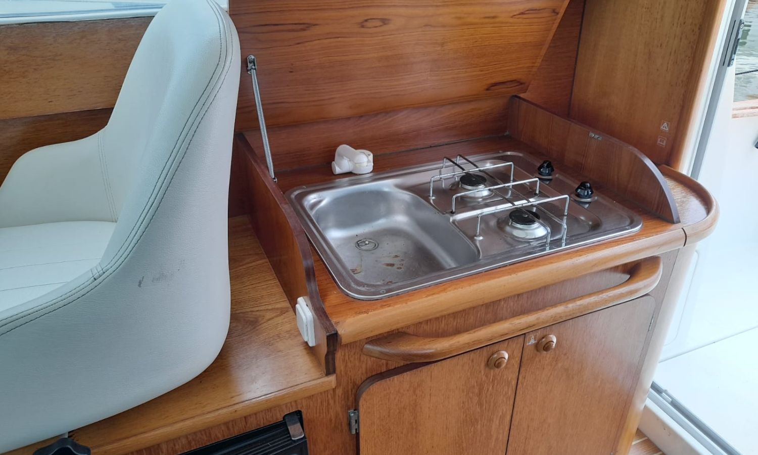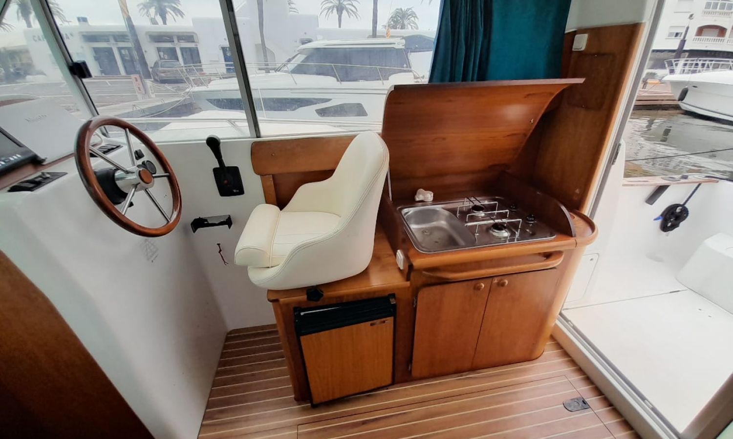 Electric windlass - Offshore power 220 V - Battery charger - Gas stove - Refrigerator 12 V - GPS/Deep fish finder - Marine WC - Swim platform.Boat description