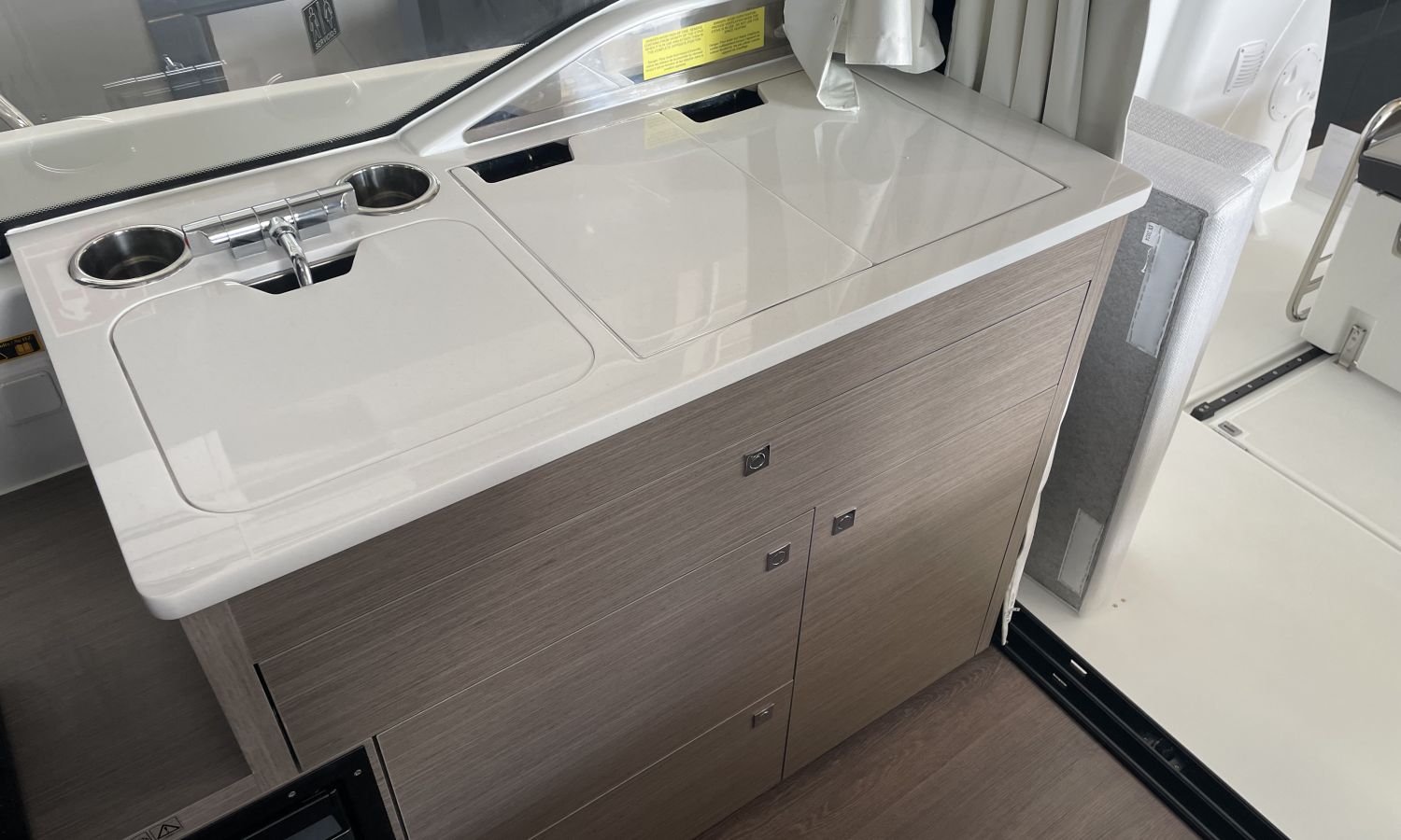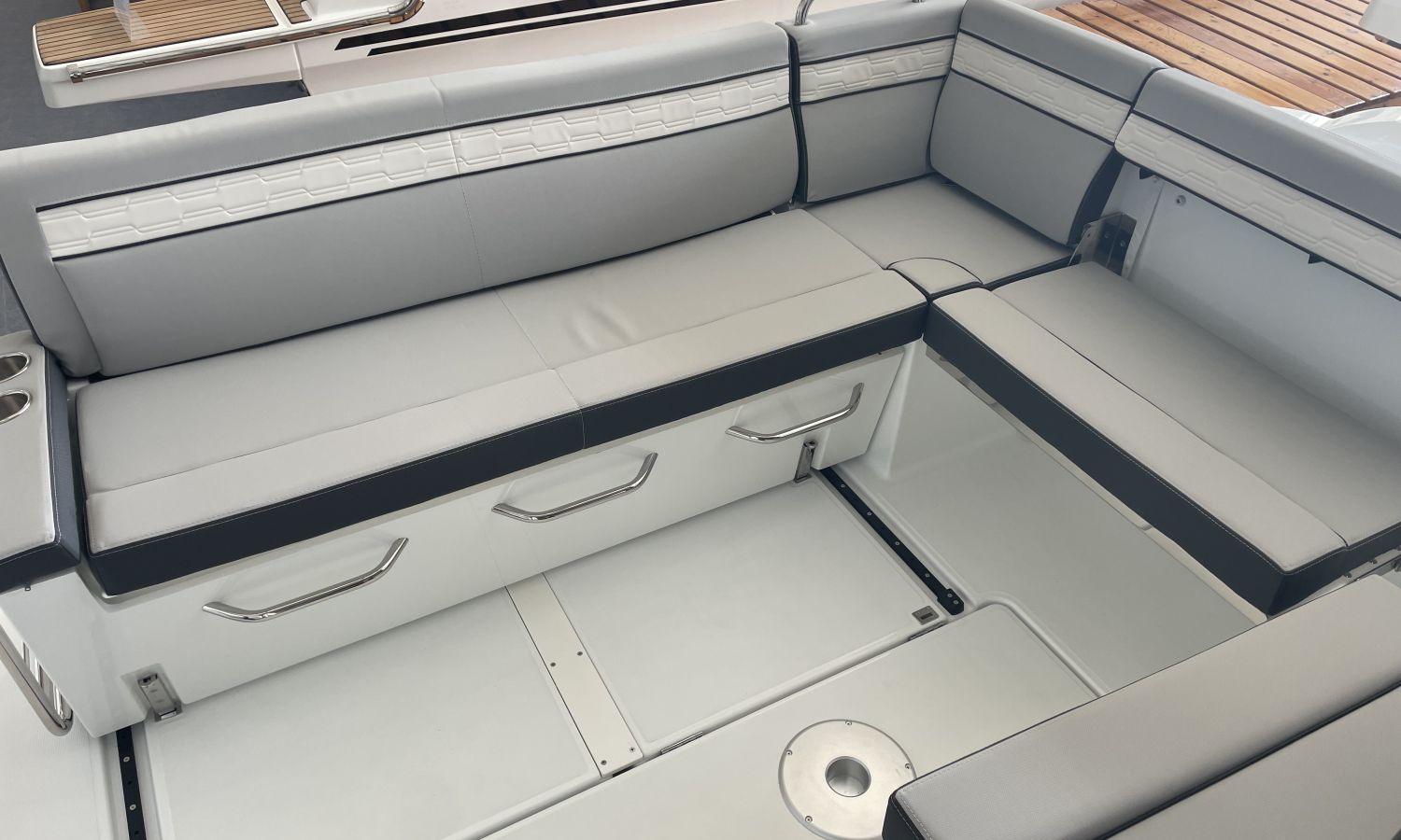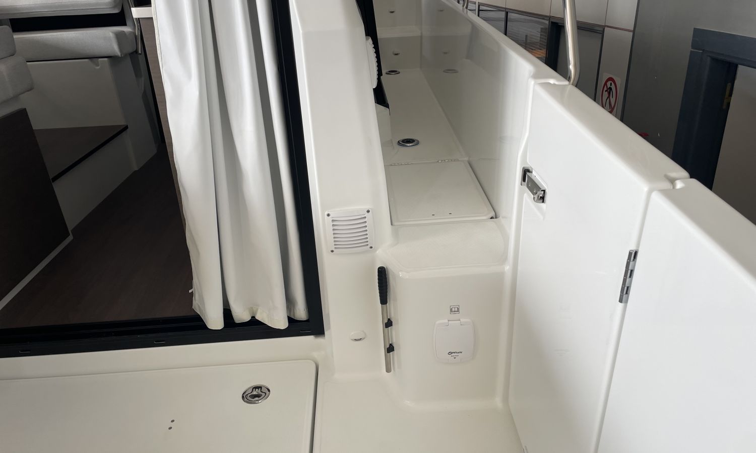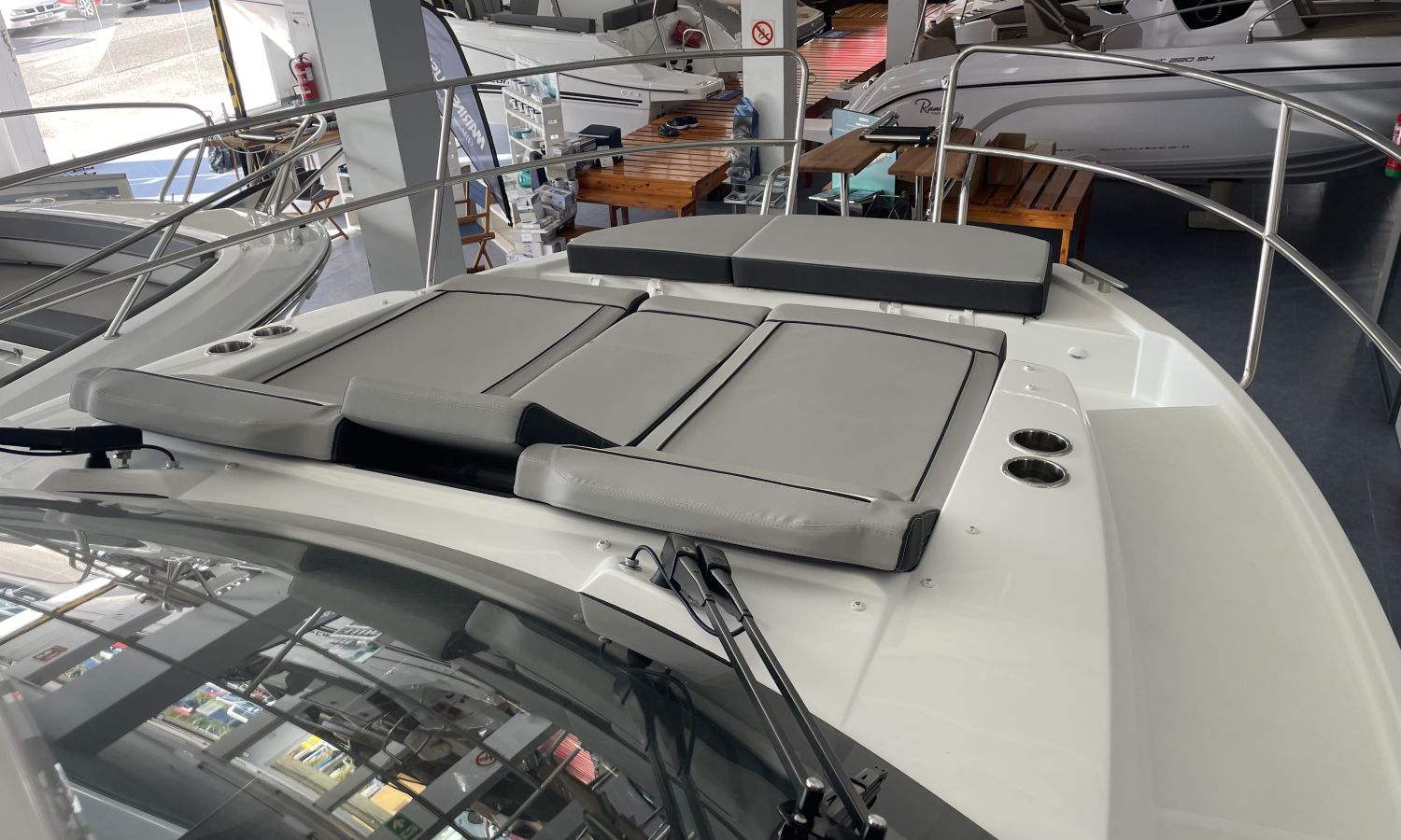 EQUIPMENT LEVEL PREMIERE - COMFORT PACK - MOORING KIT - ANCHORING KIT - AUDIO FUSION RA210 PACK - INTERIOR CURTAINS - TAPESTRIES SALON JUMBO PURE - GARMIN ELECTRONIC PACK - VHF RADIO - BATH ROOM IN U, CONVERTIBLE INTO SOLARIUM - DOUBLE BED COMPLEMENT IN THE LIVING ROOM SET OF - LADDER FOR CHEST IN FLOOR BATH - CUSHIONS OF SUN BATH PROA WITH LOUNGE CHAIRS - EXTRA SUN BATH PROA XXL - AUTOMATIC FLAPS ZIPWAKE - LUGGAGE CARRIERS IN THE ROOF TIMONERIA - HIGH SUMMER CABINETS IN THE KITCHEN - HIGH STOWAGE CABINETS IN THE PROW CABIN - SUN CANOPY COCKPIT GRAPHITE - BOW LADDER WITH WOODEN PLATFORM - PILOT SEAT SPINNING - CLAXÓN - PRE-RIGGING YAMAHA 2x 150-250 SBW LEVER ELEC. - TRANSPORT CHANTIER NAVAL - SHIPPING SHIPYARD - COSTA-BRAVA - PREPARATION, ASSEMBLY, LAUNCHING AND DELIVERY WITH TESTS AT SEA - ANTIFOULING PAINT.Boat description