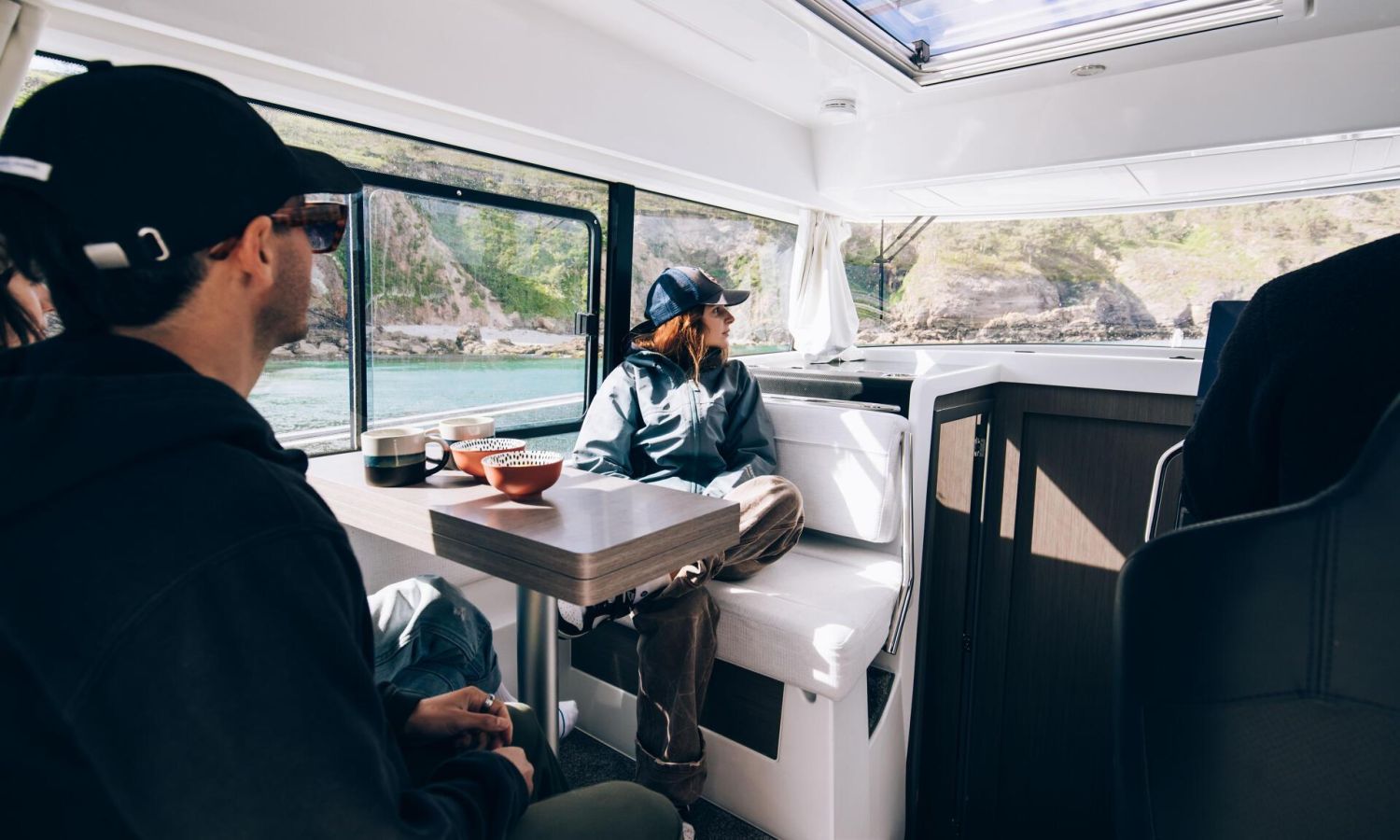 The Merry Fisher 895 Sport Series2 shows more than ever an adventurous look: its inverted windscreen, its large hull windows, its black bonnet and its colours reinforce this identity. But this model also invites its passengers to moments of conviviality and relaxation. The forward cabin is a real independent saloon, while the cabins, perfectly ventilated and bright, invite you to a well-deserved and peaceful rest.