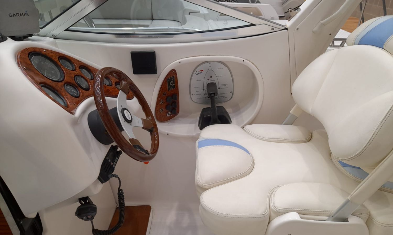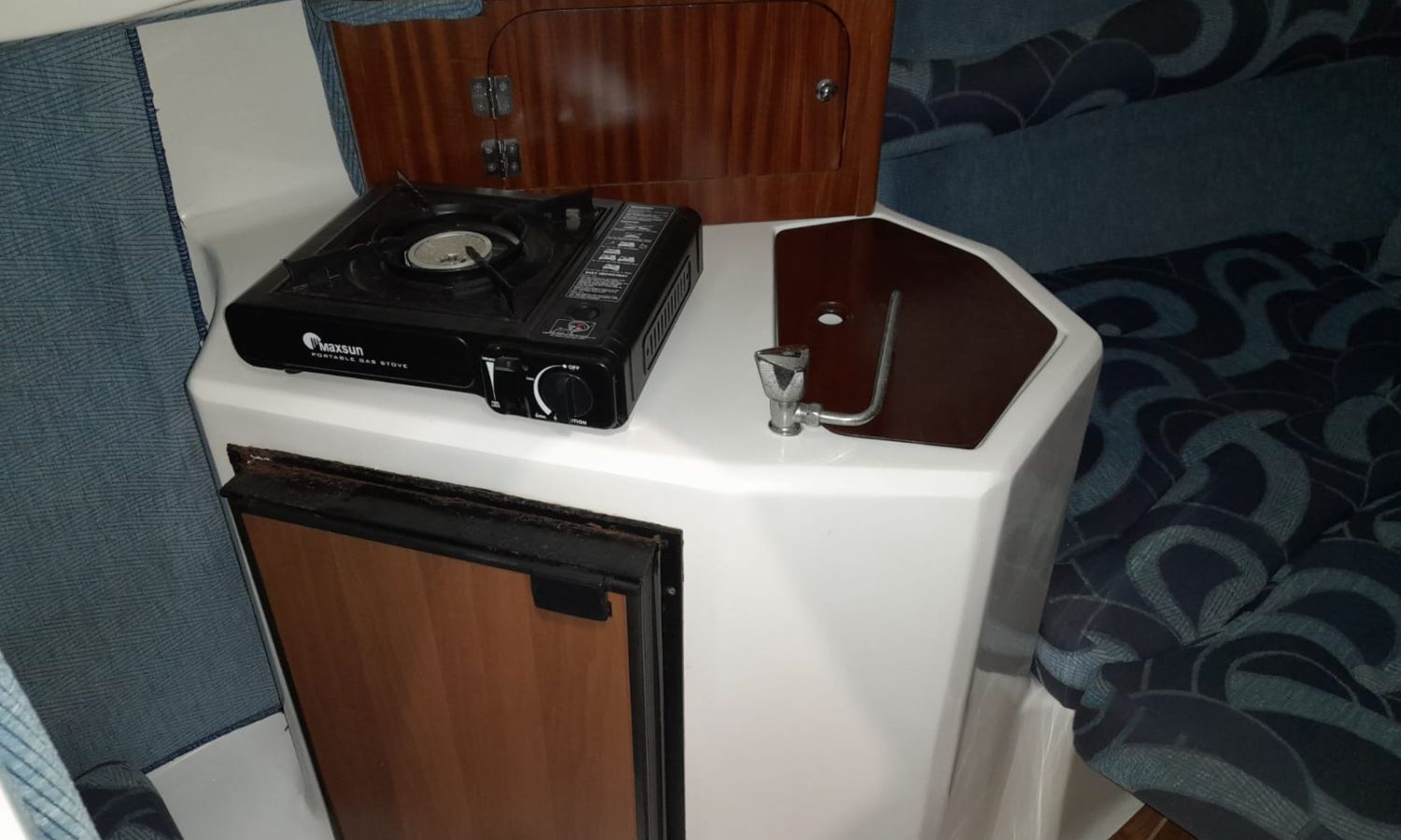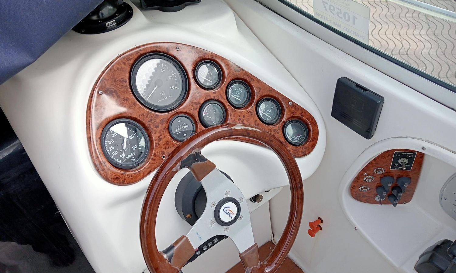 Bimini top - Stern shower - Stern platform with bathing ladder - Stern sundeck - Cockpit table - Wet-bar with sink - Bowcushions - Refrigerator 12 V. - Gas stove - Compas - GPS -VHF - Chain and anchor - Marine WC - Cabin - Antifouling.Boat description