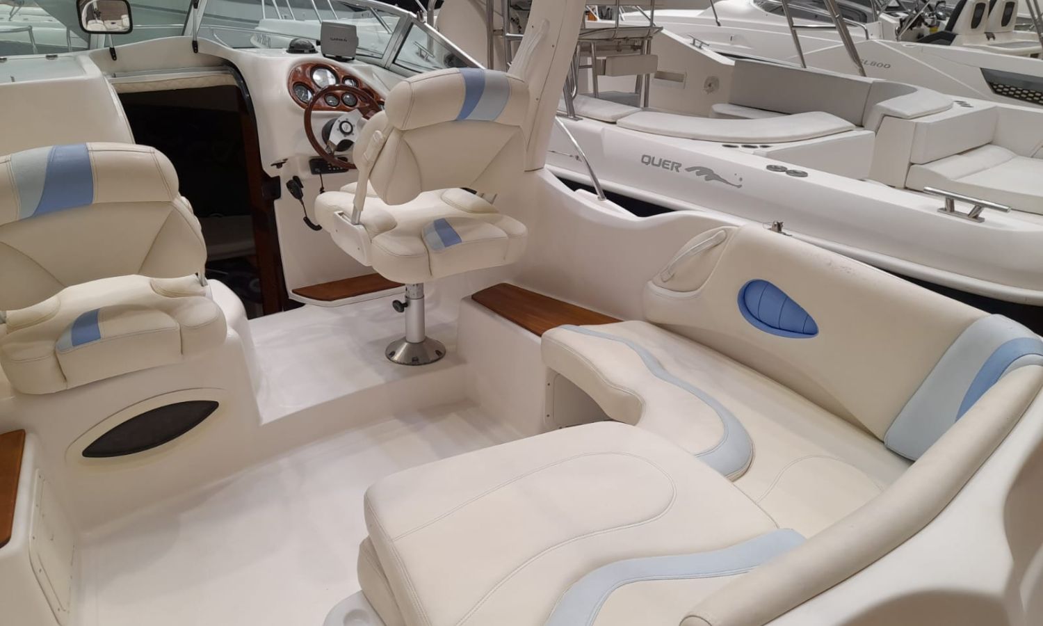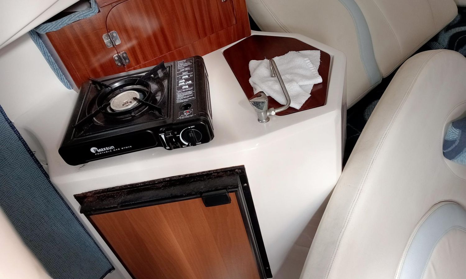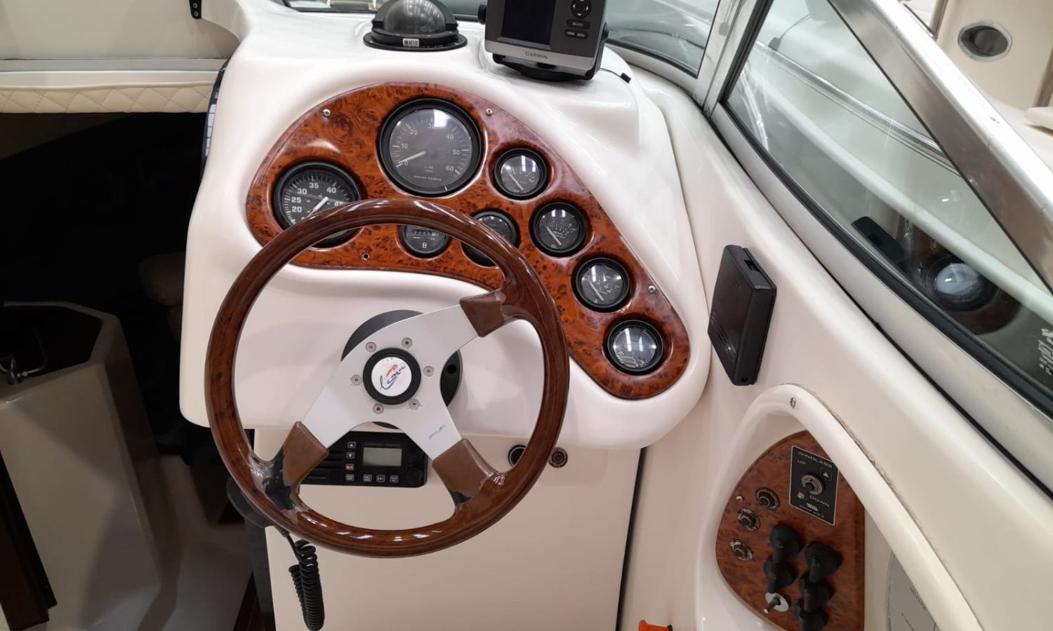 Bimini top - Stern shower - Stern platform with bathing ladder - Stern sundeck - Cockpit table - Wet-bar with sink - Bowcushions - Refrigerator 12 V. - Gas stove - Compas - GPS -VHF - Chain and anchor - Marine WC - Cabin - Antifouling.Boat description