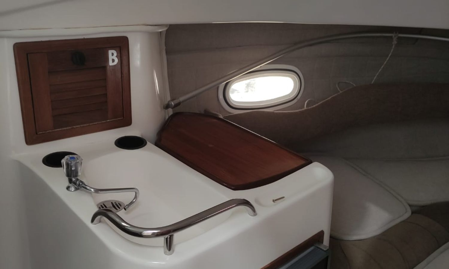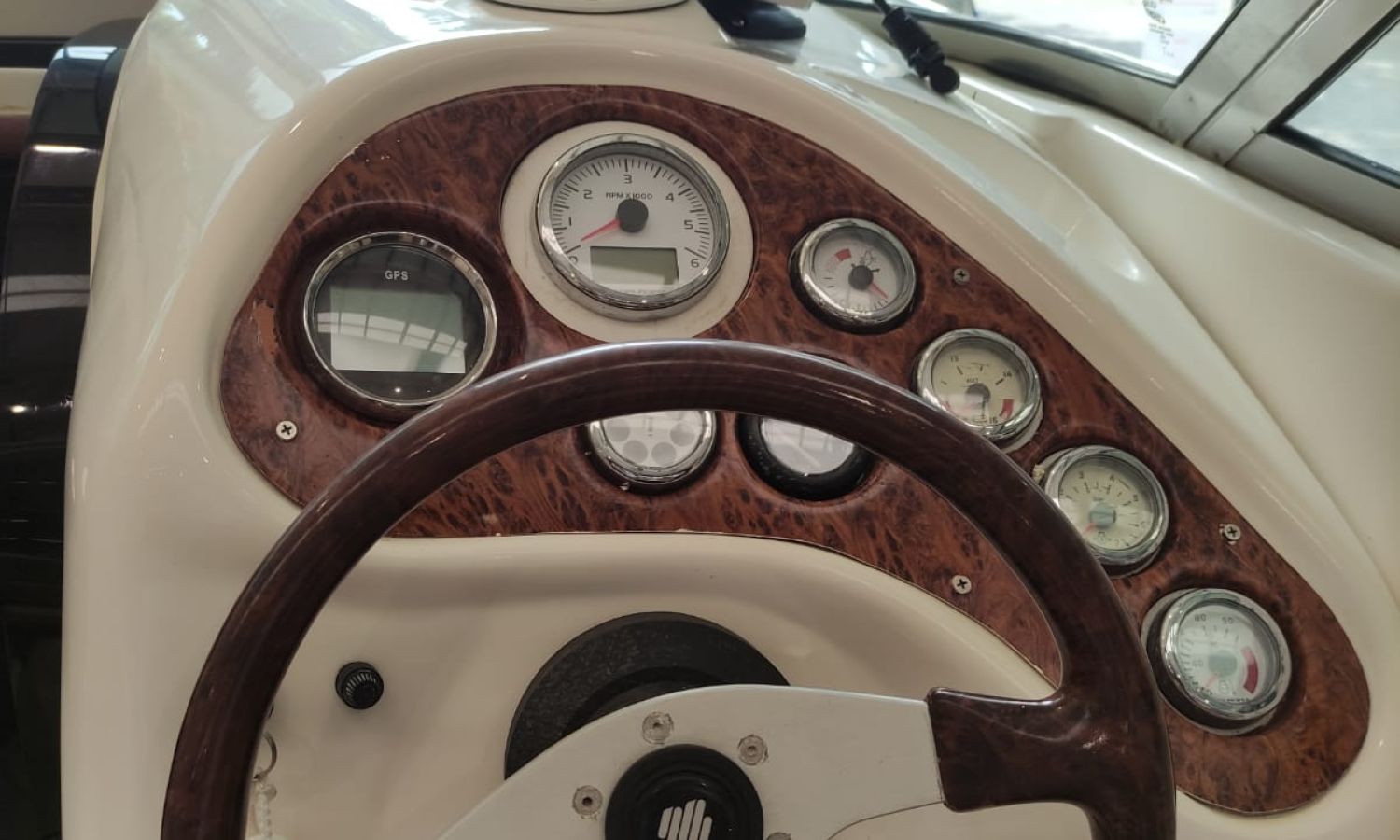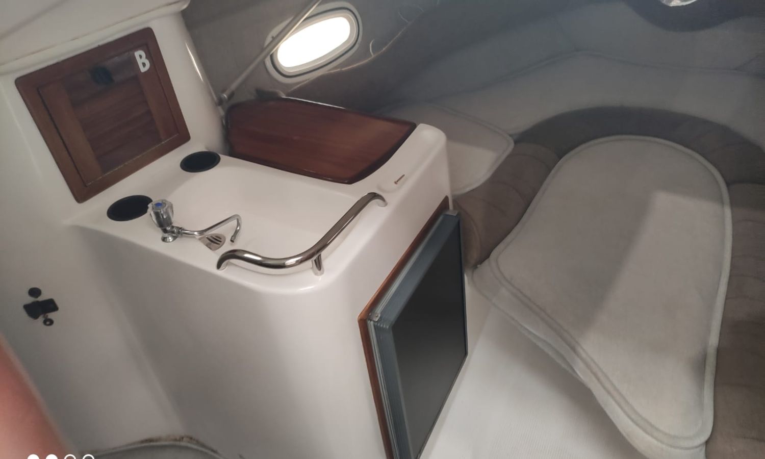 Electric windlass - VHF - Bimini top - Depth finder - Refrigerator 12 V - Underwater lights - Chemical WC - Audio equipment - Cockpit table - Transom shower - Rod holders.Boat description