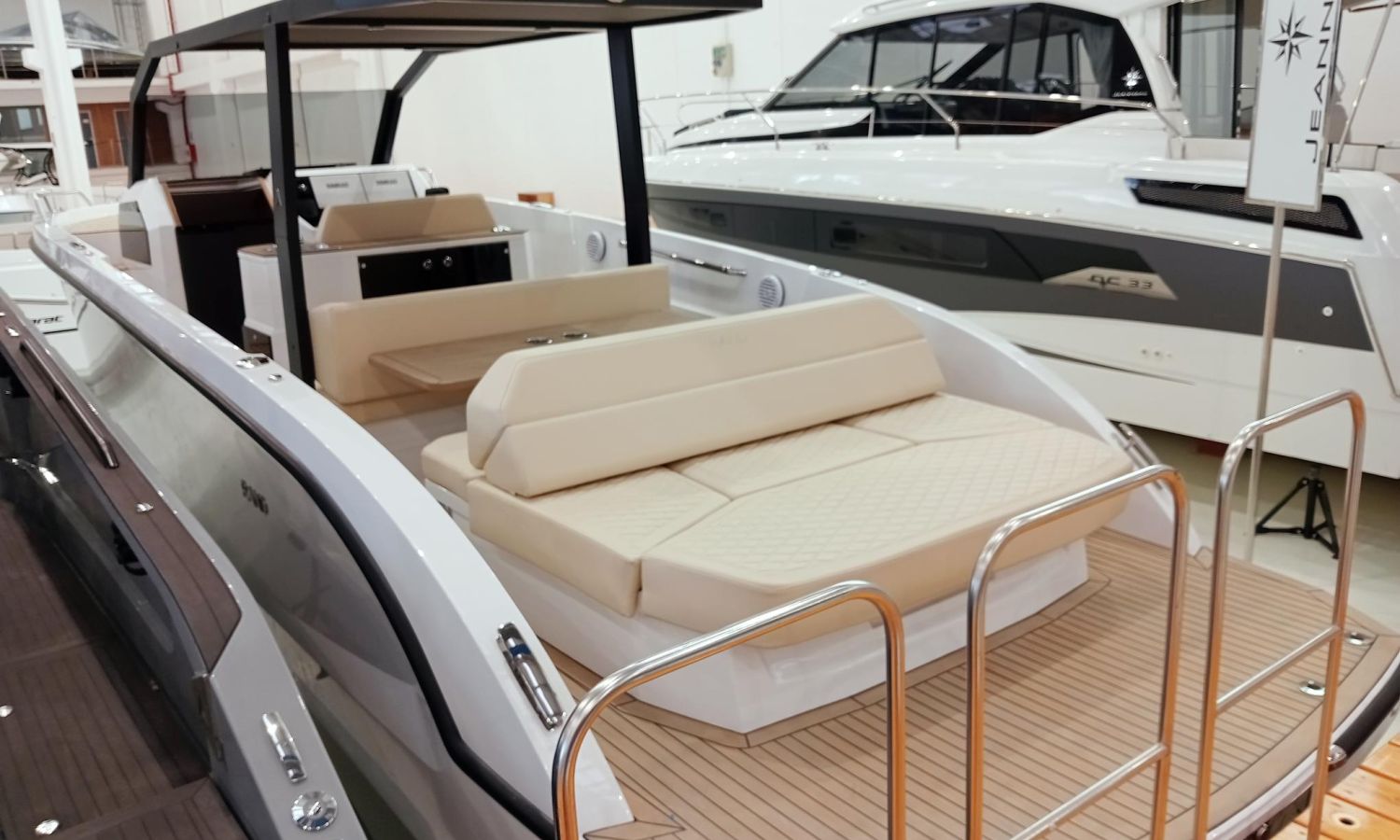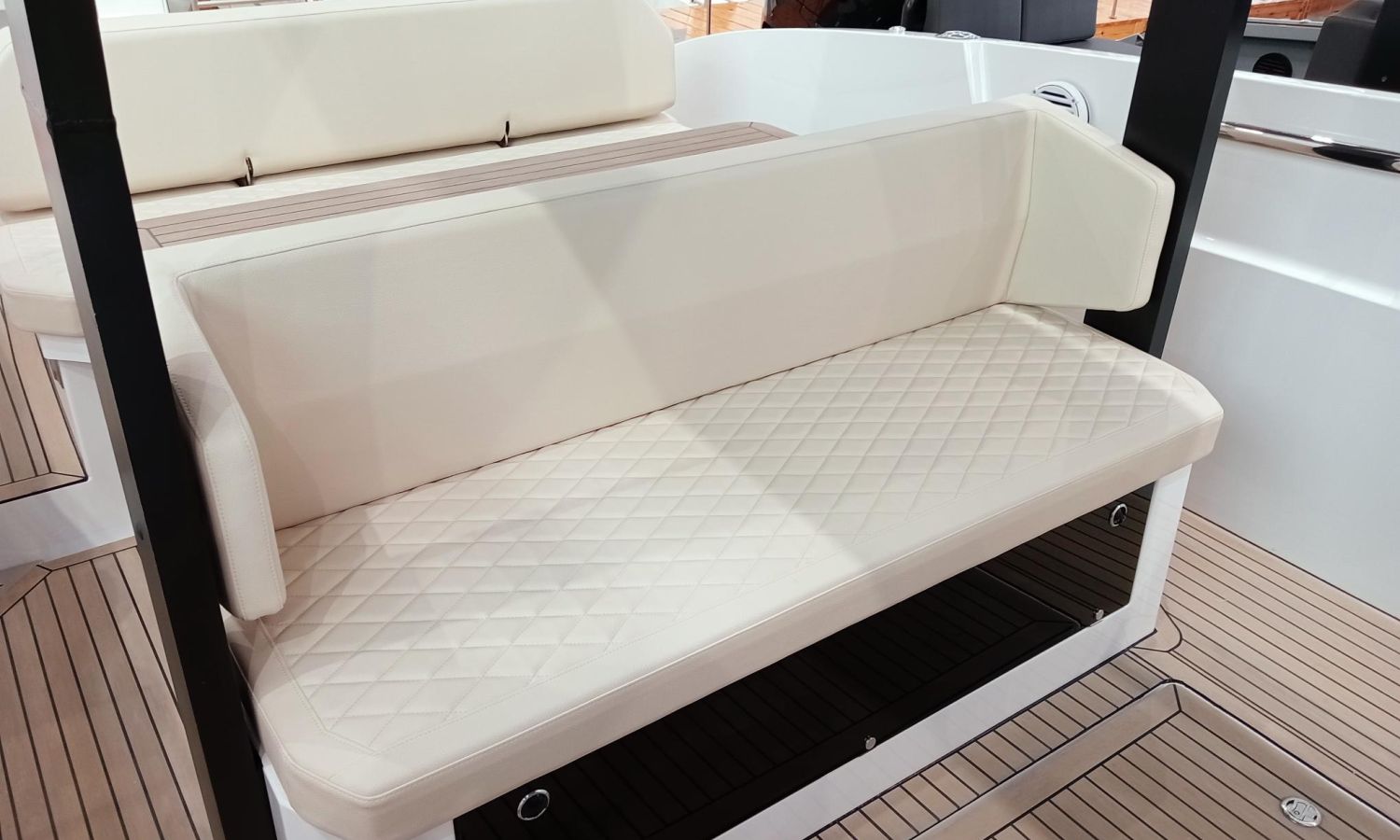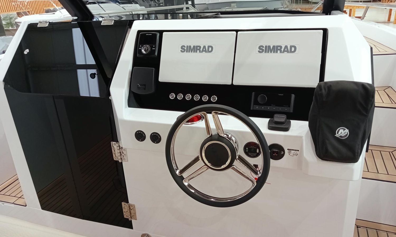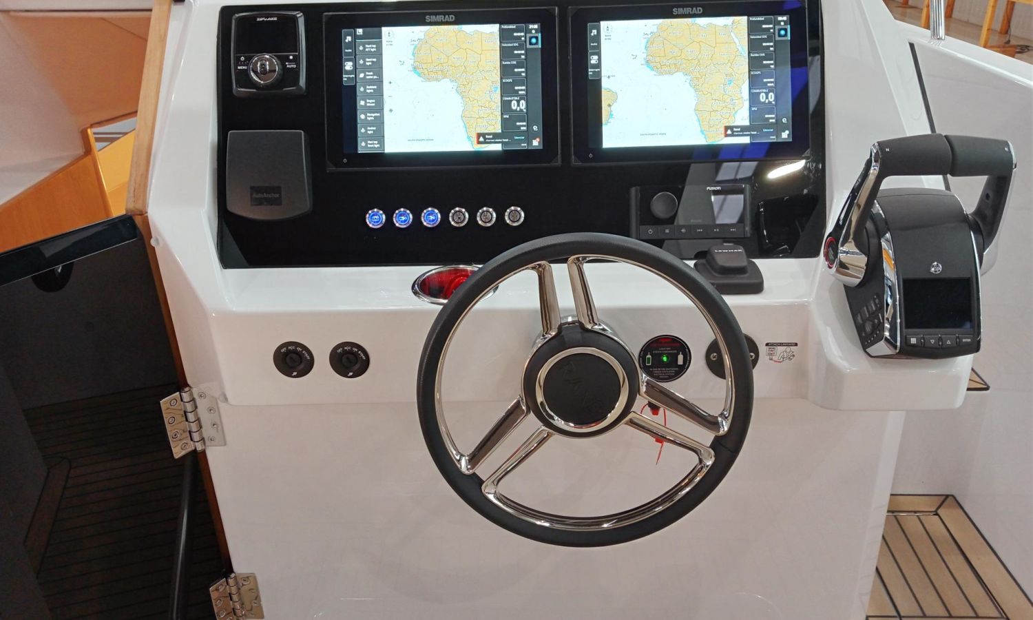 COLOUR WHITE PEBBLE (RAL 9003) - DAIMON UPHOLSTERY - AFT DECK SHOWER - FENDERS AND SUPPORTS - PREMIUM BATHROOM LADDER - EXTENDABLE AFT AWNING - PREMIUM LIGHTING KIT - UPGRADE TO ELECTRIC TOILET - 2º LUXE COOLER - PORT SOCKET + BATTERY CHARGER - UPGRADE TO 2 12" TOUCH SCREENS WITH INTERACTIVE CONTROLS IN STEERING GEAR - FLAPS ZIPWAKE - BOW THRUSTER - ELECTRIC WINDLASS WITH ANCHORING KIT AND CHAIN COUNTER - SHIPYARD TRANSPORT - COSTA-BRAVA.Boat description
