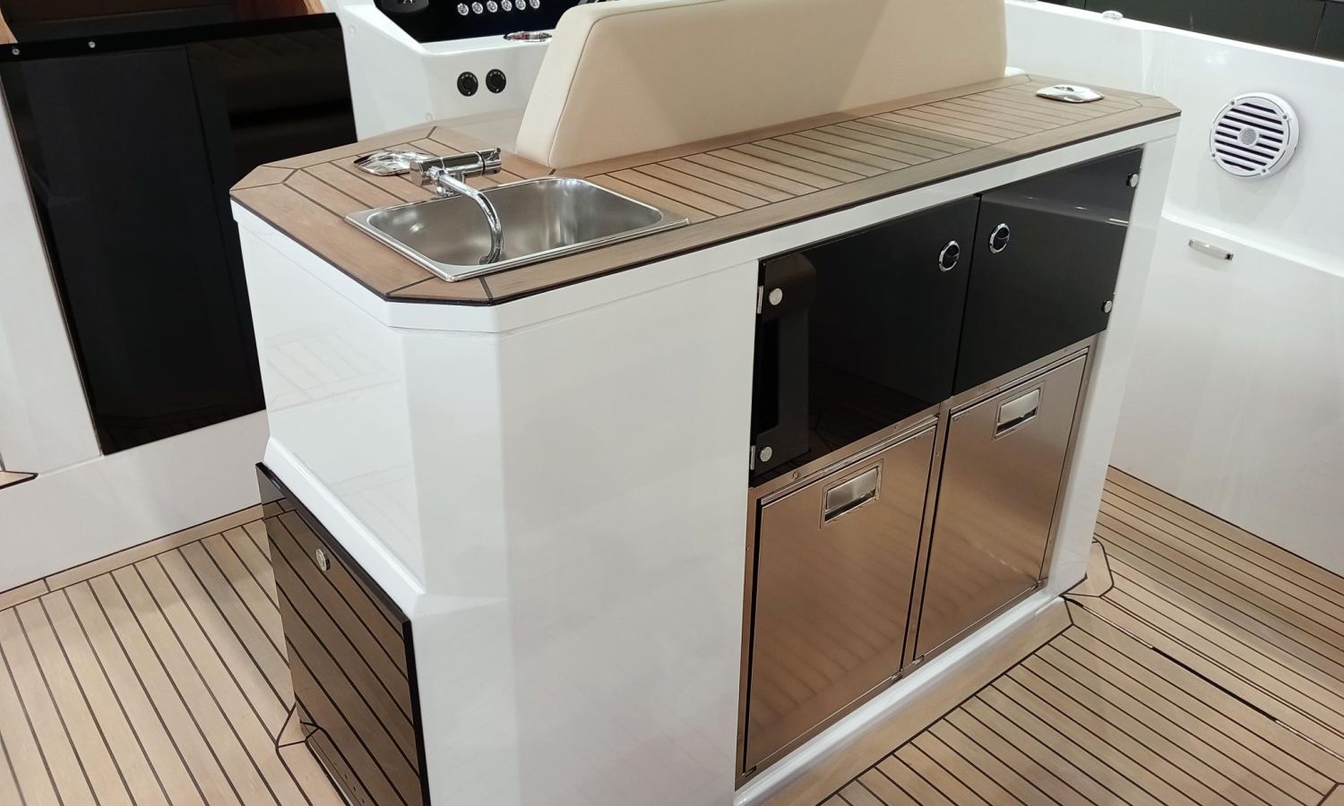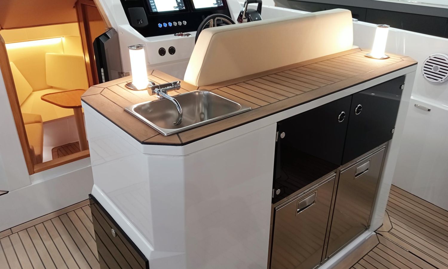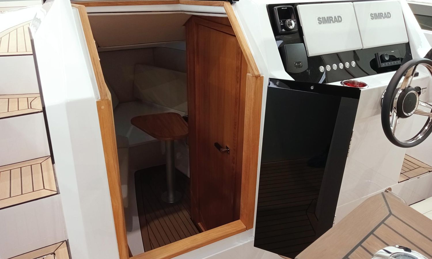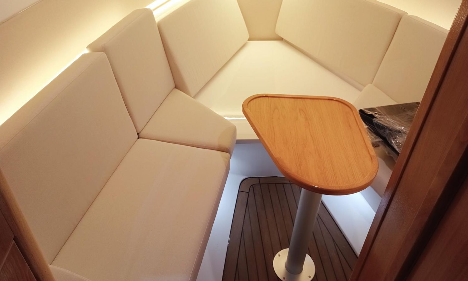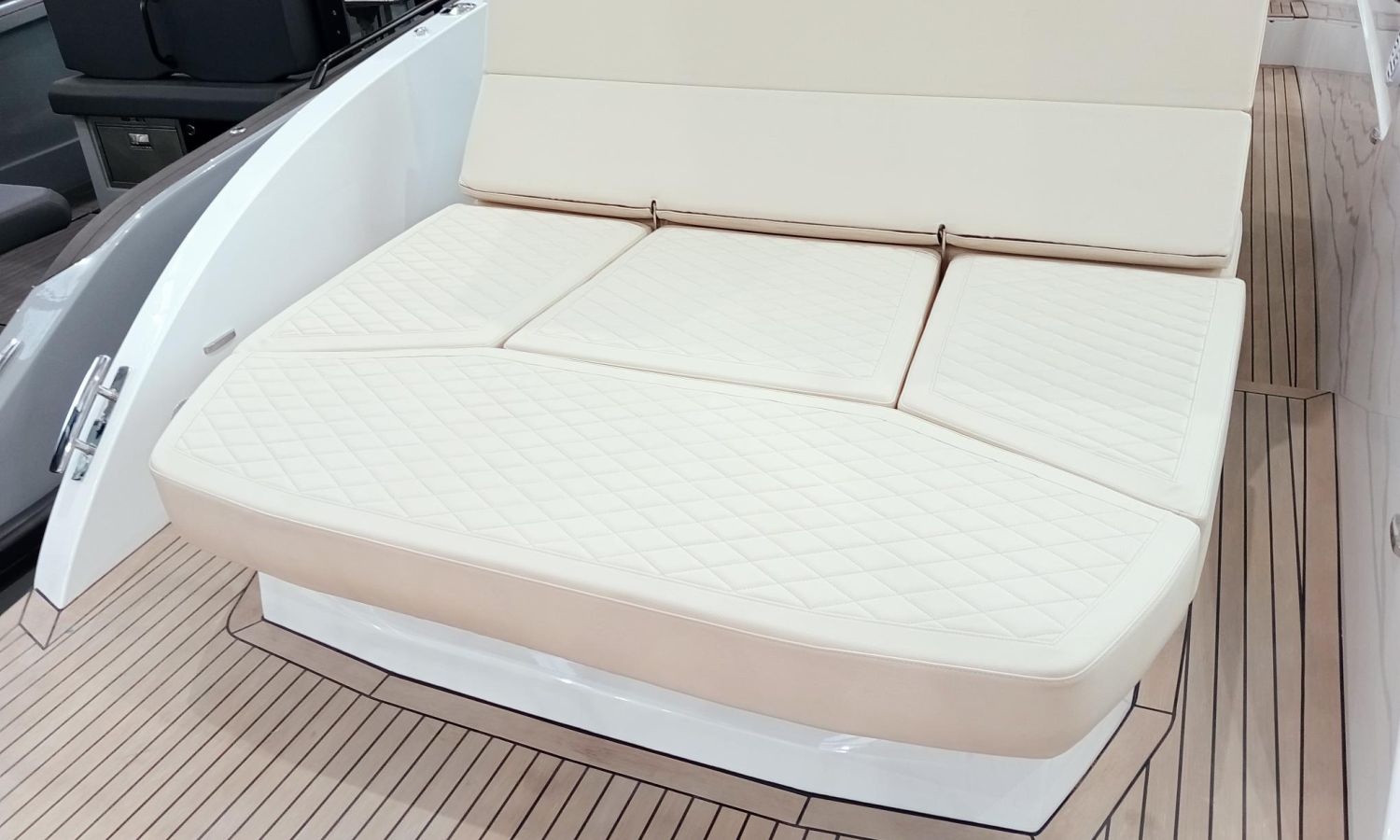 COLOUR WHITE PEBBLE (RAL 9003) - DAIMON UPHOLSTERY - AFT DECK SHOWER - FENDERS AND SUPPORTS - PREMIUM BATHROOM LADDER - EXTENDABLE AFT AWNING - PREMIUM LIGHTING KIT - UPGRADE TO ELECTRIC TOILET - 2º LUXE COOLER - PORT SOCKET + BATTERY CHARGER - UPGRADE TO 2 12" TOUCH SCREENS WITH INTERACTIVE CONTROLS IN STEERING GEAR - FLAPS ZIPWAKE - BOW THRUSTER - ELECTRIC WINDLASS WITH ANCHORING KIT AND CHAIN COUNTER - SHIPYARD TRANSPORT - COSTA-BRAVA.Boat description