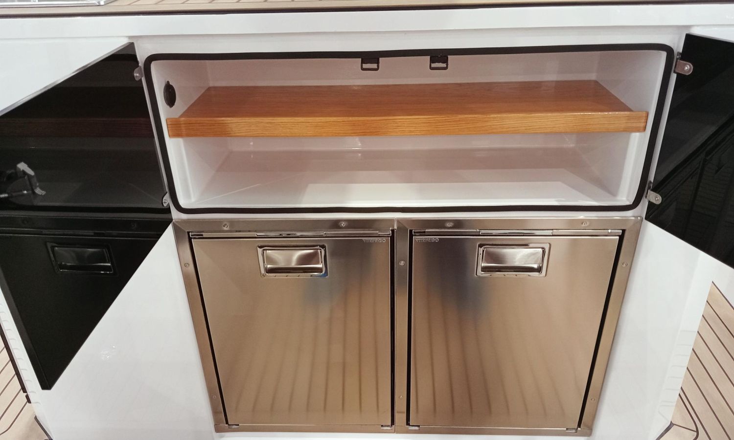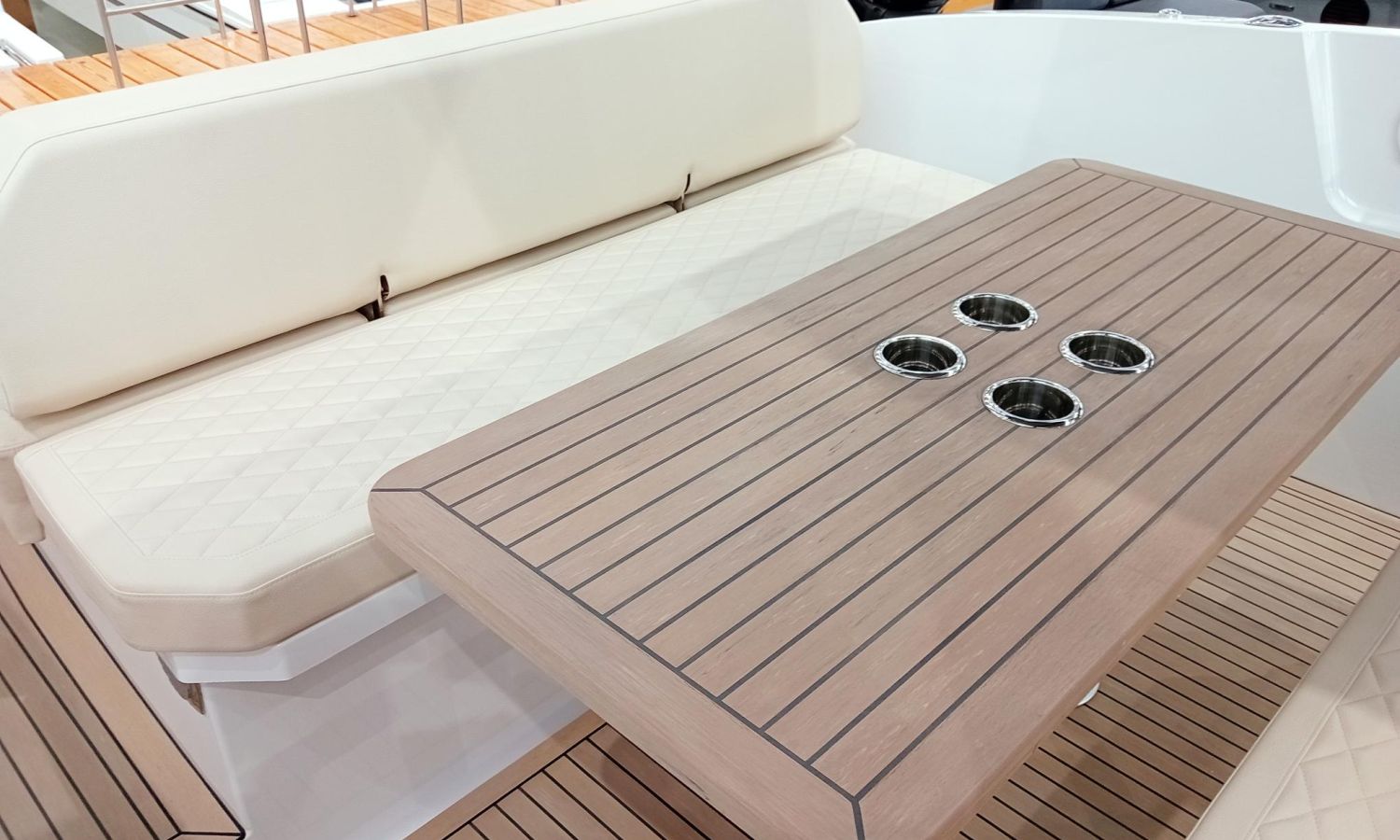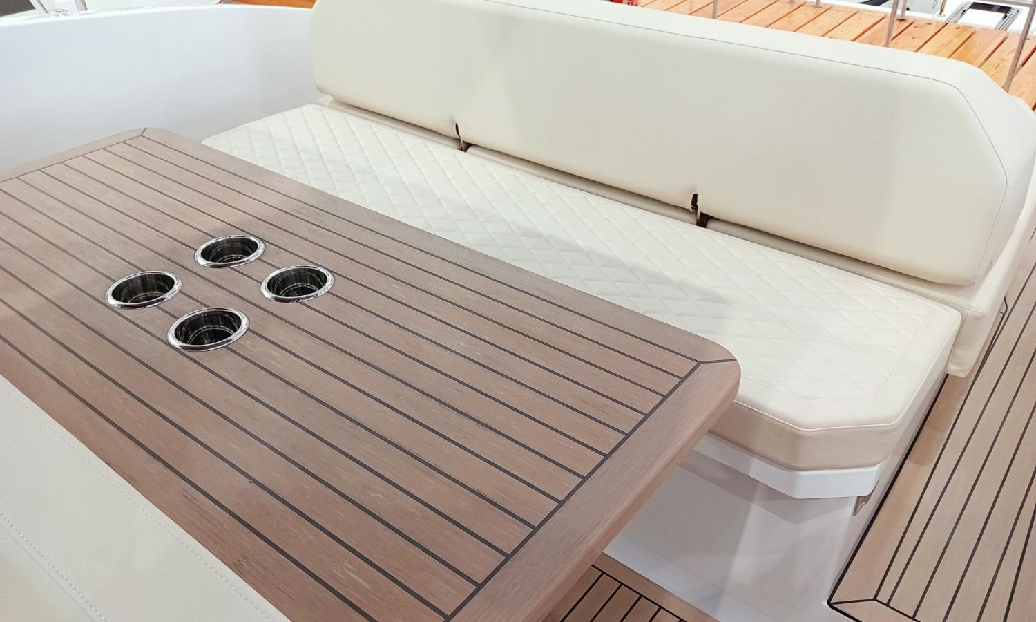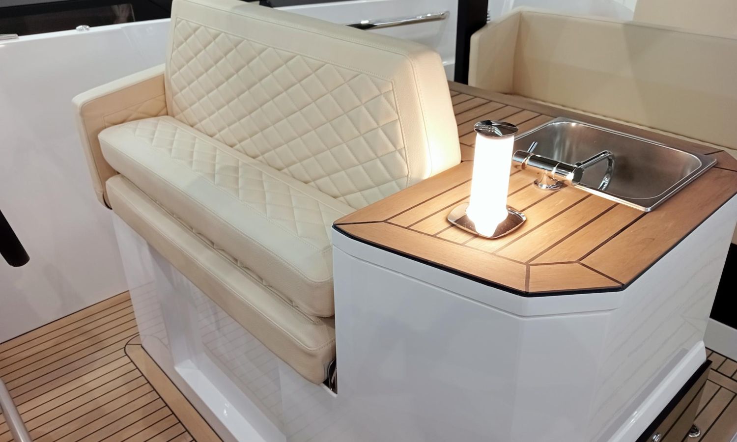 COLOUR WHITE PEBBLE (RAL 9003) - DAIMON UPHOLSTERY - AFT DECK SHOWER - FENDERS AND SUPPORTS - PREMIUM BATHROOM LADDER - EXTENDABLE AFT AWNING - PREMIUM LIGHTING KIT - UPGRADE TO ELECTRIC TOILET - 2º LUXE COOLER - PORT SOCKET + BATTERY CHARGER - UPGRADE TO 2 12" TOUCH SCREENS WITH INTERACTIVE CONTROLS IN STEERING GEAR - FLAPS ZIPWAKE - BOW THRUSTER - ELECTRIC WINDLASS WITH ANCHORING KIT AND CHAIN COUNTER - SHIPYARD TRANSPORT - COSTA-BRAVA.Boat description
