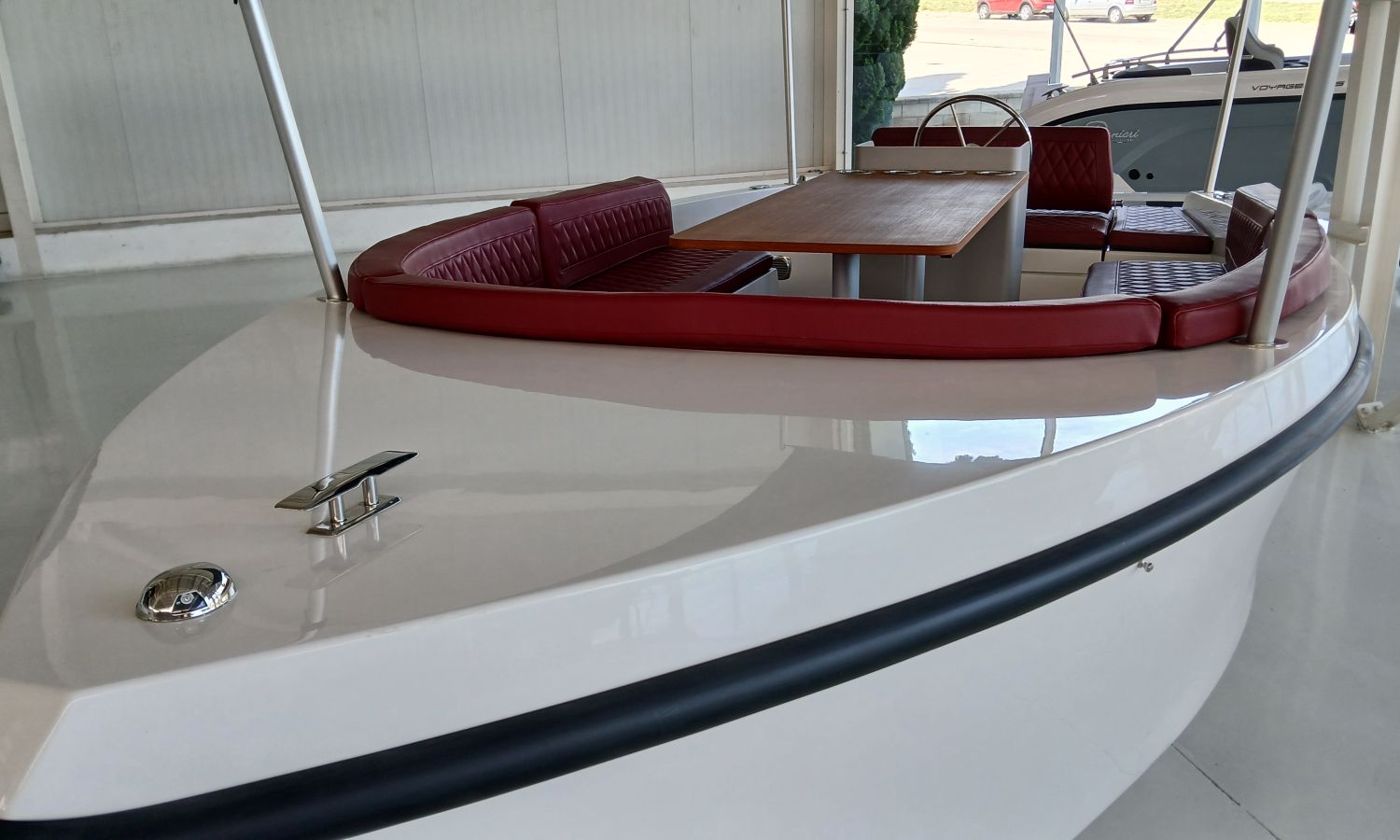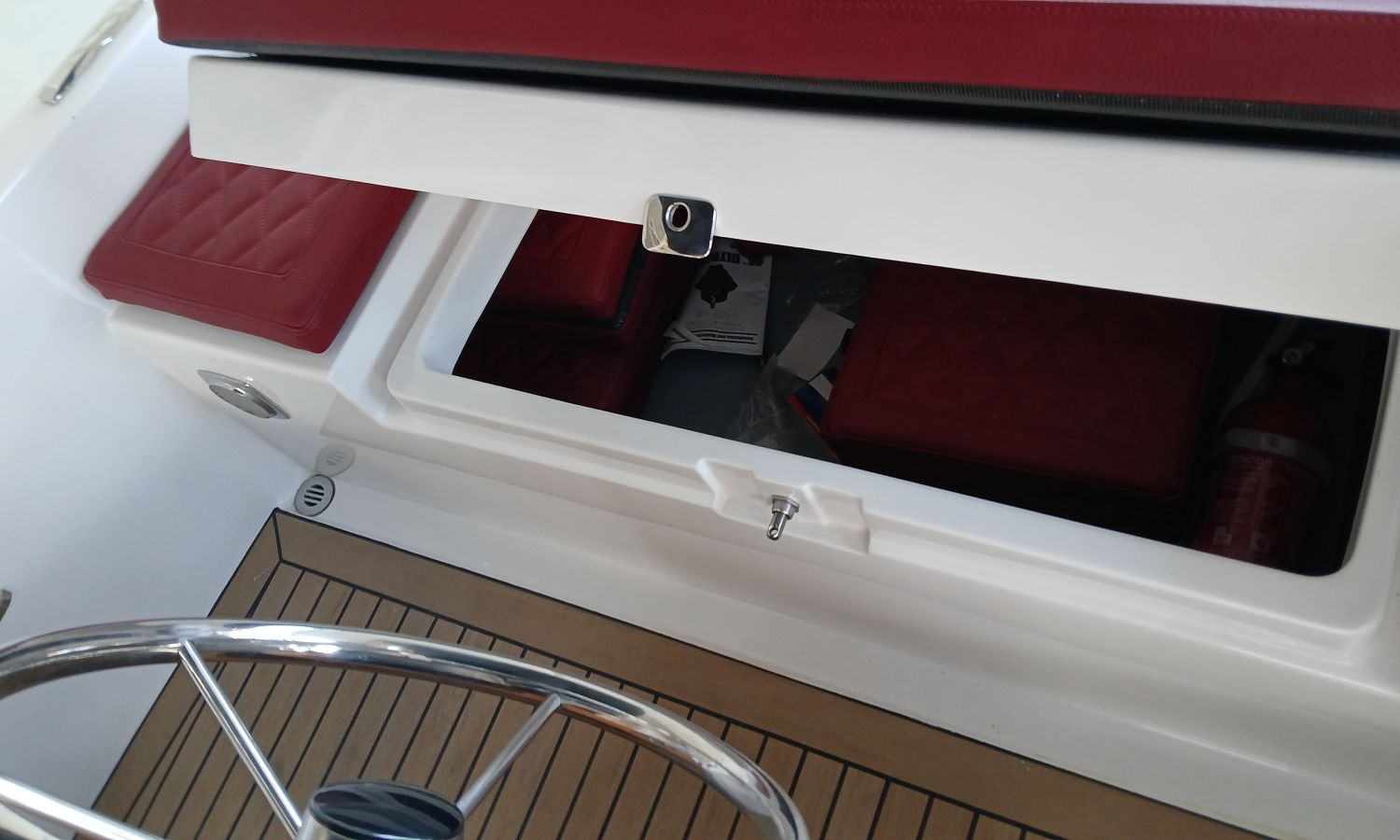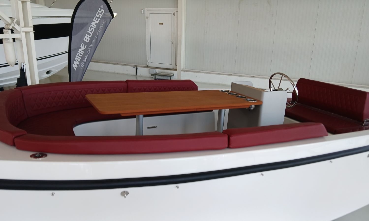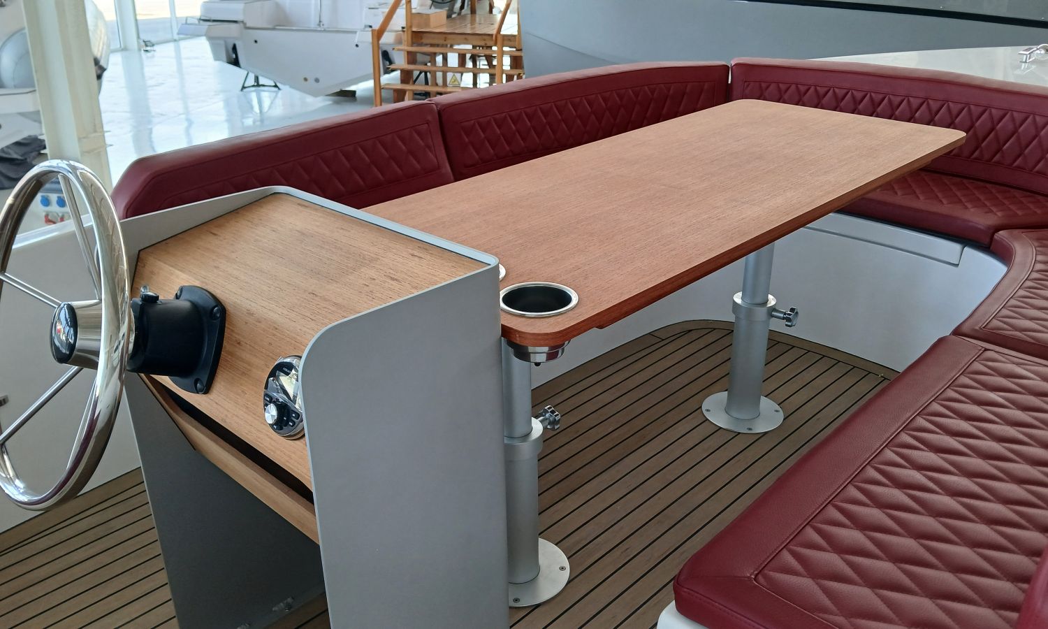 Hull custom colour White - Hima type canopy - Full anchorage cover - Swim ladder - Navigation lights - Rear co-pilot seat - Pilot seat back - Coasters - Bow solarium cushions - Fenders - Bathroom ladder - Coasters on bathtub table - Cockpit Led lights - Daimond Stitched Leadther Burgundy (BG 3161) - Transport Shipyard-Costa-Brava.Boat description