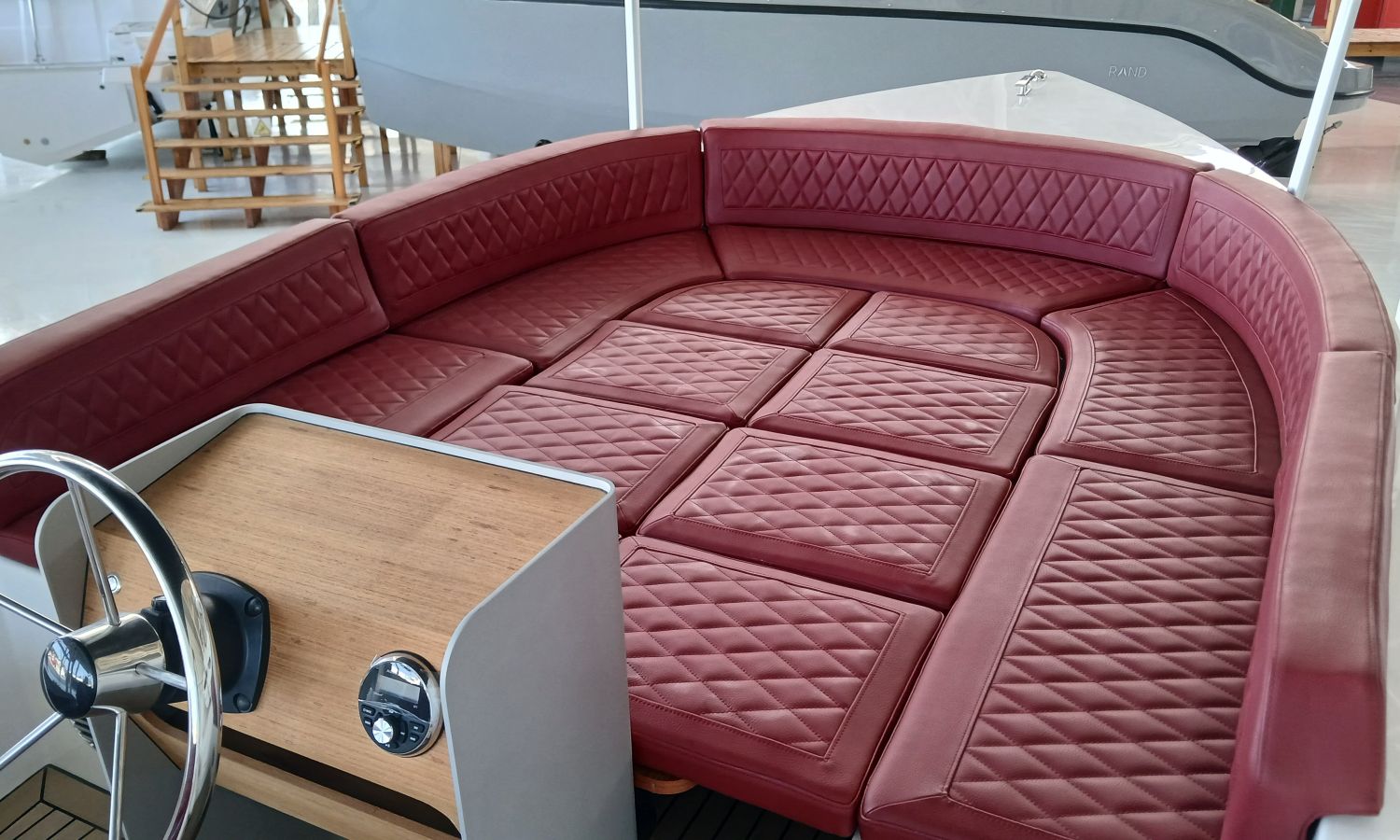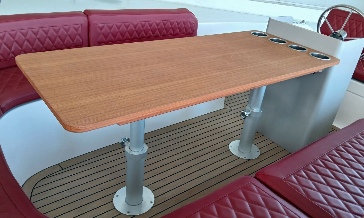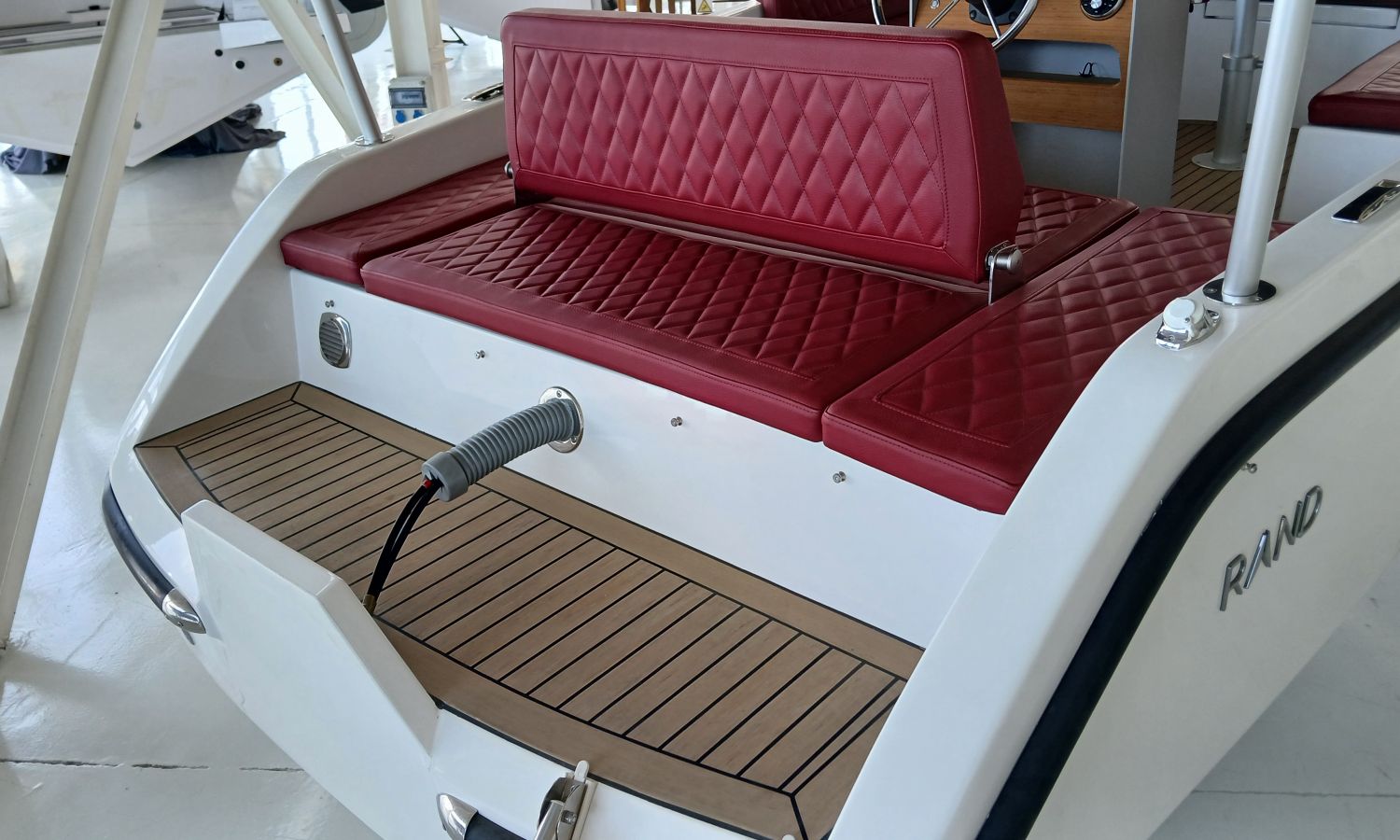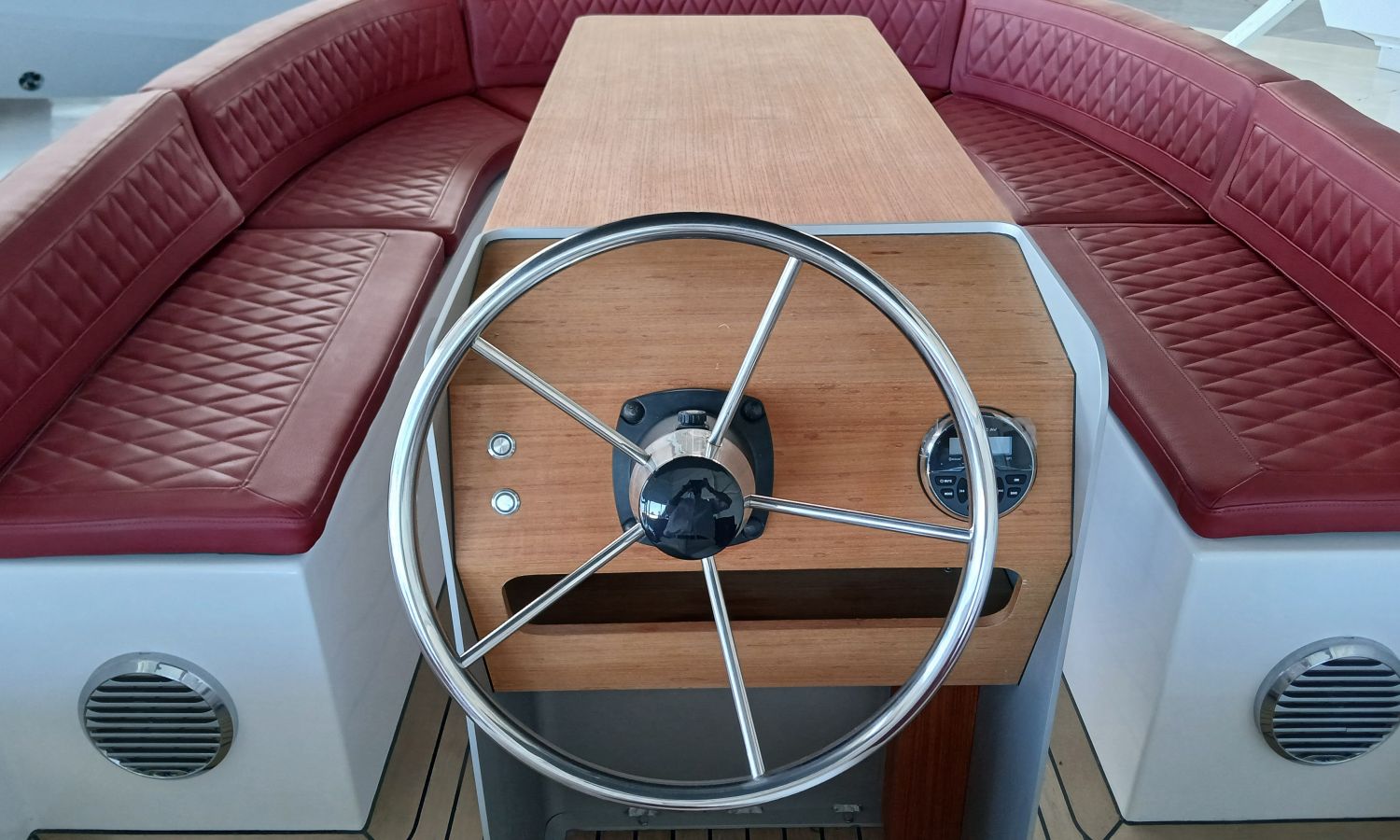 Hull custom colour White - Hima type canopy - Full anchorage cover - Swim ladder - Navigation lights - Rear co-pilot seat - Pilot seat back - Coasters - Bow solarium cushions - Fenders - Bathroom ladder - Coasters on bathtub table - Cockpit Led lights - Daimond Stitched Leadther Burgundy (BG 3161) - Transport Shipyard-Costa-Brava.Boat description