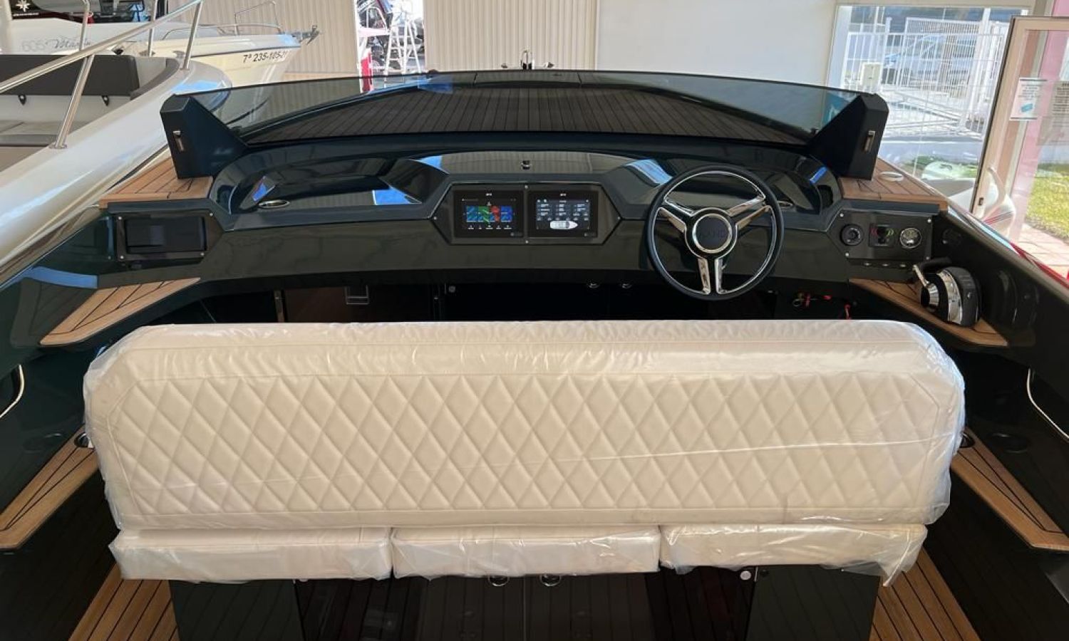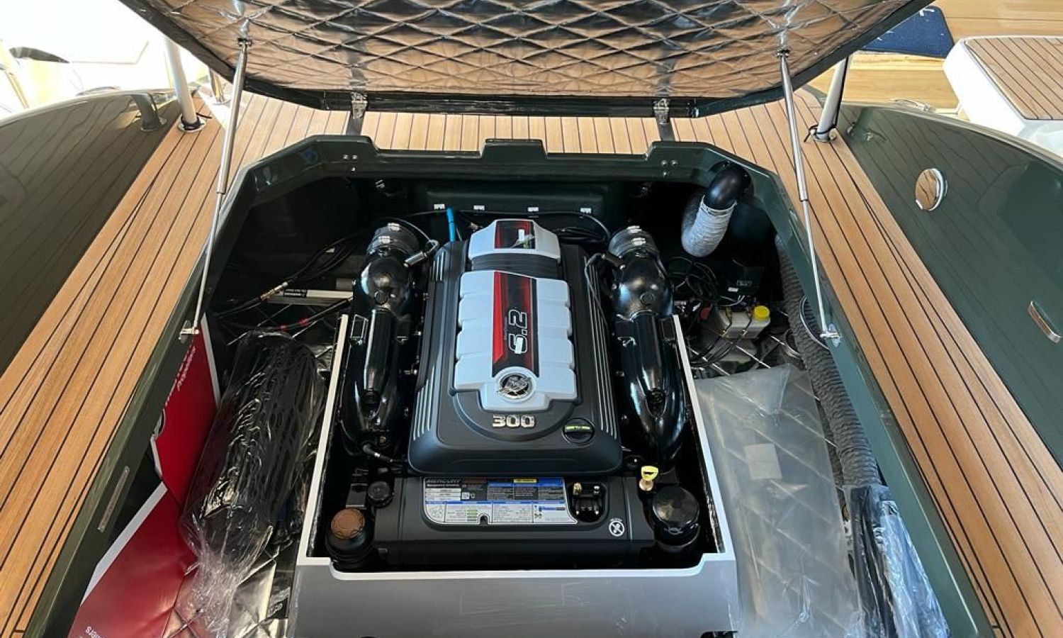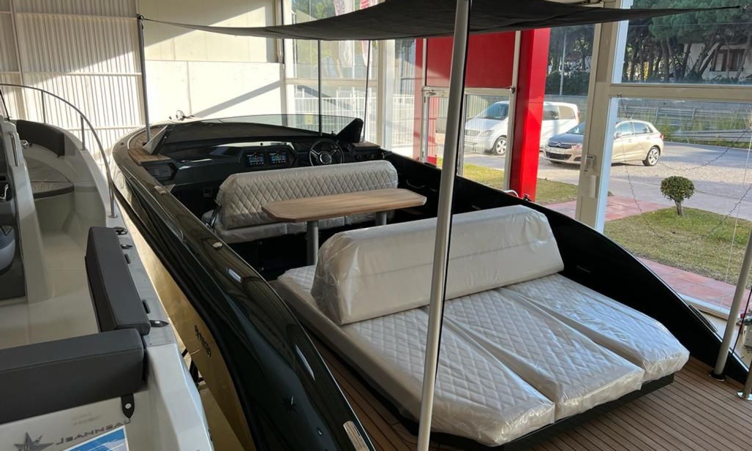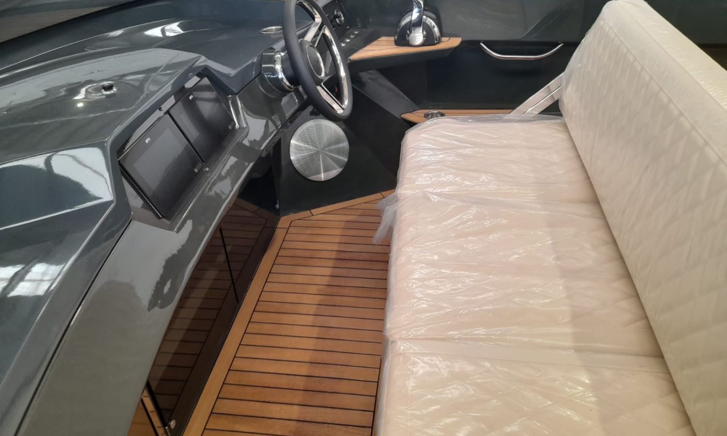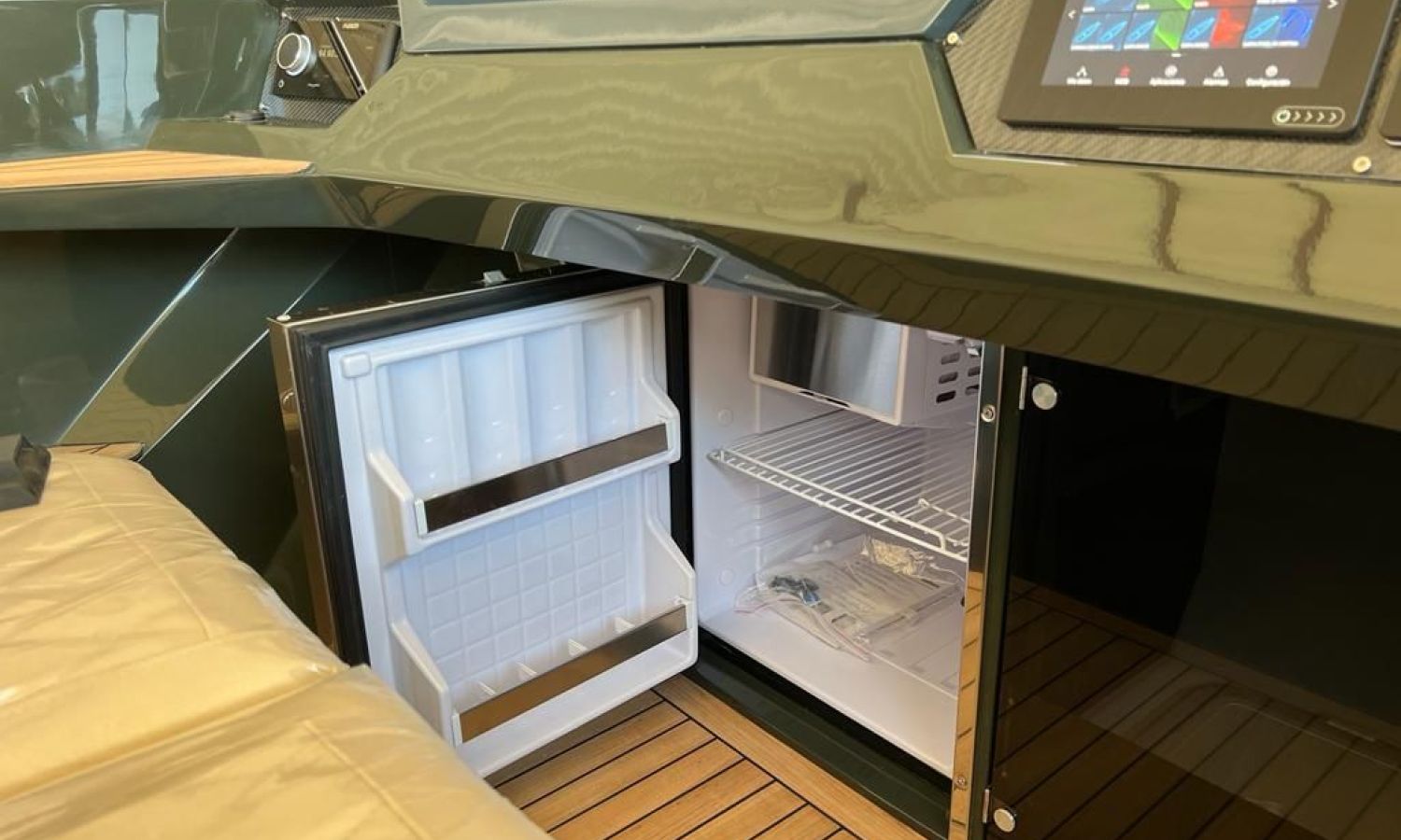 Bimini top - Stern shower - Stern platform with bathing ladder - Bow cushions - Cockpit table - Teak - GPS/Plotter/Deep finder - Electronic controls - Bow thruster - Ski hook - Audio equipment B&O - Electric anchor - Refrigerator 12 V - Automatic fire extinguisher - Led lights in cockpit - Antifouling.Boat description