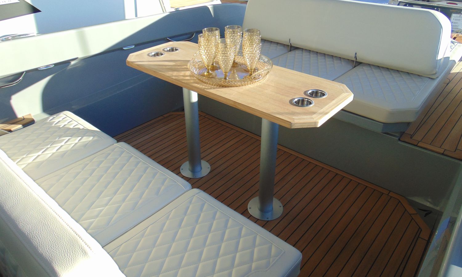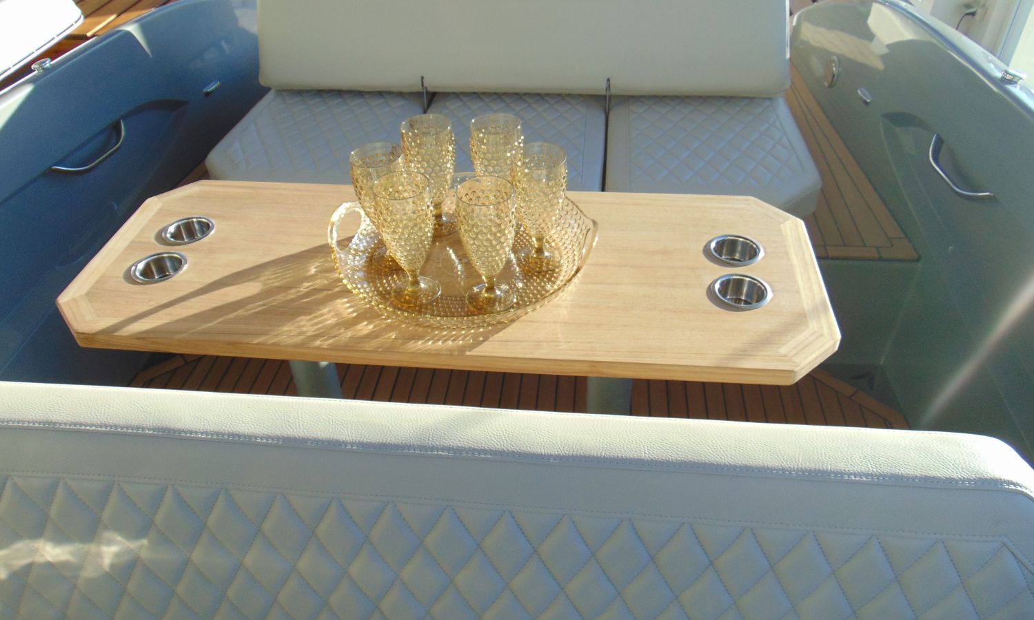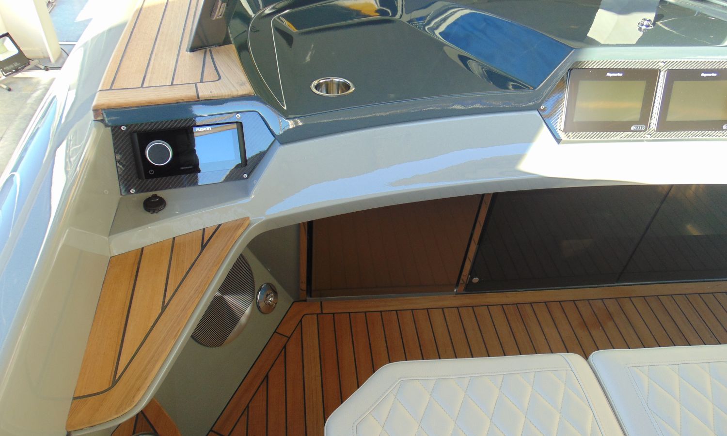 GREY SKI COLOUR HULL - DIAMOND LEATHER UPHOLSTERY - ELECTRIC ANCHOR WINDLASS + ANCHORAGE KIT - TWO 7" RAYMARINE SCREENS ON DASHBOARD WITH DOMOTIC SYSTEM - SKI HOOK - COASTER - COCKPIT SHOWER - LED LIGHTS IN COCKPIT - FENDERS - PREMIUM BATHING LADDER - LUXE FRIDGE - ANCHORAGE COVER - DEPTH SENSOR - BATTERY CHARGER - HAIMA AWNING - BOW THRUSTER - B&W AUDIO SYSTEM - AUTOMATIC FIRE EXTINGUISHER - TEAK IN BATH AND BATH PLATFORM - SHIPYARD-COSTA-BRAVA TRANSPORT.Boat description