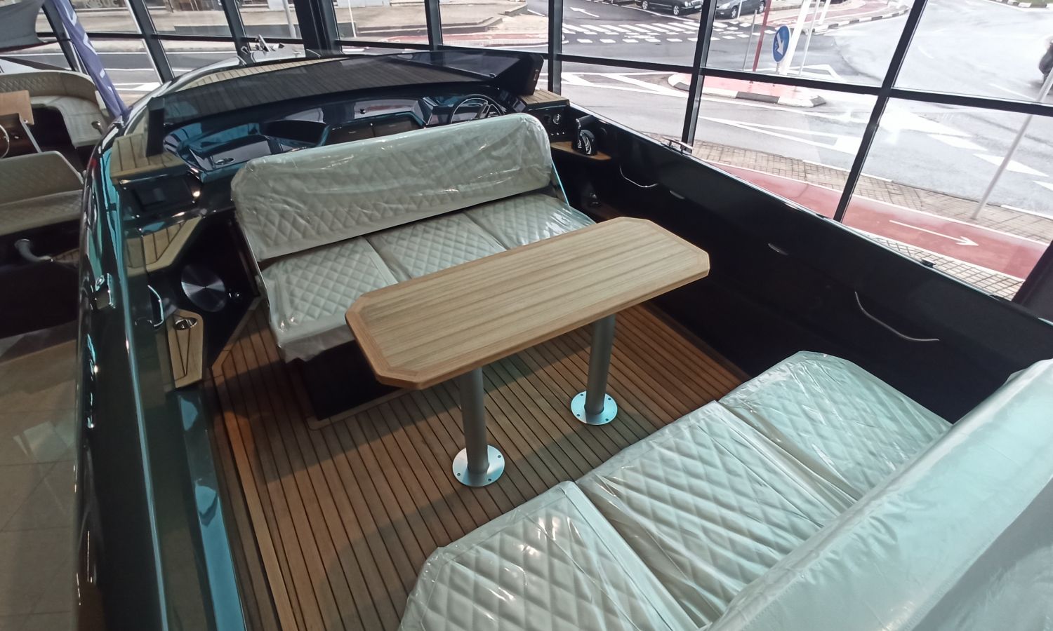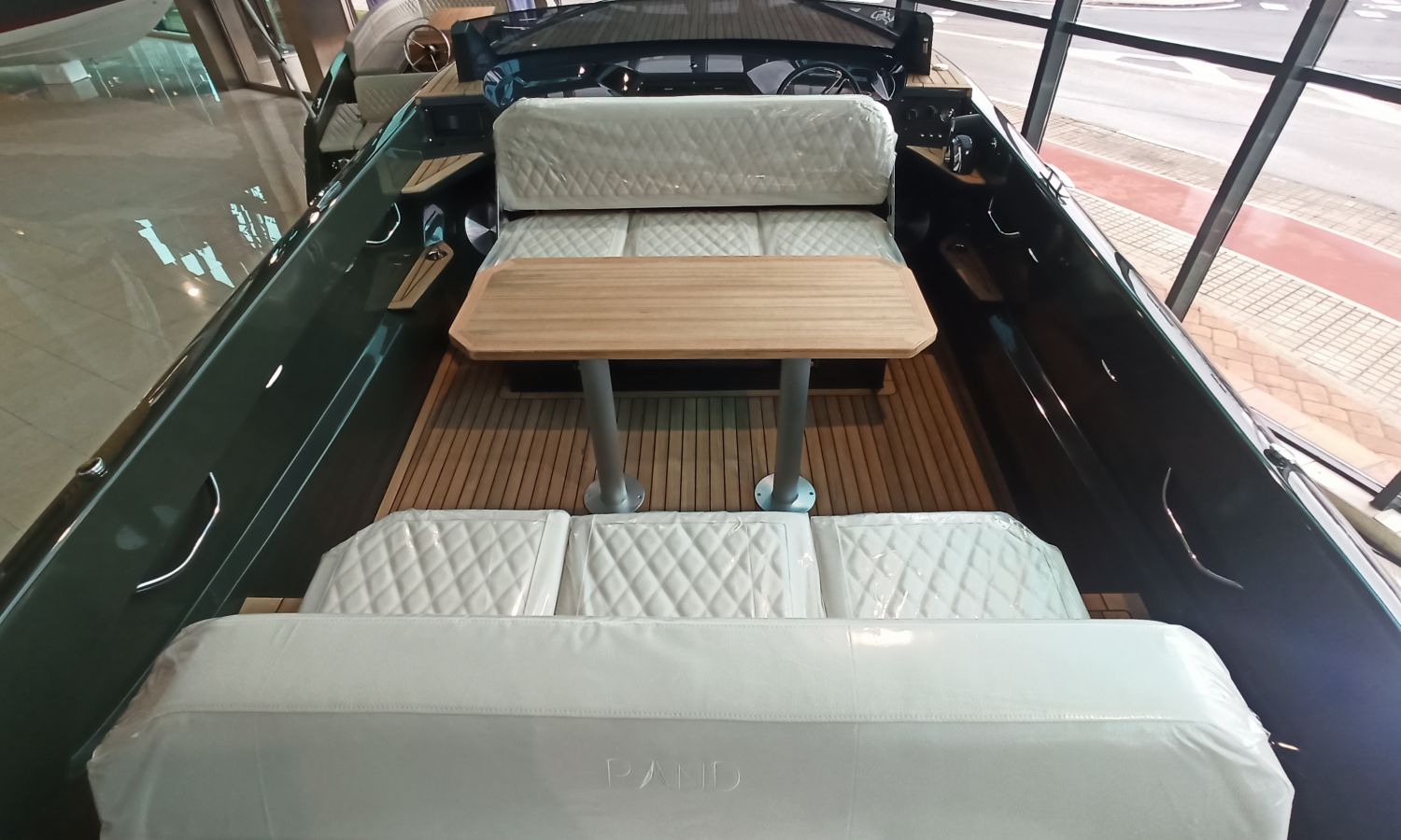 BLACK OLIVE (RAL 6015) COLOUR HULL - DIAMOND LEATHER UPHOLSTERY CREAM (BG 3151) - ELECTRIC ANCHOR WINDLASS + ANCHORAGE KIT - TWO 7" RAYMARINE SCREENS ON DASHBOARD WITH DOMOTIC SYSTEM - SKI HOOK - COASTER - COCKPIT SHOWER - LED LIGHTS IN COCKPIT - FENDERS - PREMIUM BATHING LADDER - LUXE FRIDGE - HAIMA AWNING - BOW THRUSTER - B&W AUDIO SYSTEM - AUTOMATIC FIRE EXTINGUISHER - TEAK IN BATH AND BATH PLATFORM -SHIPYARD-COSTA-BRAVA TRANSPORTBoat description