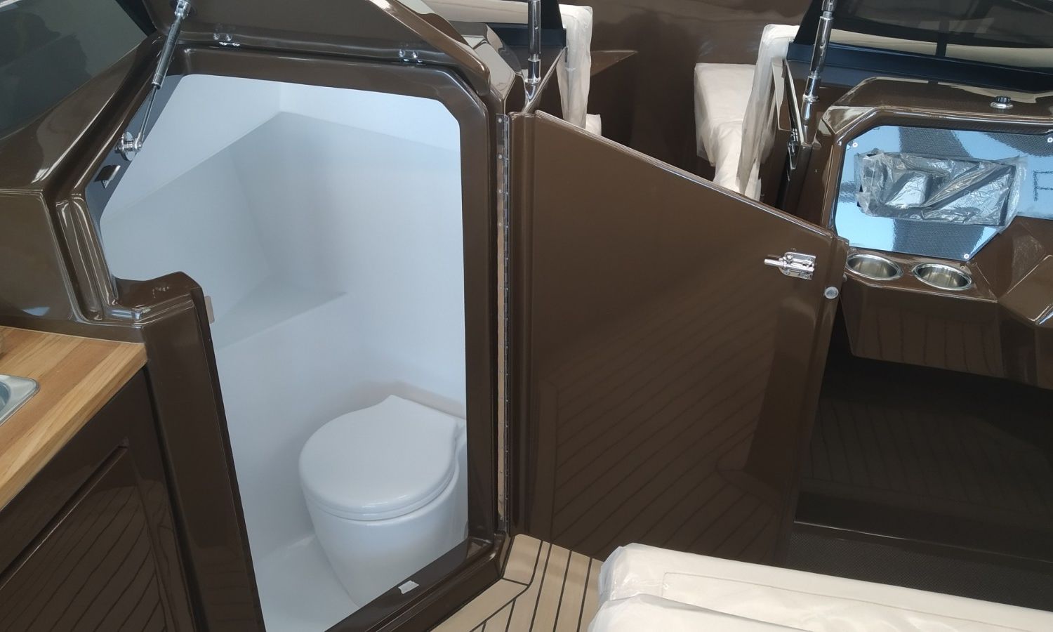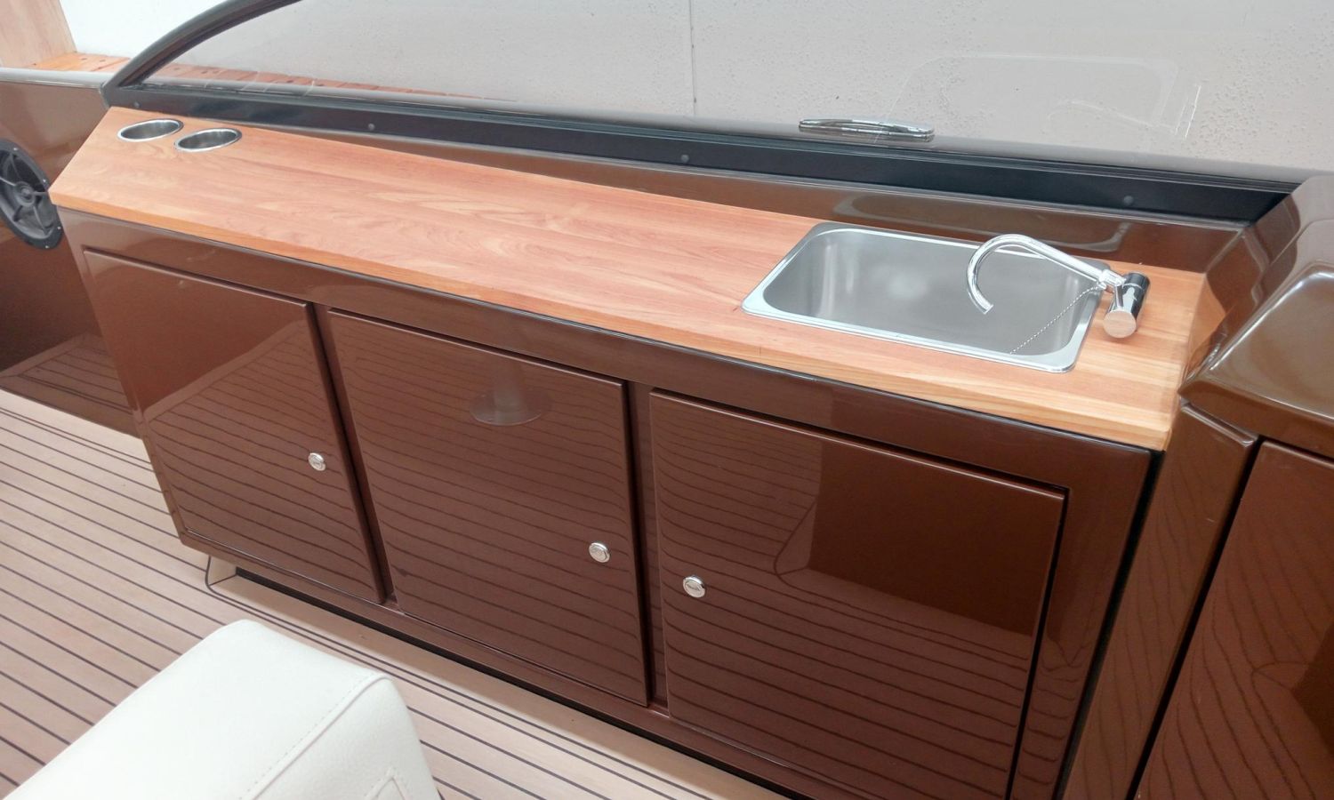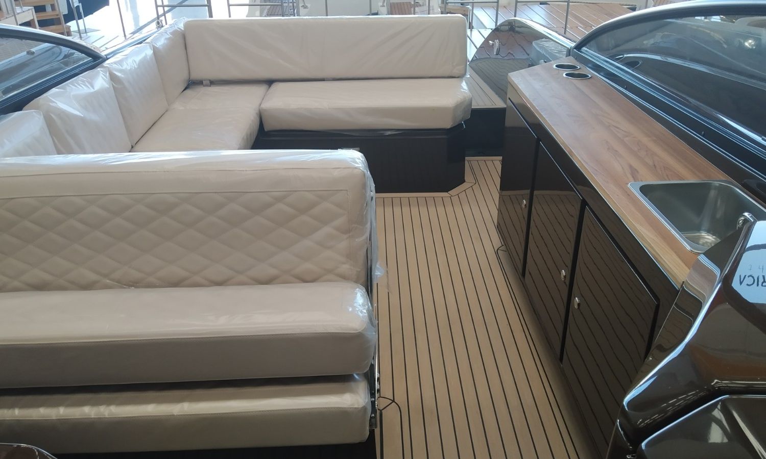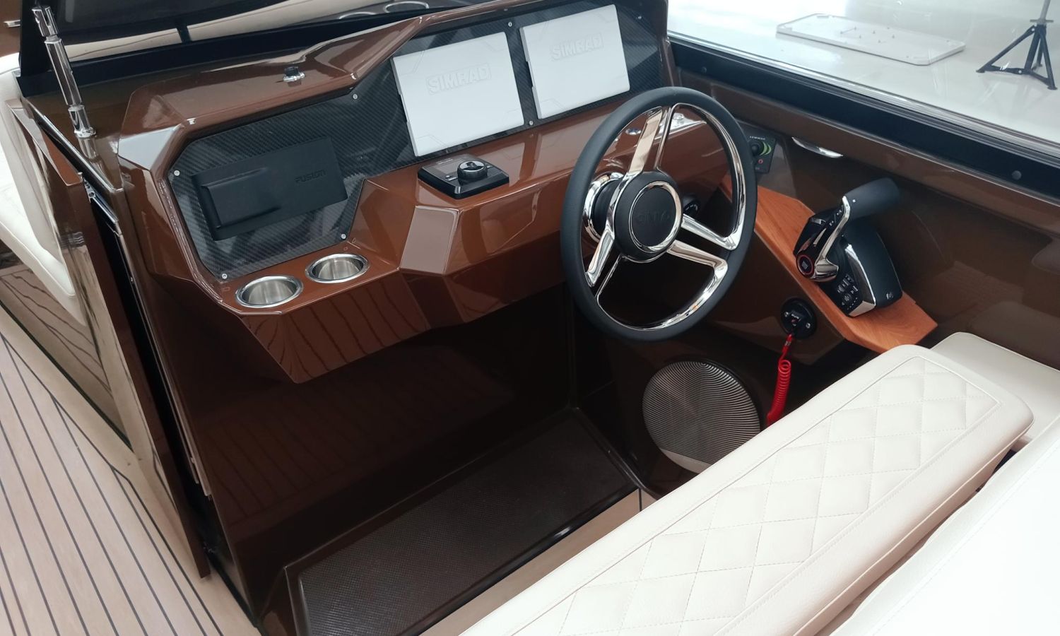 HULL COLOUR SEPIA BROWN (RAL 8014) - UPHOLSTERY IN DIAMANT CREAM (BG 3151) - FLAGPOLE WITH COVER - GALLEY UNIT ON PORT SIDE WITH SINK AND TAP - PRESSURISED WATER SYSTEM WITH COCKPIT SHOWER AND ELECTRIC MARINE TOILET WITH HOLDING TANK - BOW THRUSTER - B&O PREMIUM SYSTEM AUDIO SYSTEM - PREMIUM LED LIGHTING PACKAGE - ELECTRIC WINDLASS WITH ANCHOR AND CHAIN - SKI HOOK - LUXE COOLER - 2ND LUXE COOLER - PREMIUM BATHING LADDER - ZIPWAKE AUTOMATIC TRIM TABS - DEPTH SENSOR - MOORING COVER - OVERHEAD BATTERY SYSTEM - 2 220V PORT SOCKETS - INVERTER - BATTERY CHARGER - SHIPYARD-COSTA-BRAVA TRANSPORT.
