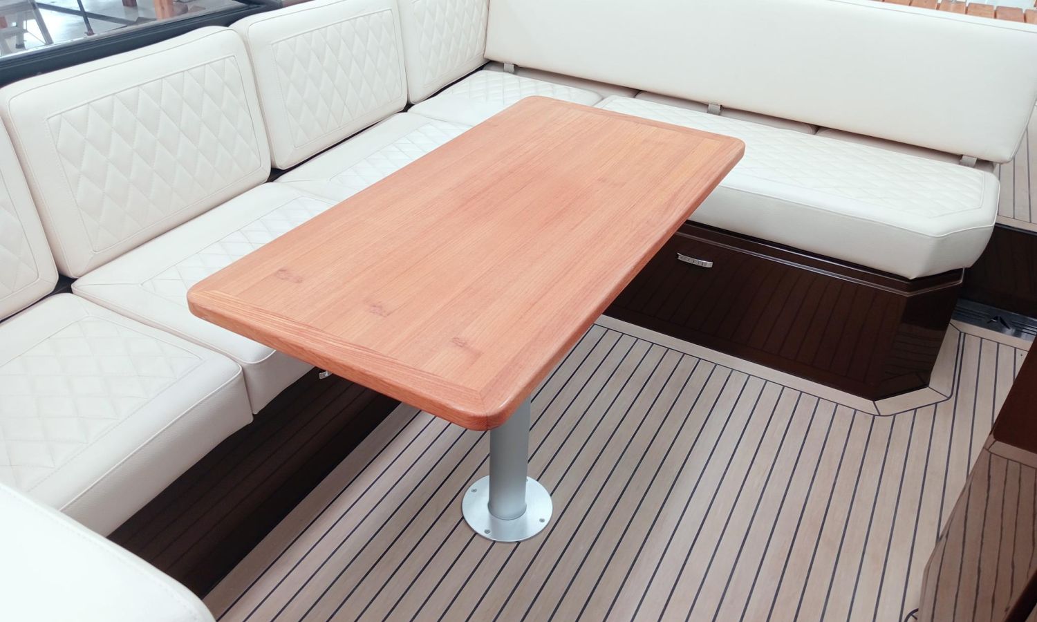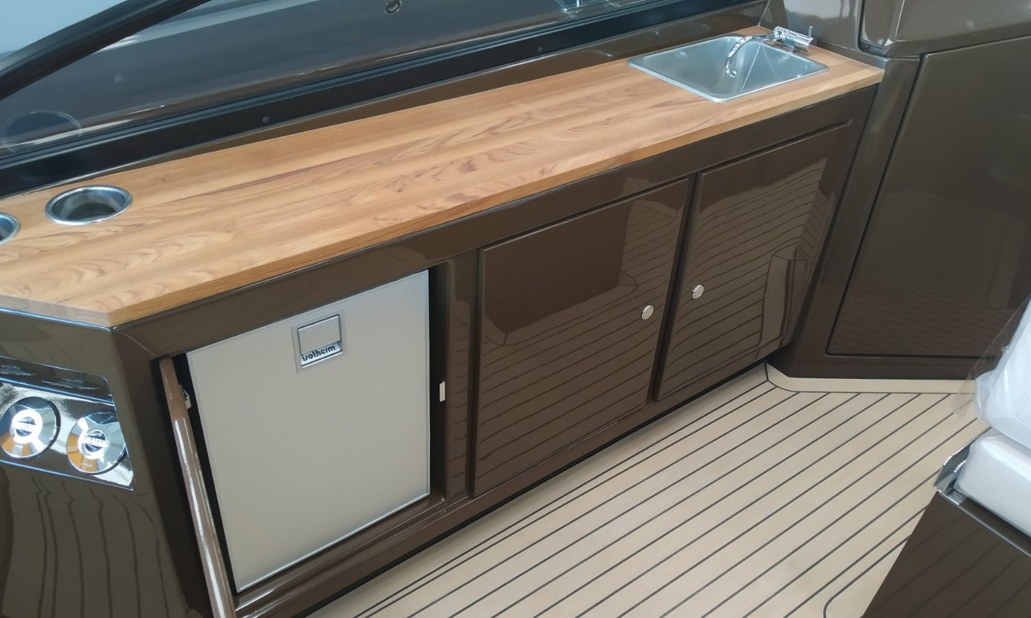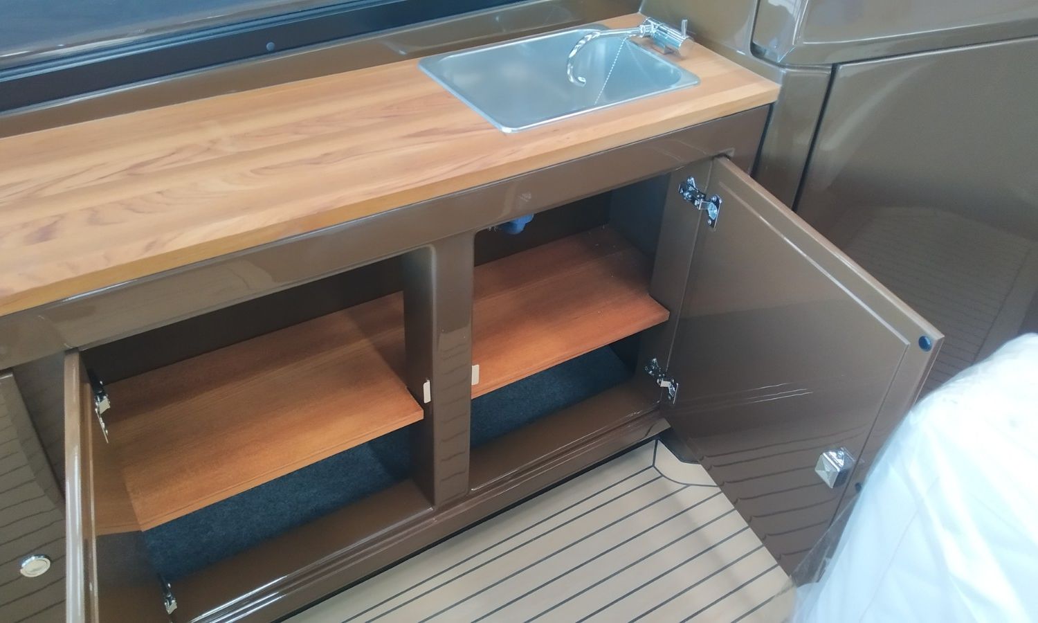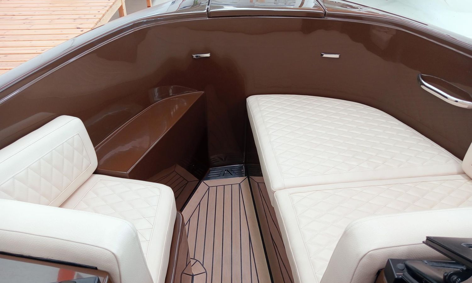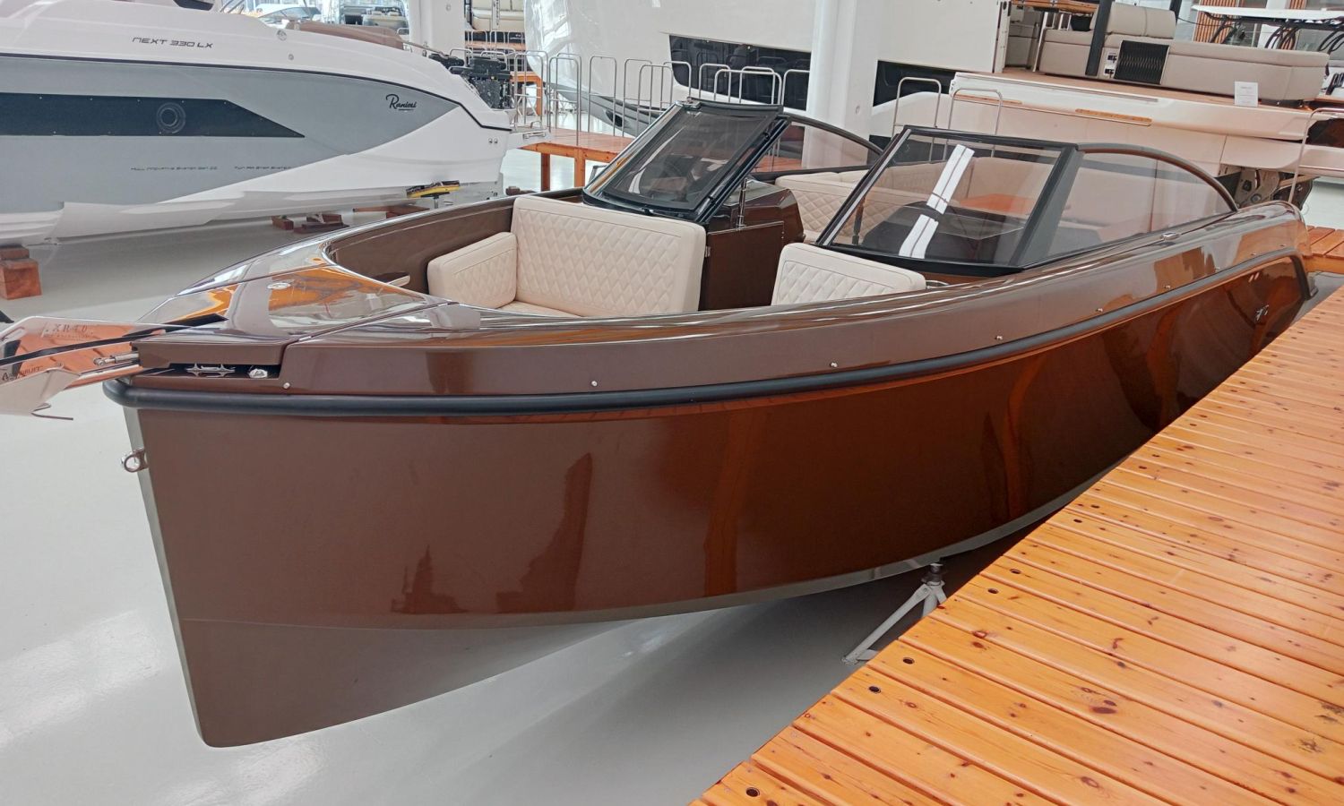 HULL COLOUR SEPIA BROWN (RAL 8014) - UPHOLSTERY IN DIAMANT CREAM (BG 3151) - FLAGPOLE WITH COVER - GALLEY UNIT ON PORT SIDE WITH SINK AND TAP - PRESSURISED WATER SYSTEM WITH COCKPIT SHOWER AND ELECTRIC MARINE TOILET WITH HOLDING TANK - BOW THRUSTER - B&O PREMIUM SYSTEM AUDIO SYSTEM - PREMIUM LED LIGHTING PACKAGE - ELECTRIC WINDLASS WITH ANCHOR AND CHAIN - SKI HOOK - LUXE COOLER - 2ND LUXE COOLER - PREMIUM BATHING LADDER - ZIPWAKE AUTOMATIC TRIM TABS - DEPTH SENSOR - MOORING COVER - OVERHEAD BATTERY SYSTEM - 2 220V PORT SOCKETS - INVERTER - BATTERY CHARGER - SHIPYARD-COSTA-BRAVA TRANSPORT.