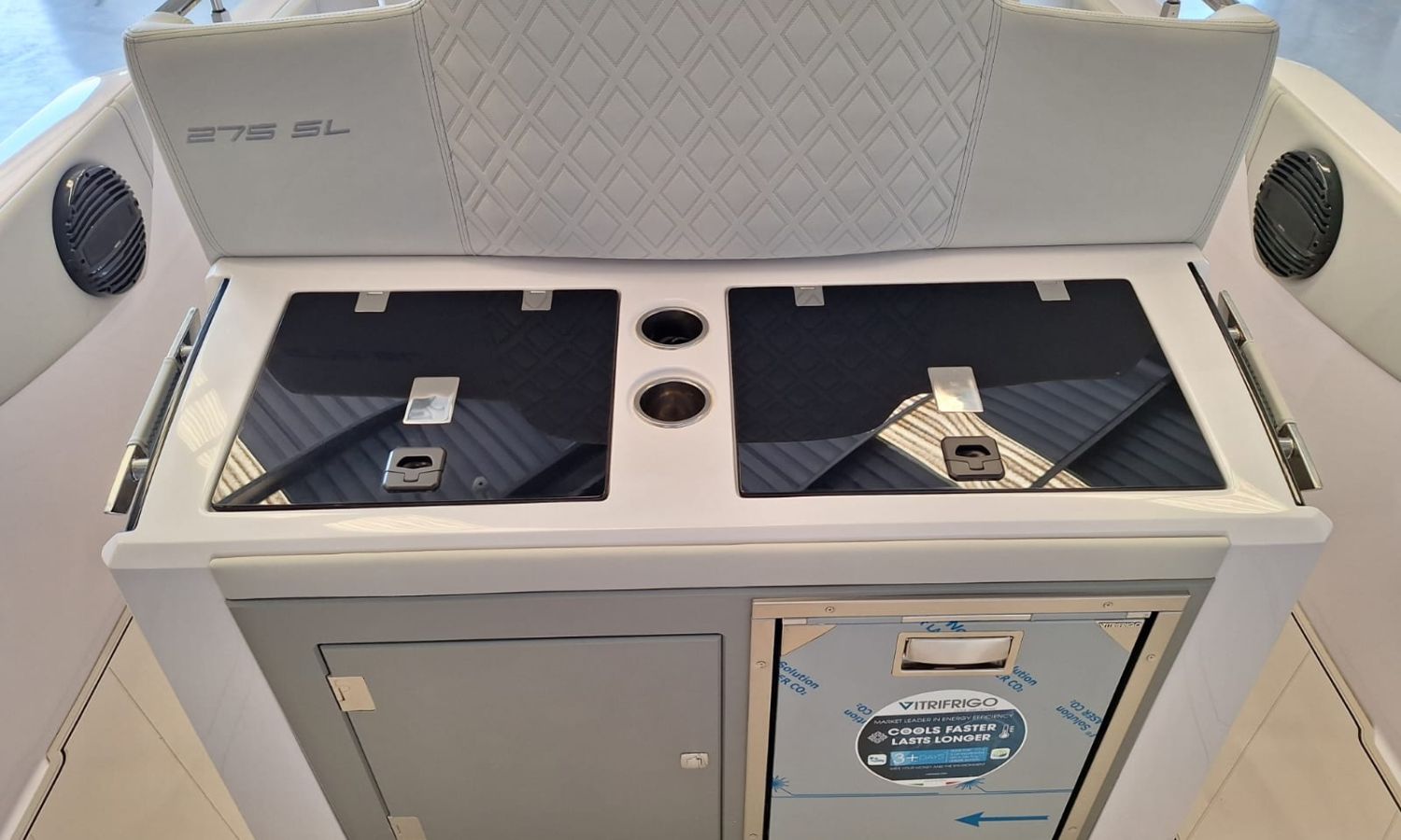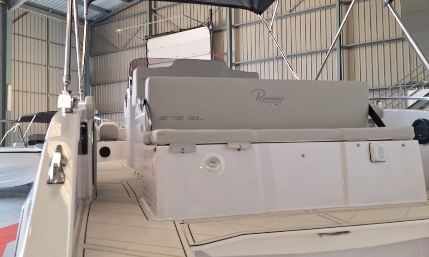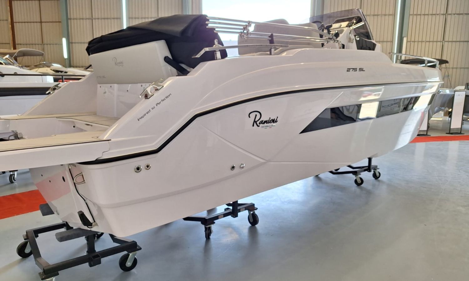 Boat in stock. Immediate delivery. Catalogue fotos, the colours and options may not correspond to the offered unit. Model 275 SL from the Italian shipyard Ranieri International, 8,20 m long.PDM-Nº S5042