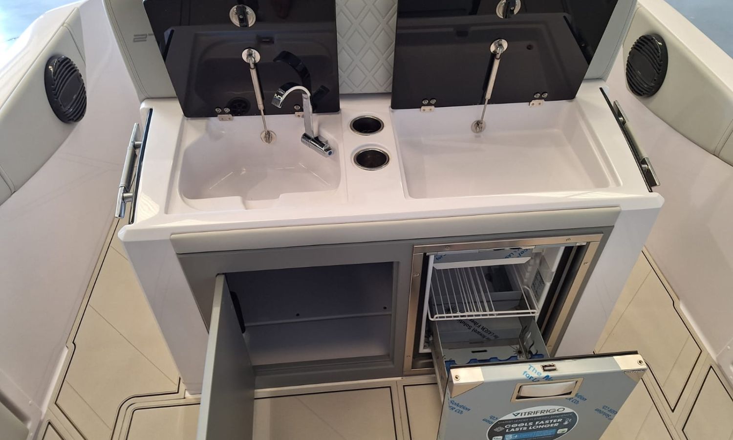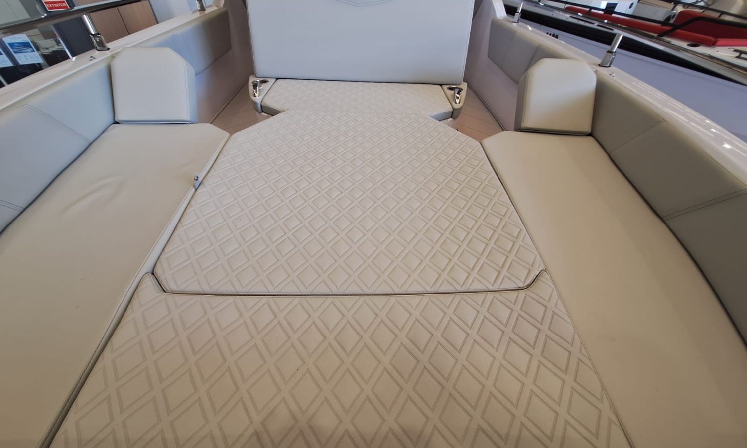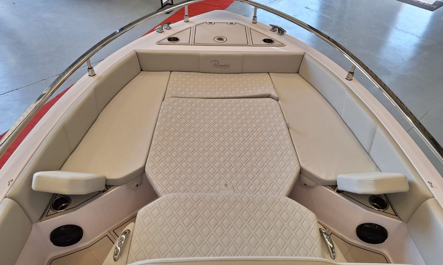 Water heater 20 l - Bow thruster - Hertz stereo system with 6 speakers - Shore power 220 V with battery charger - Foldable side benches - Luxury upholstery - Bimini top - Pack Electronic (GPS Simrad 12", VHF, nmea 2000 and nautical chart) - Pre-rigging Suzuki - Preparation, 1 engine assembly, launch and delivery with sea trial - Transport from shipyard to Costa Brava.Boat description