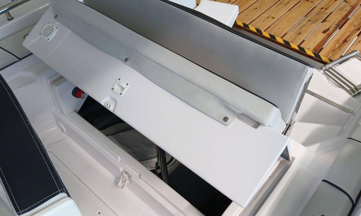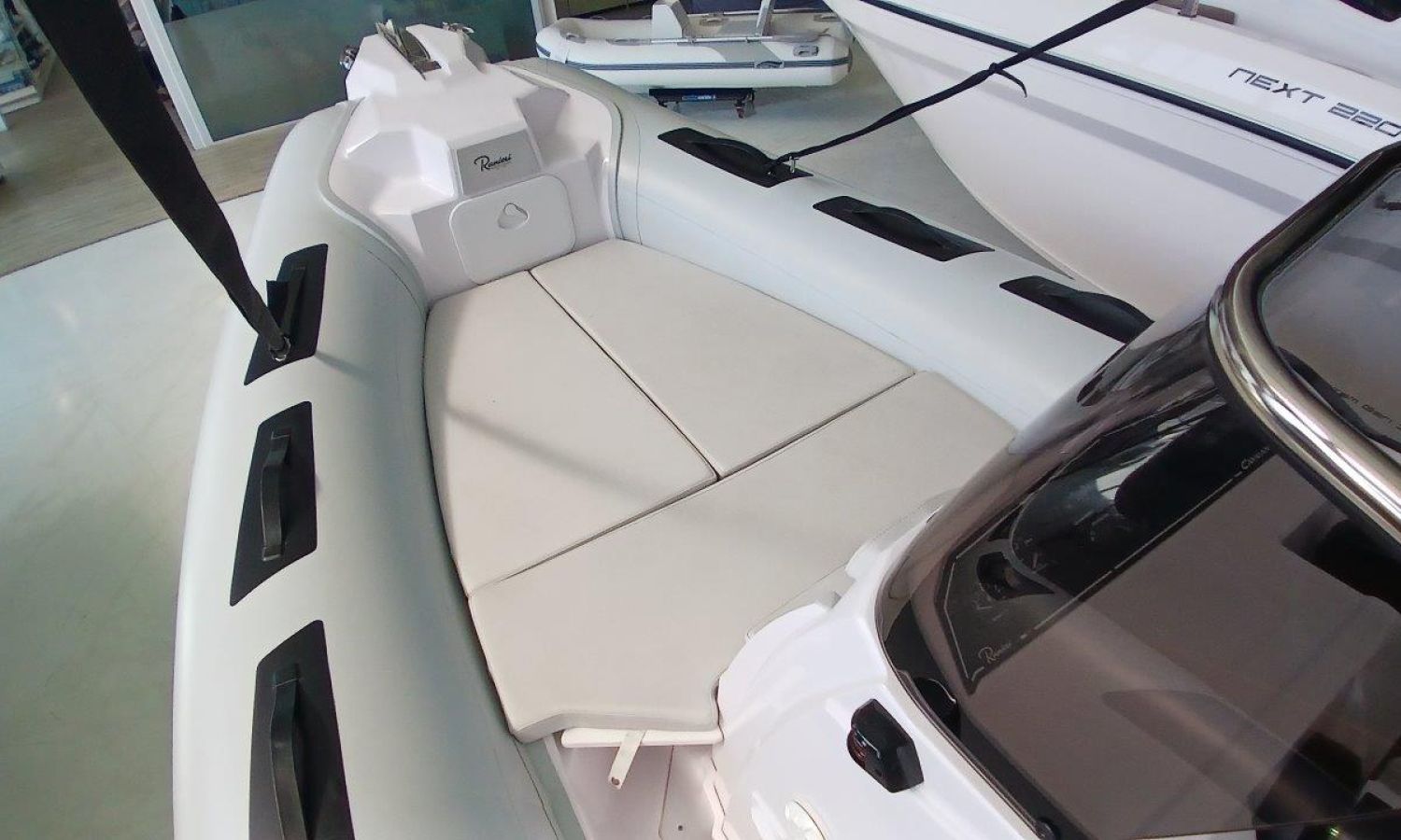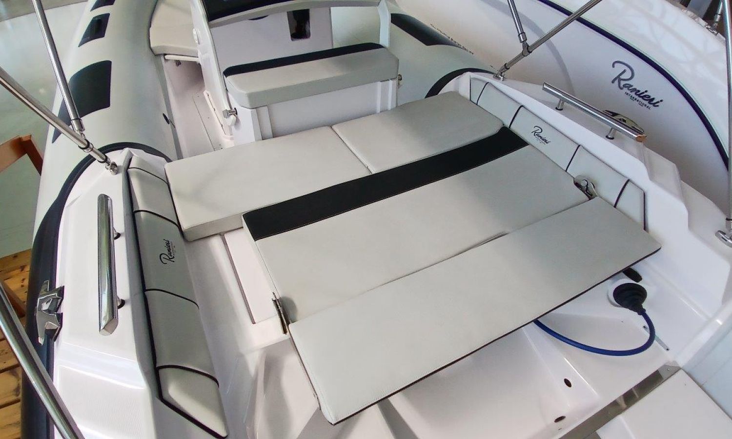 Complete shower installation - Bow table kit - Ski pole kit - Rear sunpad and cushions - Stern platforms in fiberglass and bathing ladder - Predisposition for electric anchor winch - Fuel tank - Bimini top - Pre-rigging Honda - Engine installation - Transport shipyard to Costa Brava.Boat description