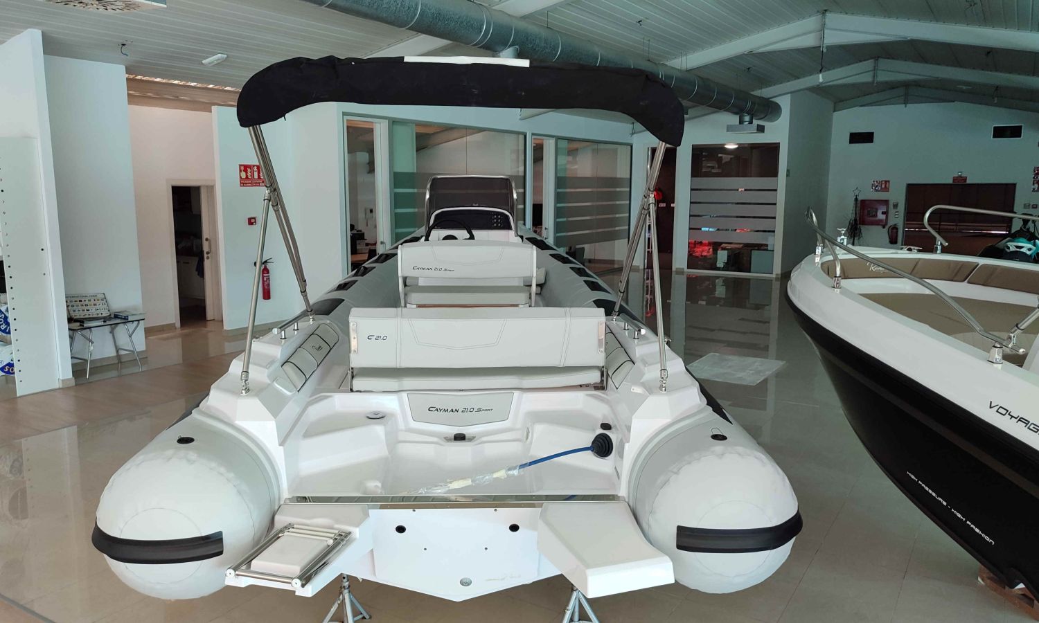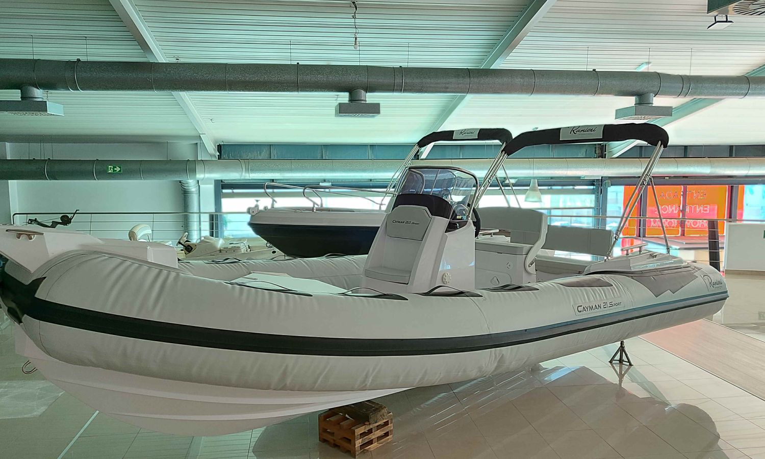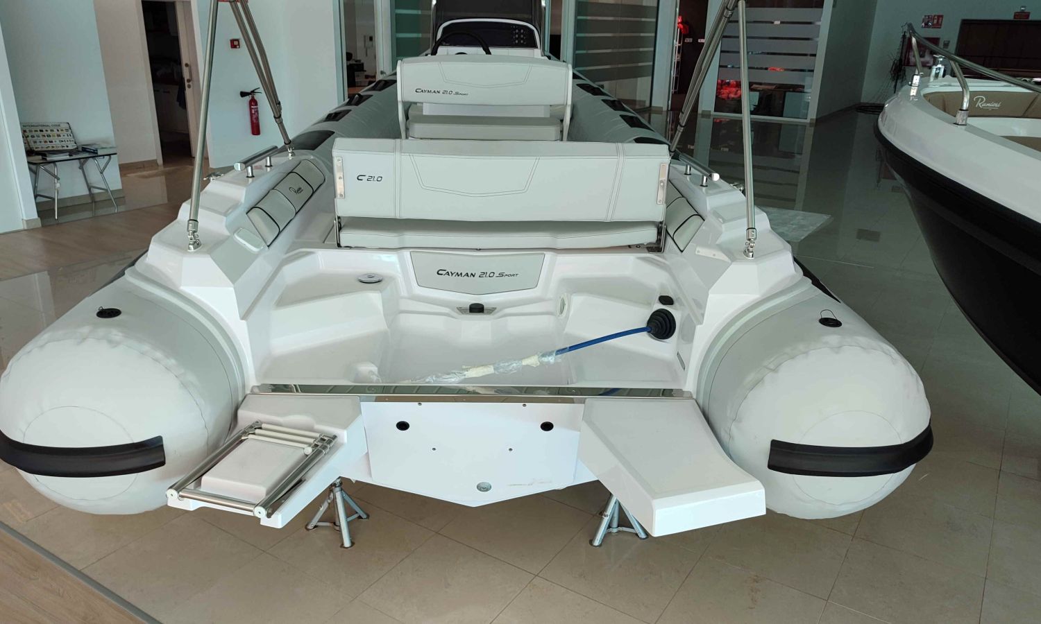 Boat in stock. Catalogue photos, colours and equipment may not correspond exactly to the offered unit. Model Cayman 21 Sport from the Italian shipyard Ranieri International, 6,45 m long.DEN-Nº Y2252