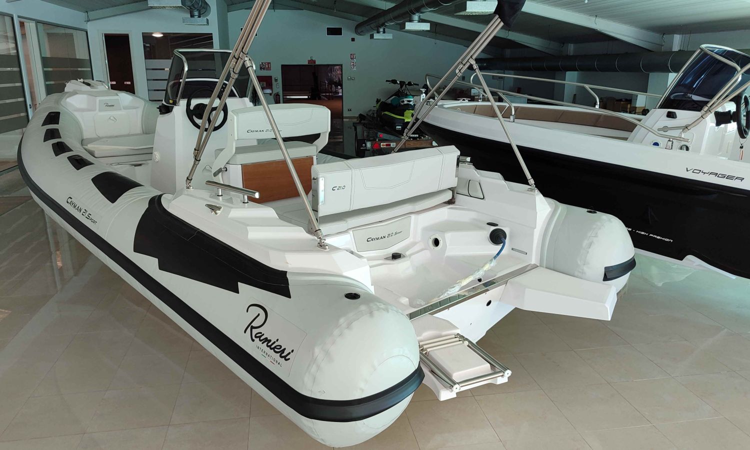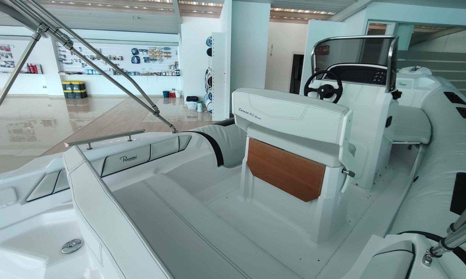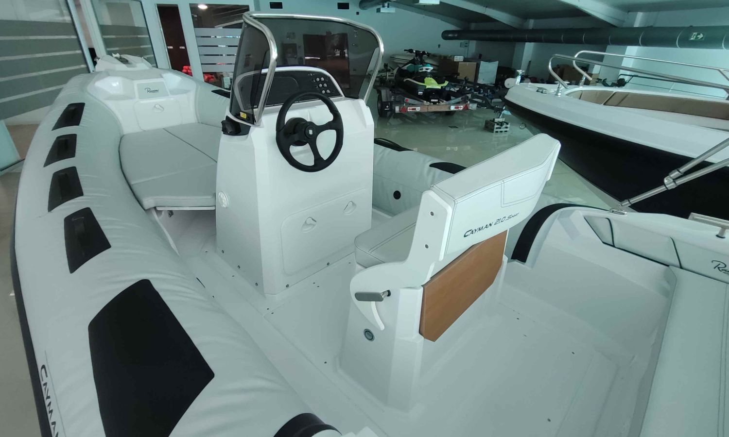 Boat in stock. Catalogue photos, colours and equipment may not correspond exactly to the offered unit. Model Cayman 21 Sport from the Italian shipyard Ranieri International, 6,45 m long.DEN-Nº Y2252