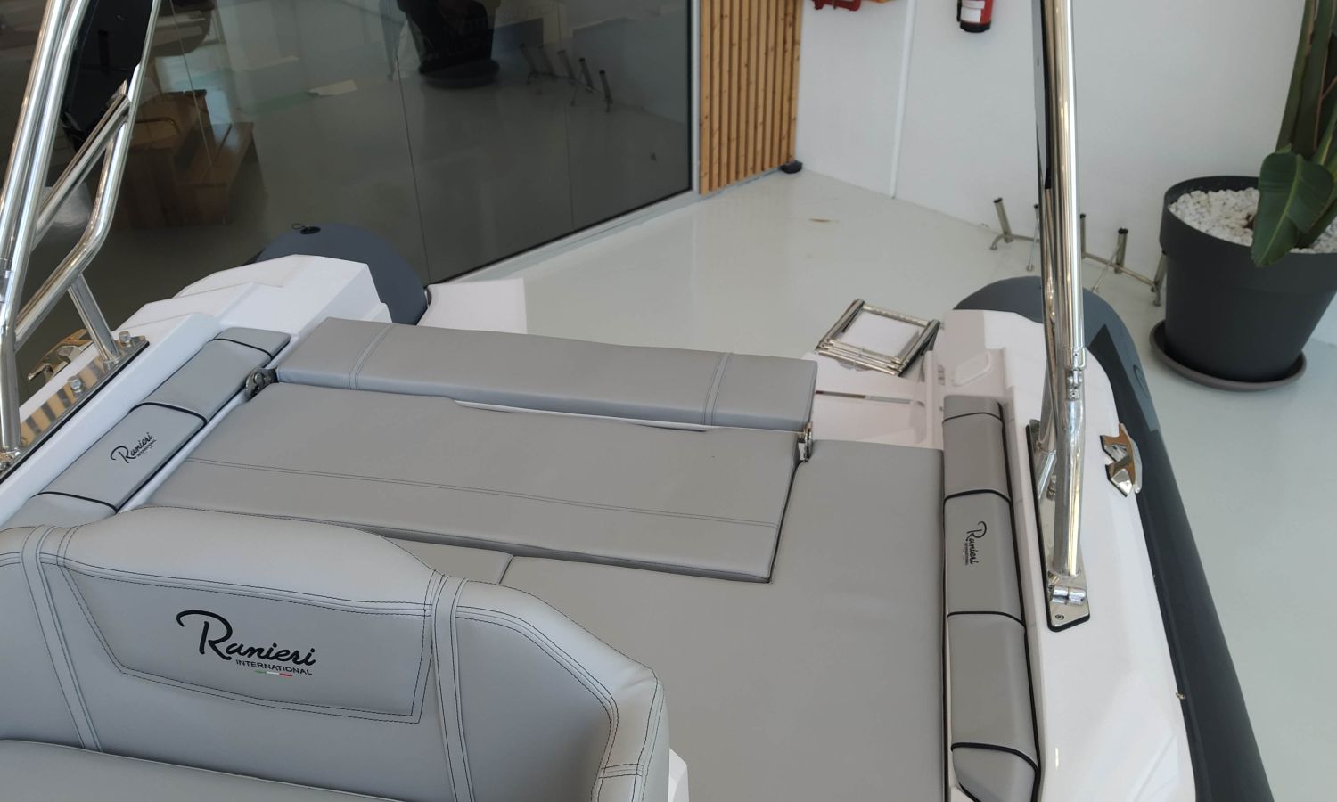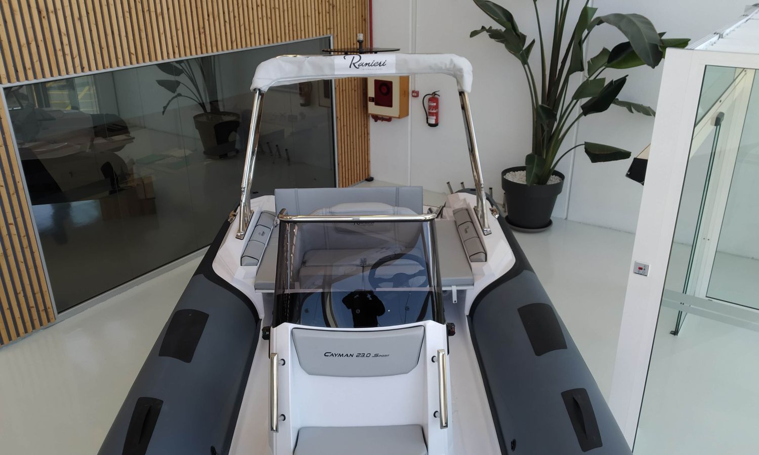 Boat in stock for immediate delivery. Catalogue photos, colours and equipment may not correspond exactly to the offered unit. Model Cayman 23.0 Sport from the Italian shipyard Ranieri International, 7,10 m long.EMP-Nº Y3098