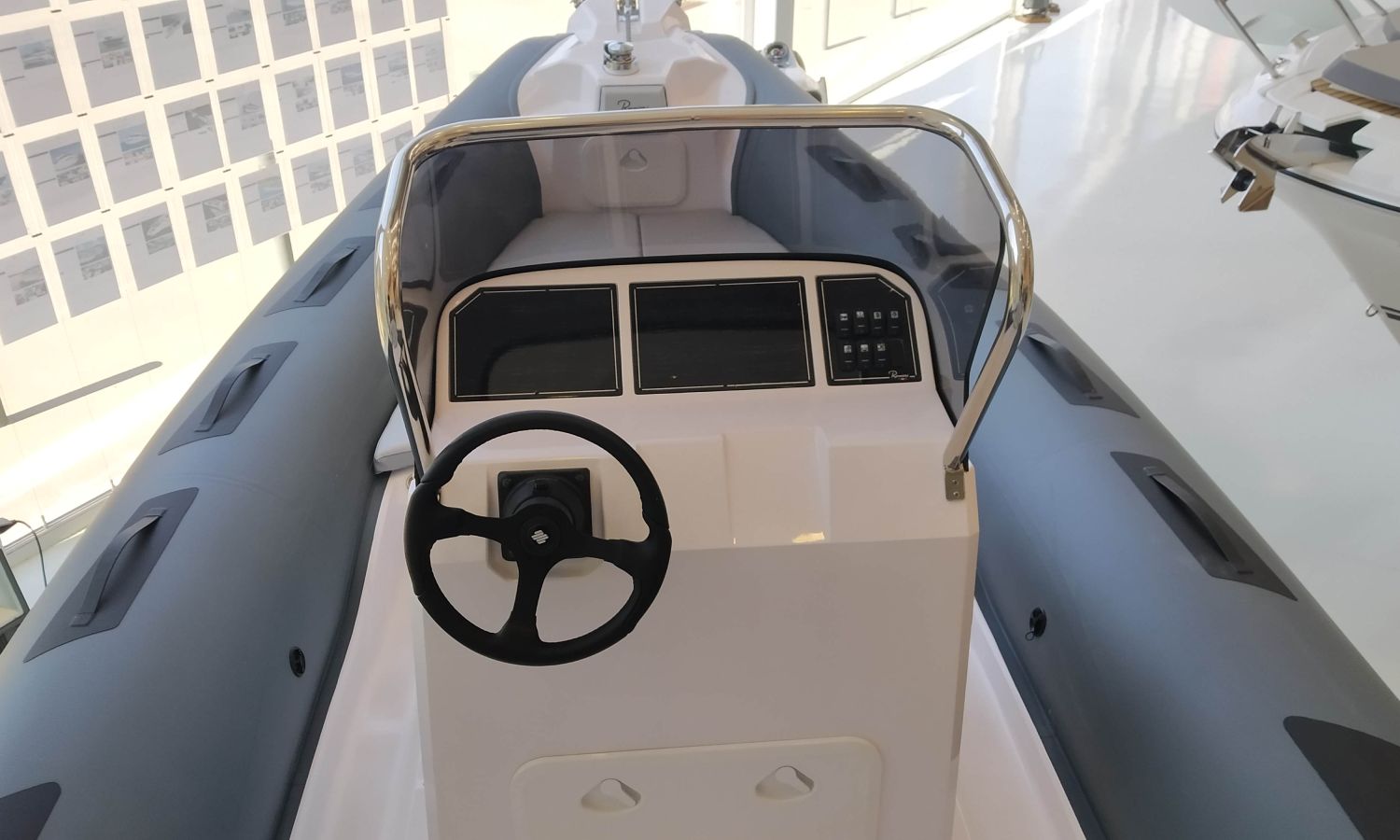 Complete shower installation - Ski pole kit - Stern sunpad and cushions kit - Tubulars colour personalization - Stainless steel roll-bar with bimini top - Electric anchor winch - Luxury upholstery - Stern folding table in King Starboard - Console and seat cover - Transport shipyard to Costa Brava.Boat description