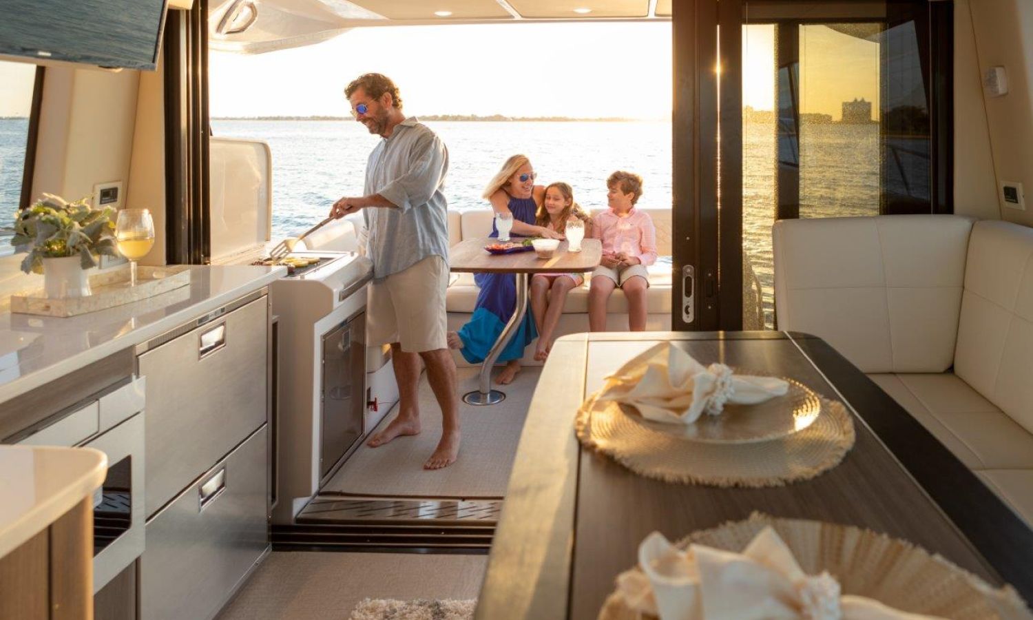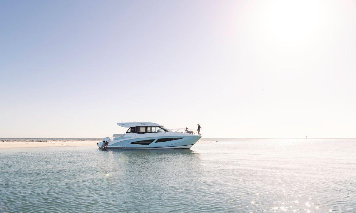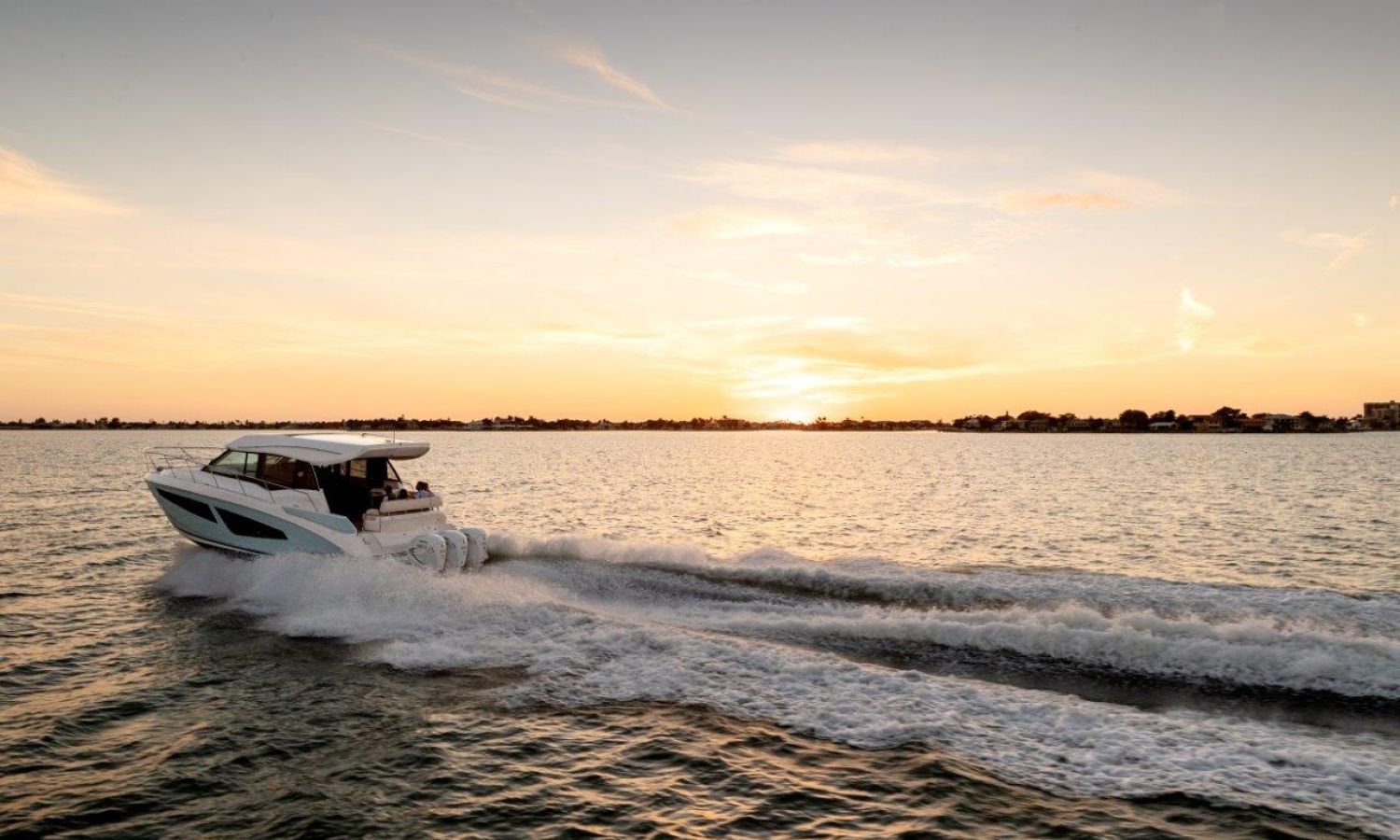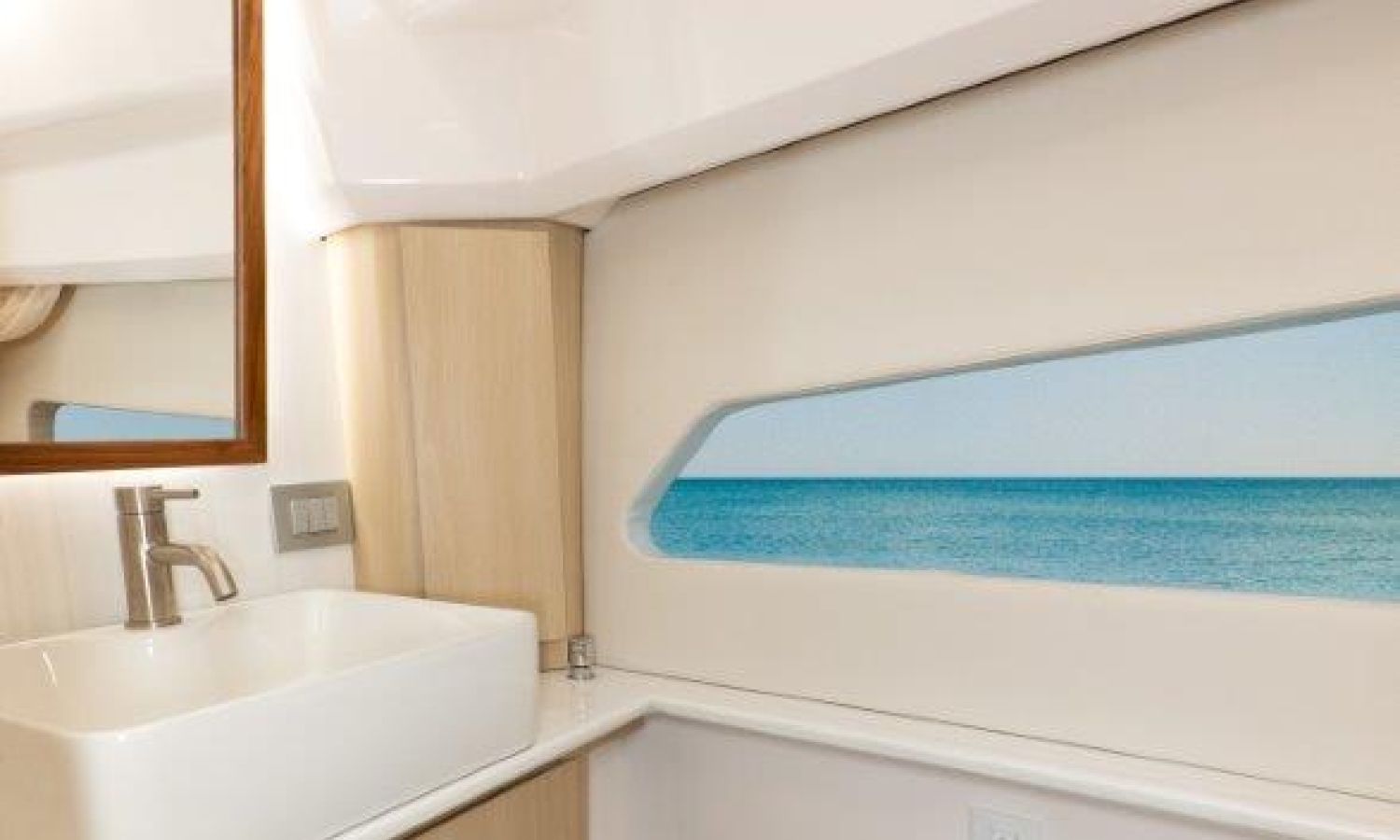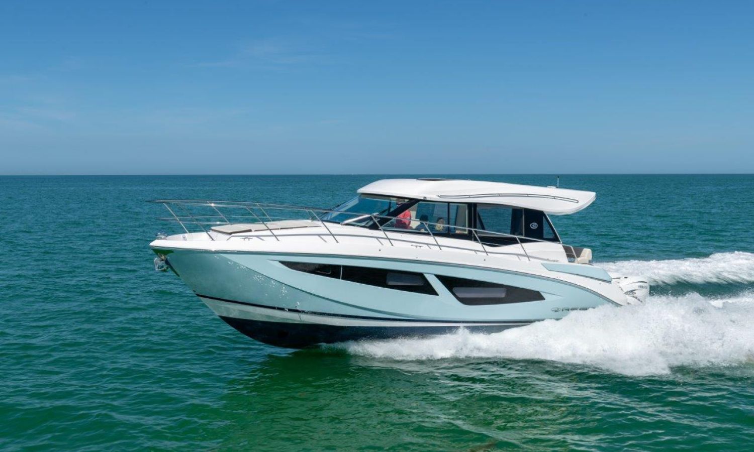 Open up new horizons with the 42 XO. Its beautifully crafted cabin features a spacious layout with options of a second head or lower refreshment center. The standard on-suite head boasts of premium materials and a separate walk-in shower. Upstairs, the full-beam retractable hardtop, opening side windows, and sliding glass doors combine the upper salon and aft patio to ultimately embrace outdoor living and entertaining.