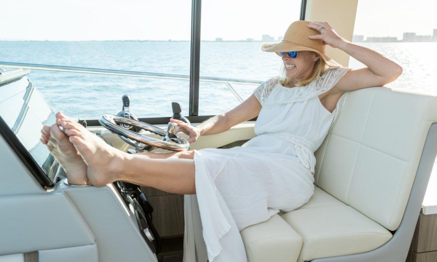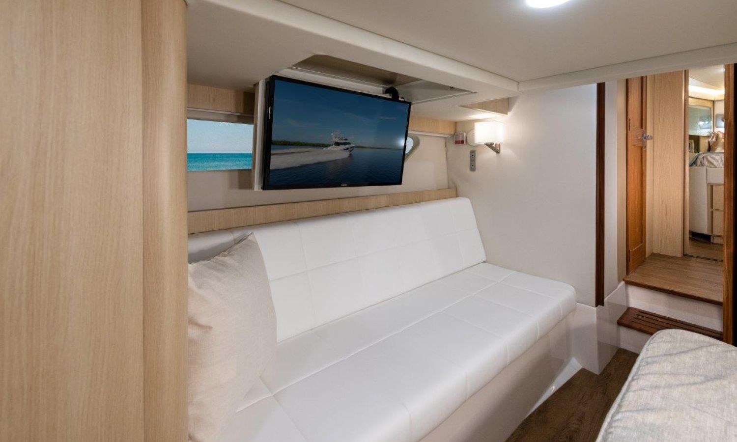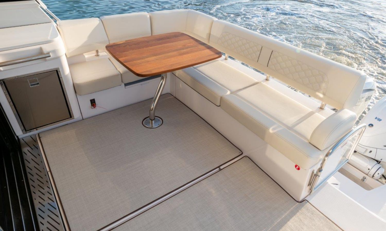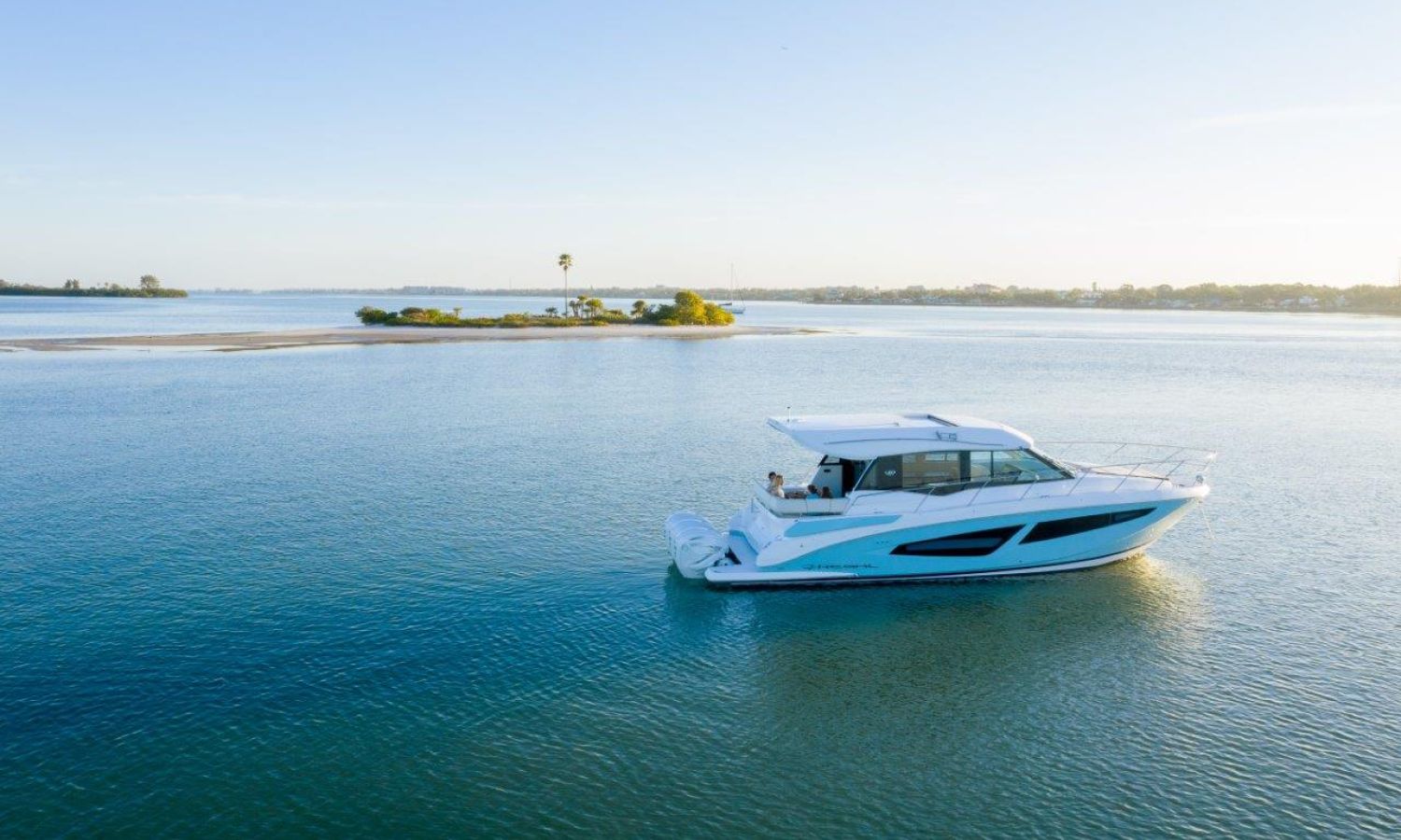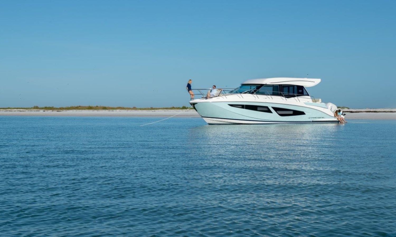 Open up new horizons with the 42 XO. Its beautifully crafted cabin features a spacious layout with options of a second head or lower refreshment center. The standard on-suite head boasts of premium materials and a separate walk-in shower. Upstairs, the full-beam retractable hardtop, opening side windows, and sliding glass doors combine the upper salon and aft patio to ultimately embrace outdoor living and entertaining.