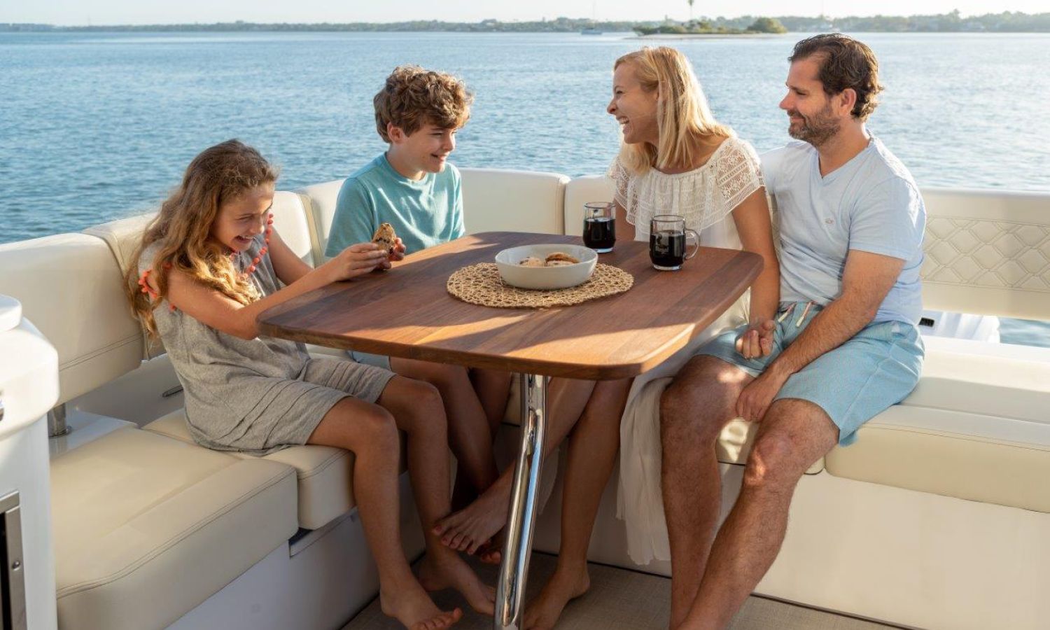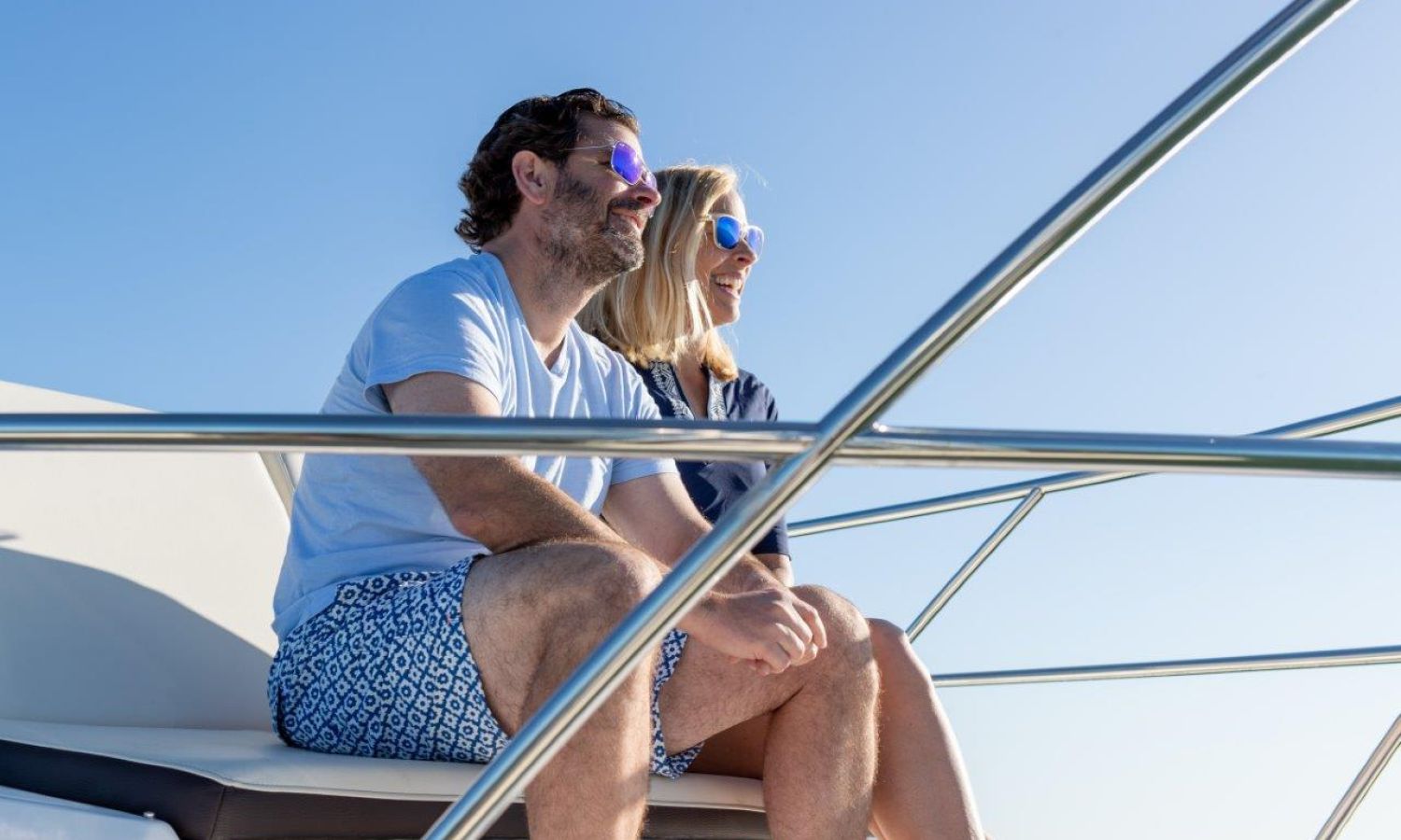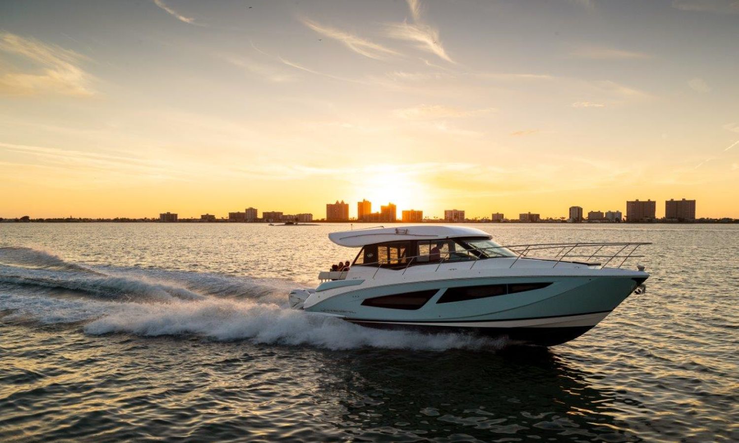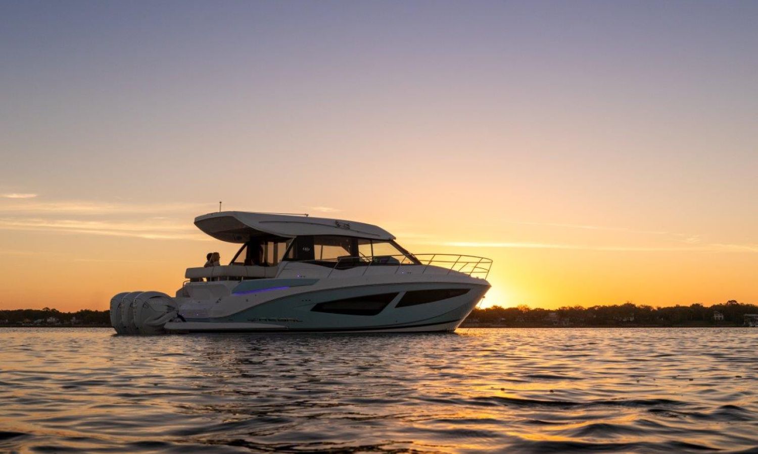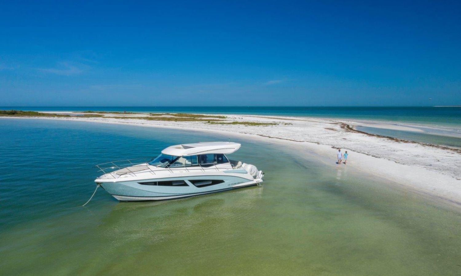 Open up new horizons with the 42 XO. Its beautifully crafted cabin features a spacious layout with options of a second head or lower refreshment center. The standard on-suite head boasts of premium materials and a separate walk-in shower. Upstairs, the full-beam retractable hardtop, opening side windows, and sliding glass doors combine the upper salon and aft patio to ultimately embrace outdoor living and entertaining.