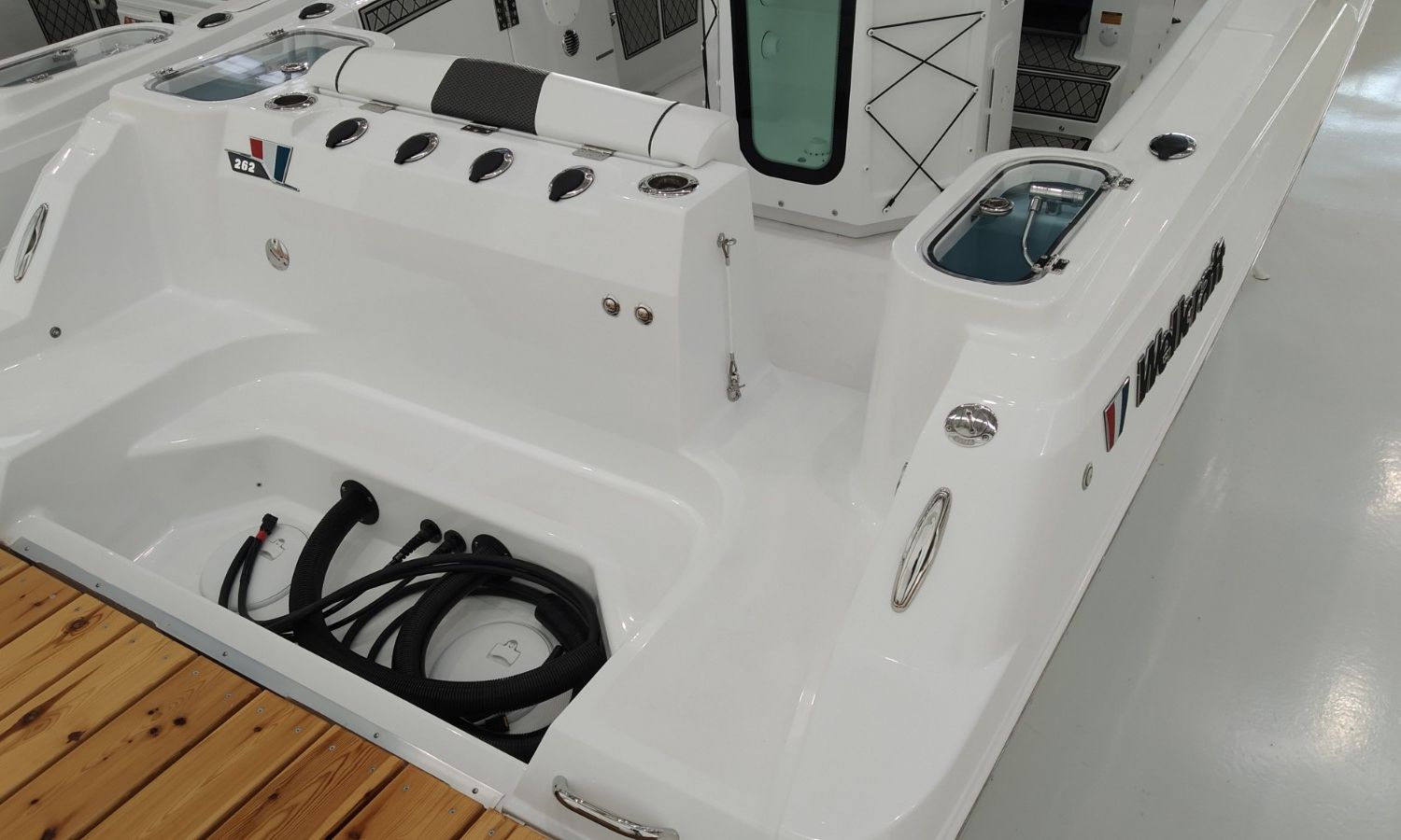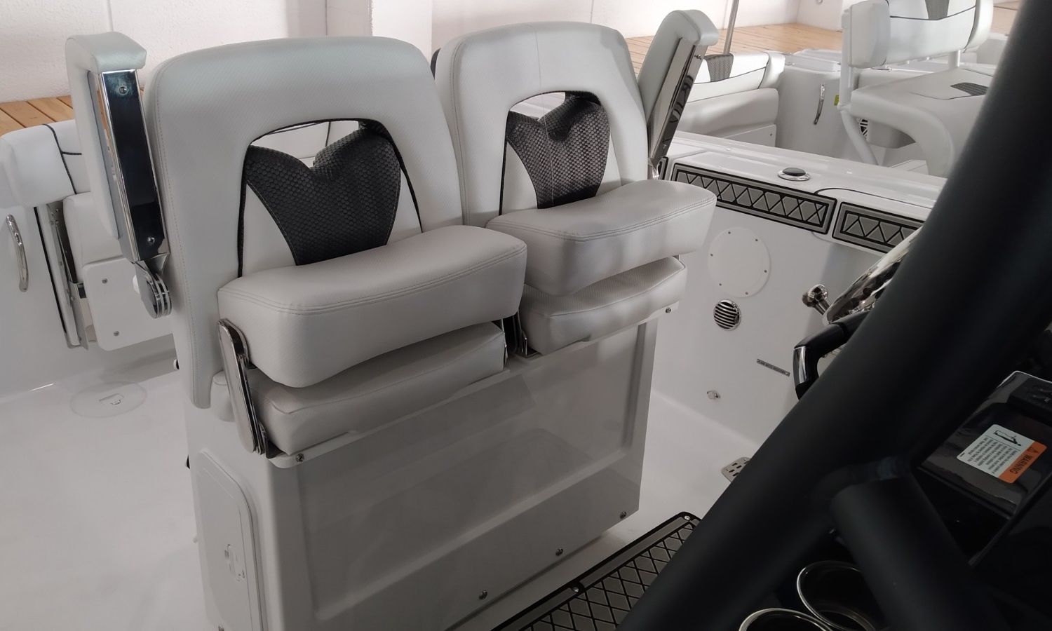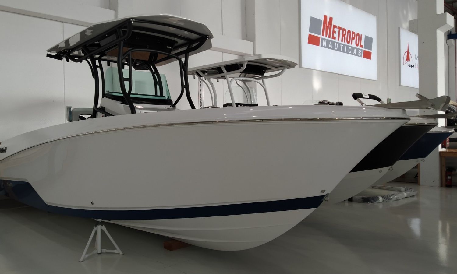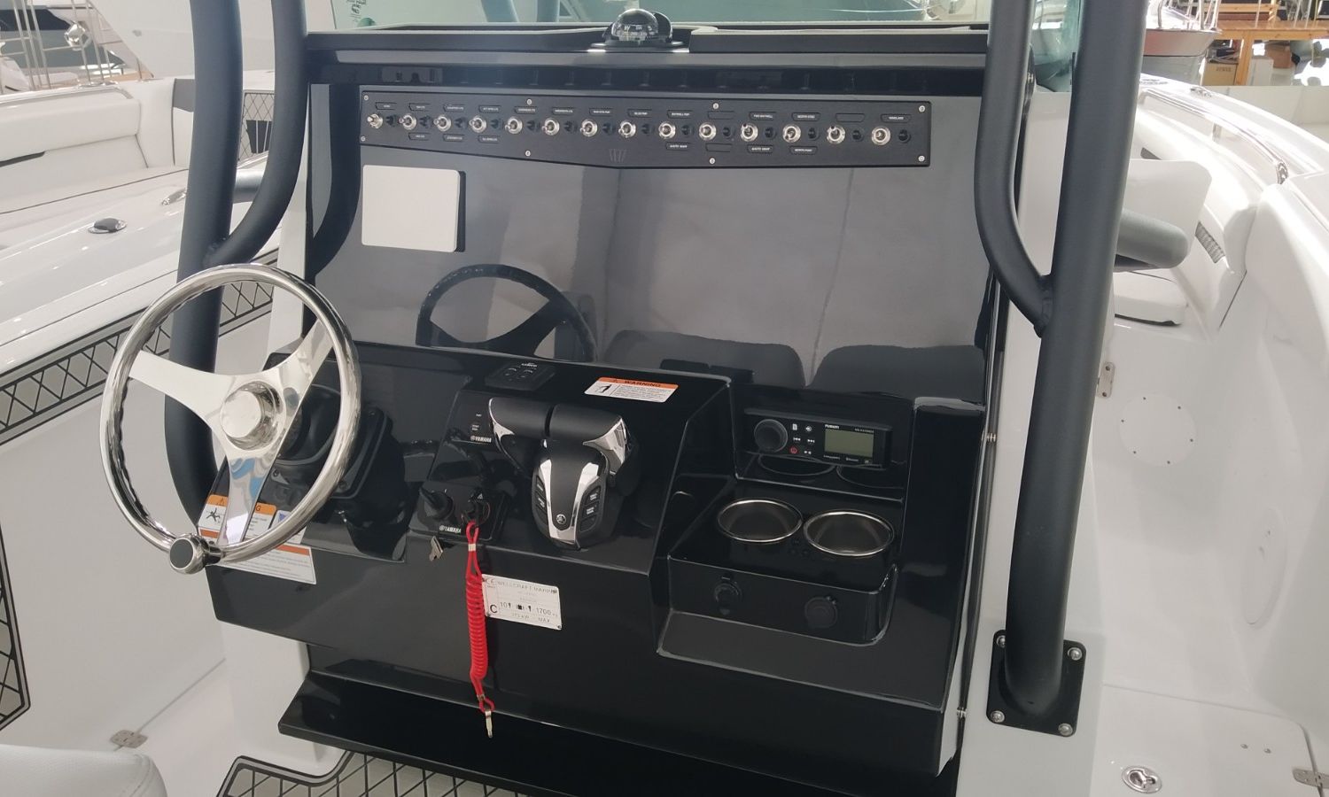 Colour Cockpit Carbon - Bow bathing cushion - Nursery + shower - Electric marine toilet - Electric marine drain - European pack - Battery charger - Underwater lights - T-Top de luxe - Bow cushion set - Cockpit table in bow - Cockpit sun deck in bow - Cockpit sun deck in bow - Cockpit carpet on pilot floor + side rod holders - Side door - Premium cockpit seating - Aft storage drawers Cockpit carpet on pilot floor + side rod holders - Side door - Premium cockpit seating - Storage drawers aft - Haima sun canopy with carbon mounts - Removable backrest on bow seats - Electric windlass + anchor kit - Blue lower hull - Console and seat canvas - Transport Shipyard-Costa-Brava.