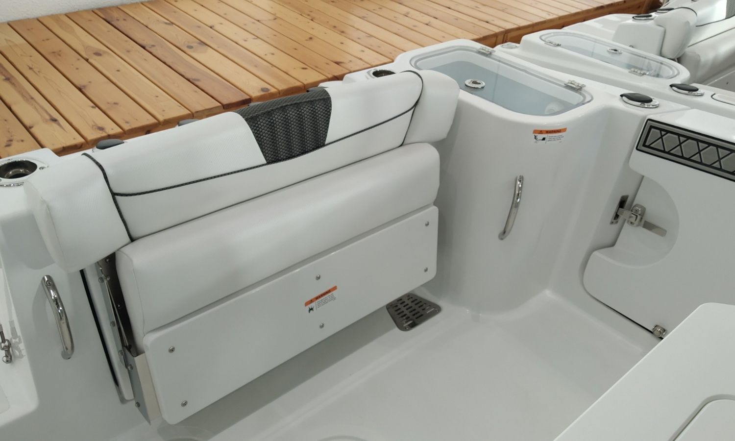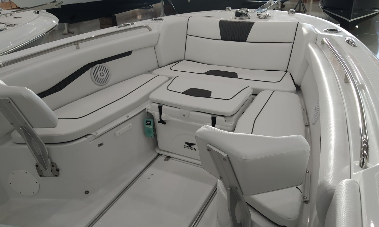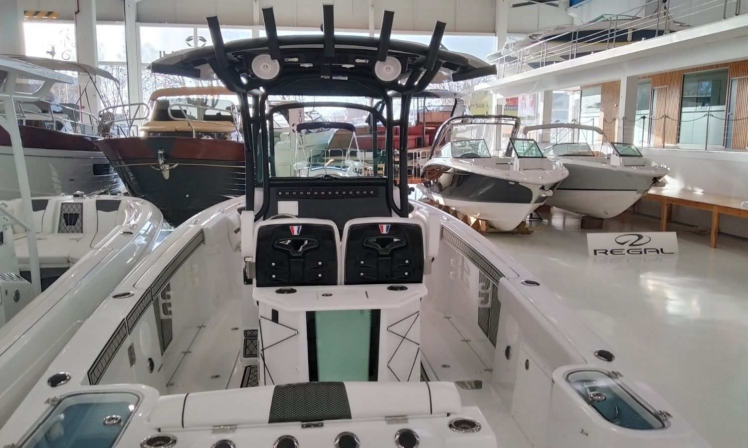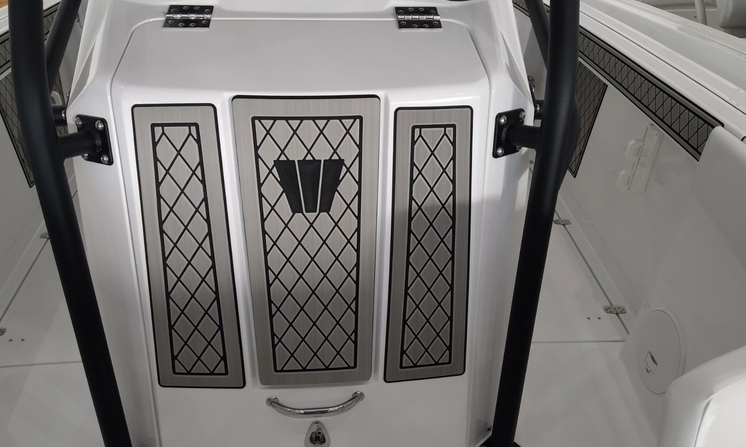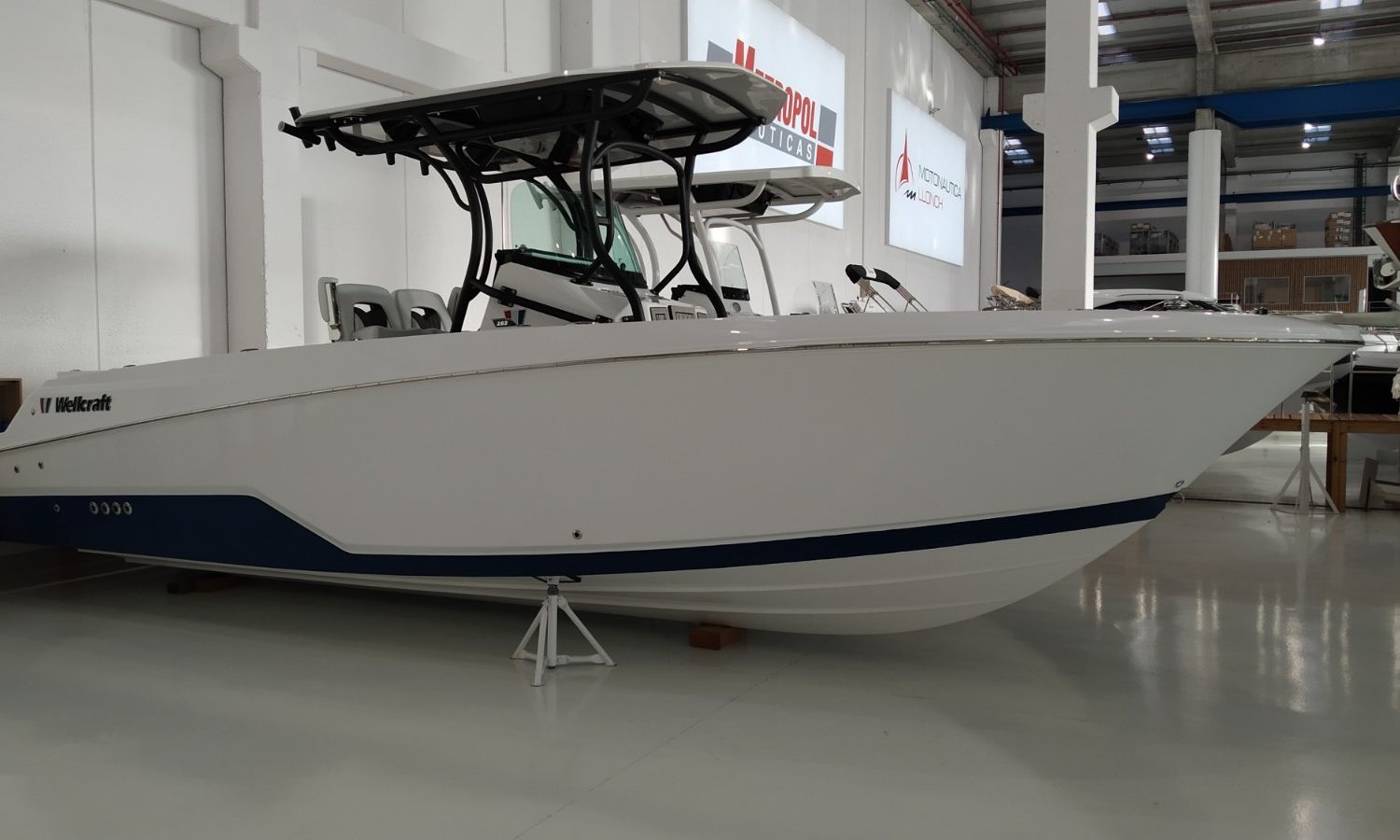 Colour Cockpit Carbon - Bow bathing cushion - Nursery + shower - Electric marine toilet - Electric marine drain - European pack - Battery charger - Underwater lights - T-Top de luxe - Bow cushion set - Cockpit table in bow - Cockpit sun deck in bow - Cockpit sun deck in bow - Cockpit carpet on pilot floor + side rod holders - Side door - Premium cockpit seating - Aft storage drawers Cockpit carpet on pilot floor + side rod holders - Side door - Premium cockpit seating - Storage drawers aft - Haima sun canopy with carbon mounts - Removable backrest on bow seats - Electric windlass + anchor kit - Blue lower hull - Console and seat canvas - Transport Shipyard-Costa-Brava.