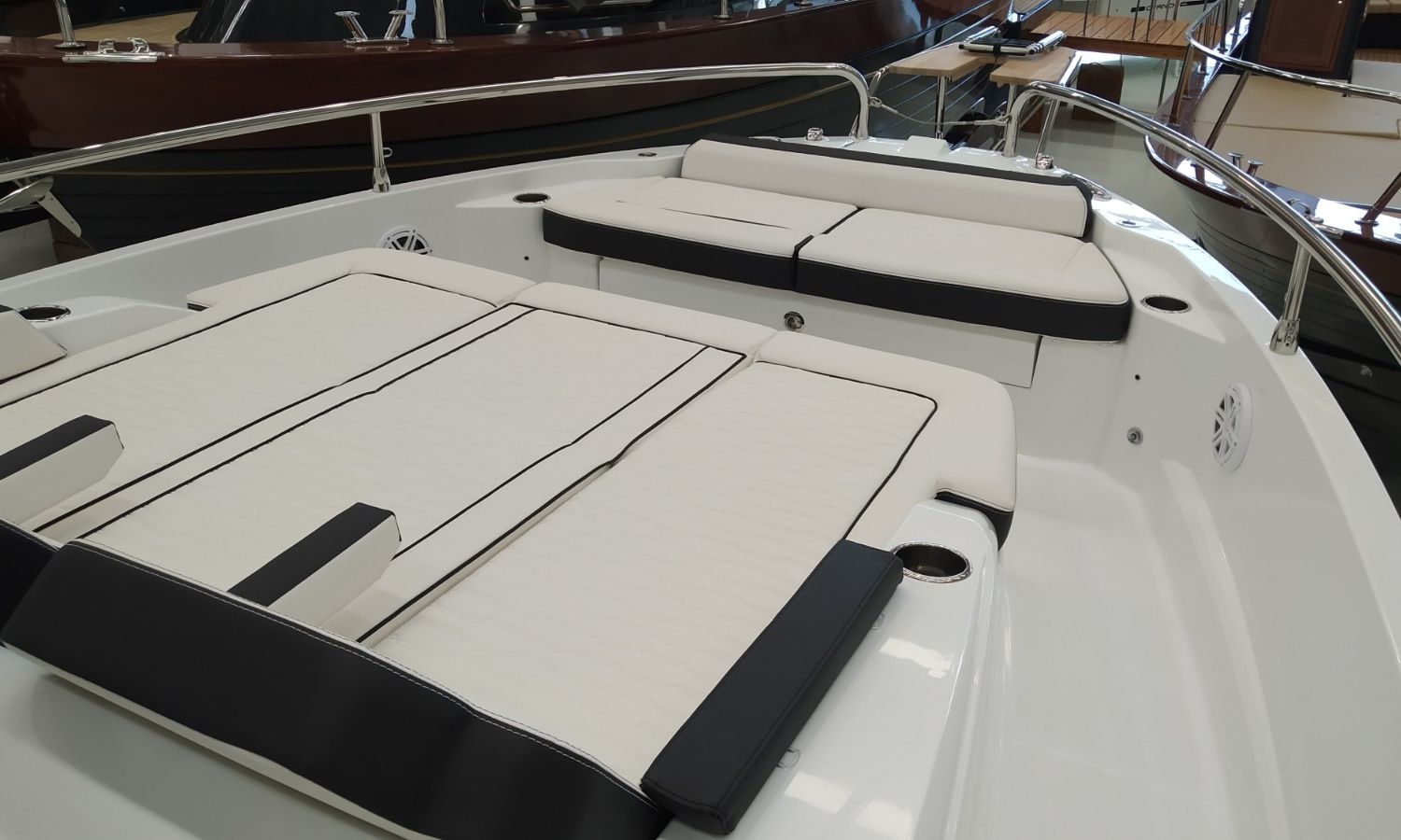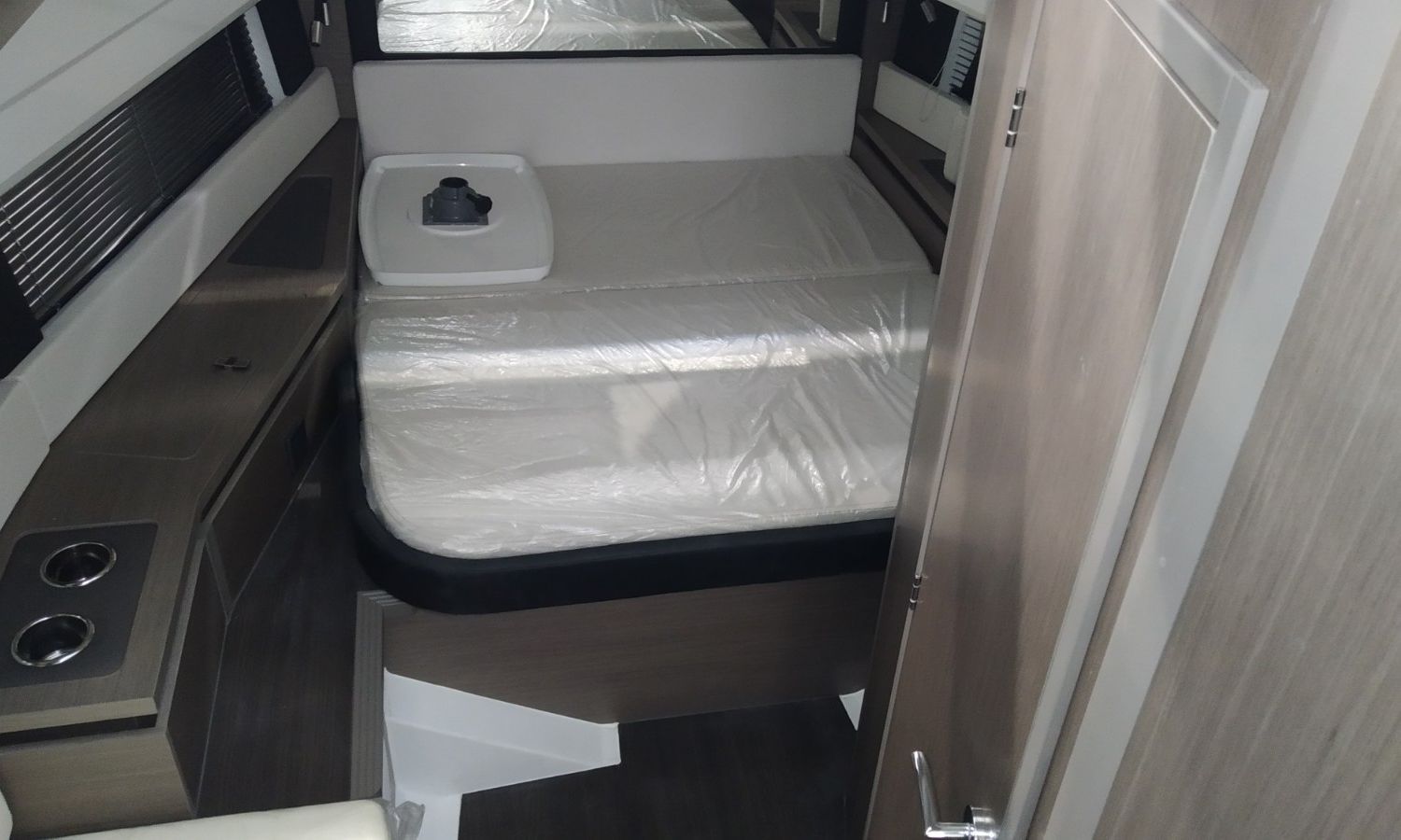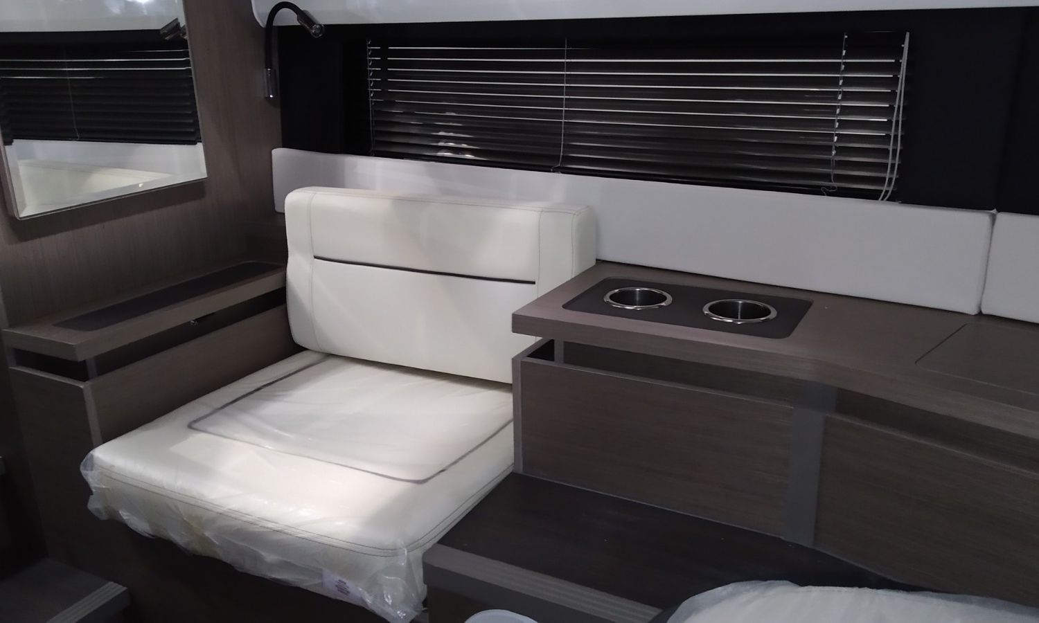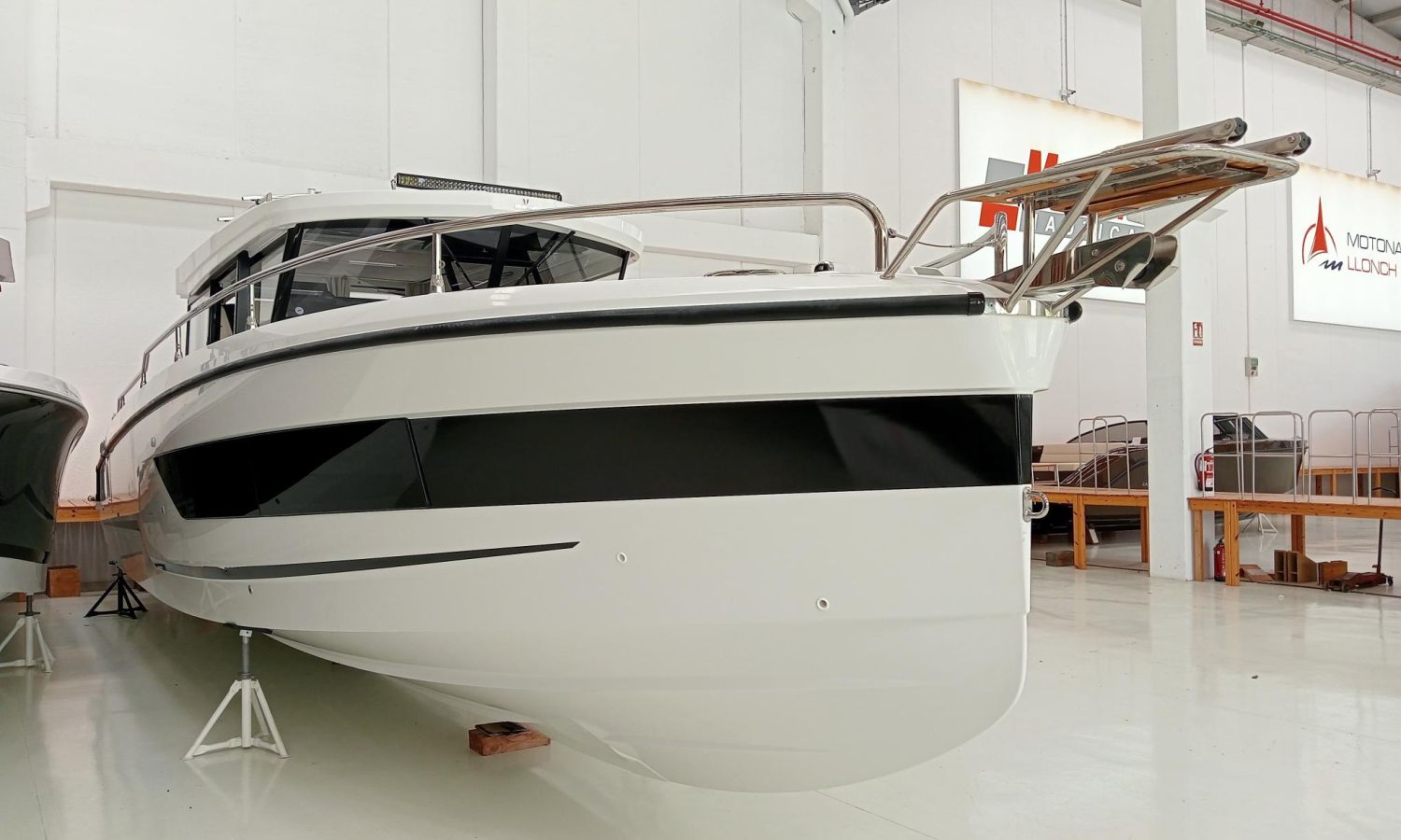 DOLCE IVORY UPHOLSTERY - GALLEY VERSION AFT - PREMIERE TRIM LEVEL - SUPERIOR ELECTRONICS PACK - SUPERIOR AUDIO PACK - SUN AWNING ON BOW - SUN AWNING ON STERN - PLATFORM WITH LADDER - MOVABLE BATHING LADDER FOR SIDE DOOR - LUGGAGE RACK ON HELM ROOF - SUN BATHING AND SEATING CUSHIONS IN BOW - LED BAR IN HELM - COOKER 1 FIRE - GAS HOB FOR GALLEY VERSION AFT - PRE-INSTALLATION FOR MICROWAVE - DOUBLE BERTH IN SALOON - 2 POUFS IN DINETTE - RADAR GARMIN FANTOM FANTOM 18 - DEFOGGER - MOSQUITO NETS IN PORTHOLES - CURTAINS IN HELM - (TRANSPORT TO COSTA-BRAVA INCLUDED).Boat description