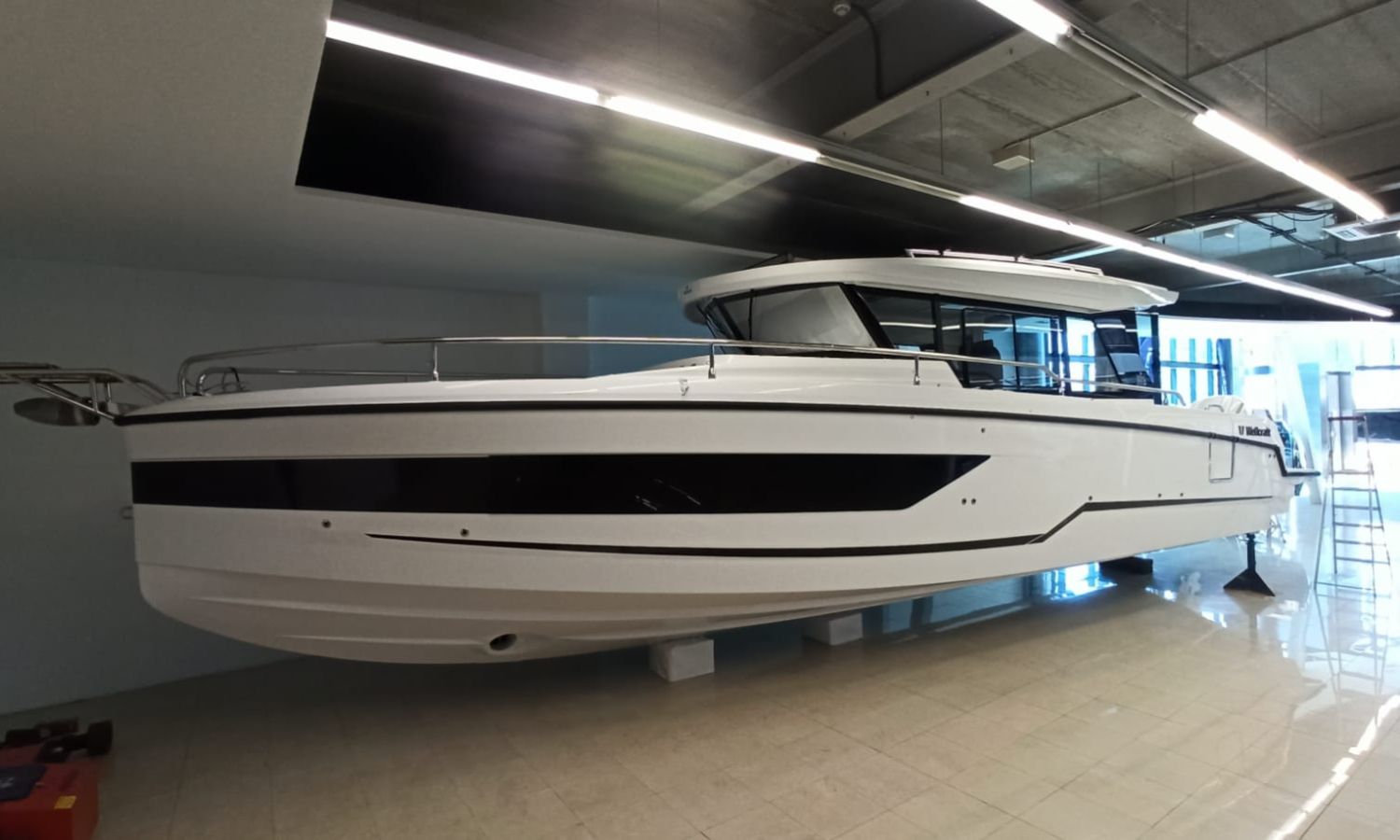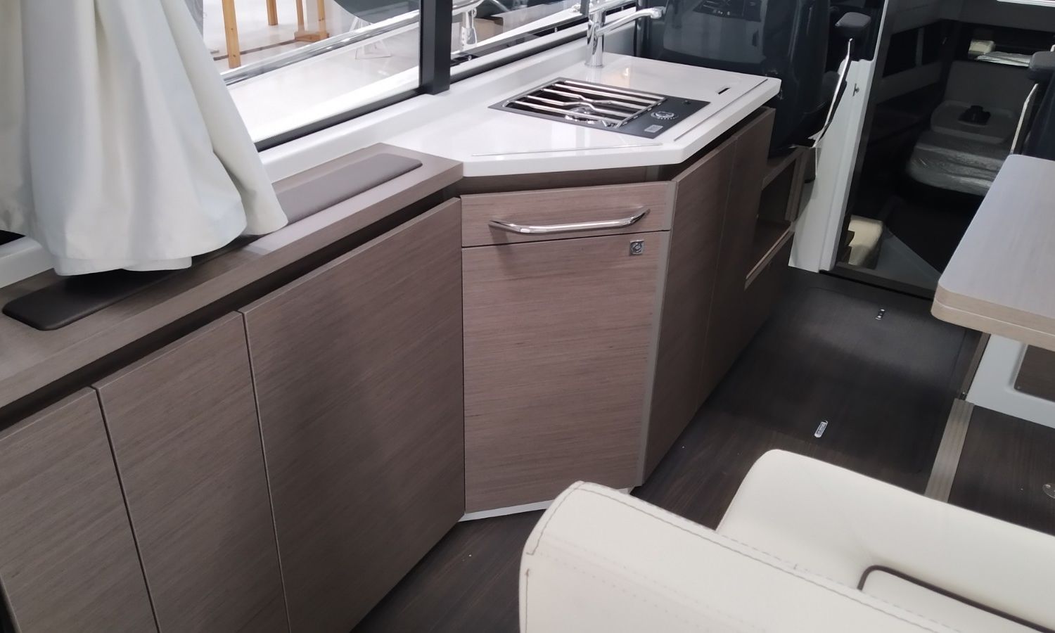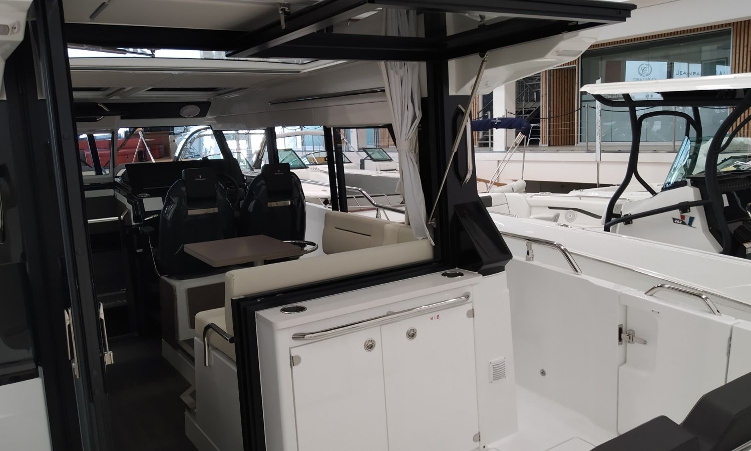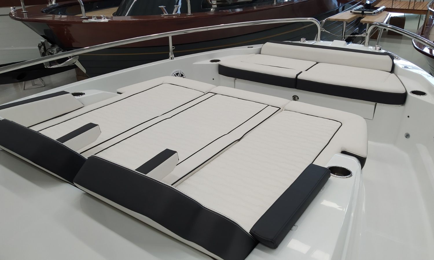 DOLCE IVORY UPHOLSTERY - GALLEY VERSION AFT - PREMIERE TRIM LEVEL - SUPERIOR ELECTRONICS PACK - SUPERIOR AUDIO PACK - SUN AWNING ON BOW - SUN AWNING ON STERN - PLATFORM WITH LADDER - MOVABLE BATHING LADDER FOR SIDE DOOR - LUGGAGE RACK ON HELM ROOF - SUN BATHING AND SEATING CUSHIONS IN BOW - LED BAR IN HELM - COOKER 1 FIRE - GAS HOB FOR GALLEY VERSION AFT - PRE-INSTALLATION FOR MICROWAVE - DOUBLE BERTH IN SALOON - 2 POUFS IN DINETTE - RADAR GARMIN FANTOM FANTOM 18 - DEFOGGER - MOSQUITO NETS IN PORTHOLES - CURTAINS IN HELM - (TRANSPORT TO COSTA-BRAVA INCLUDED).Boat description