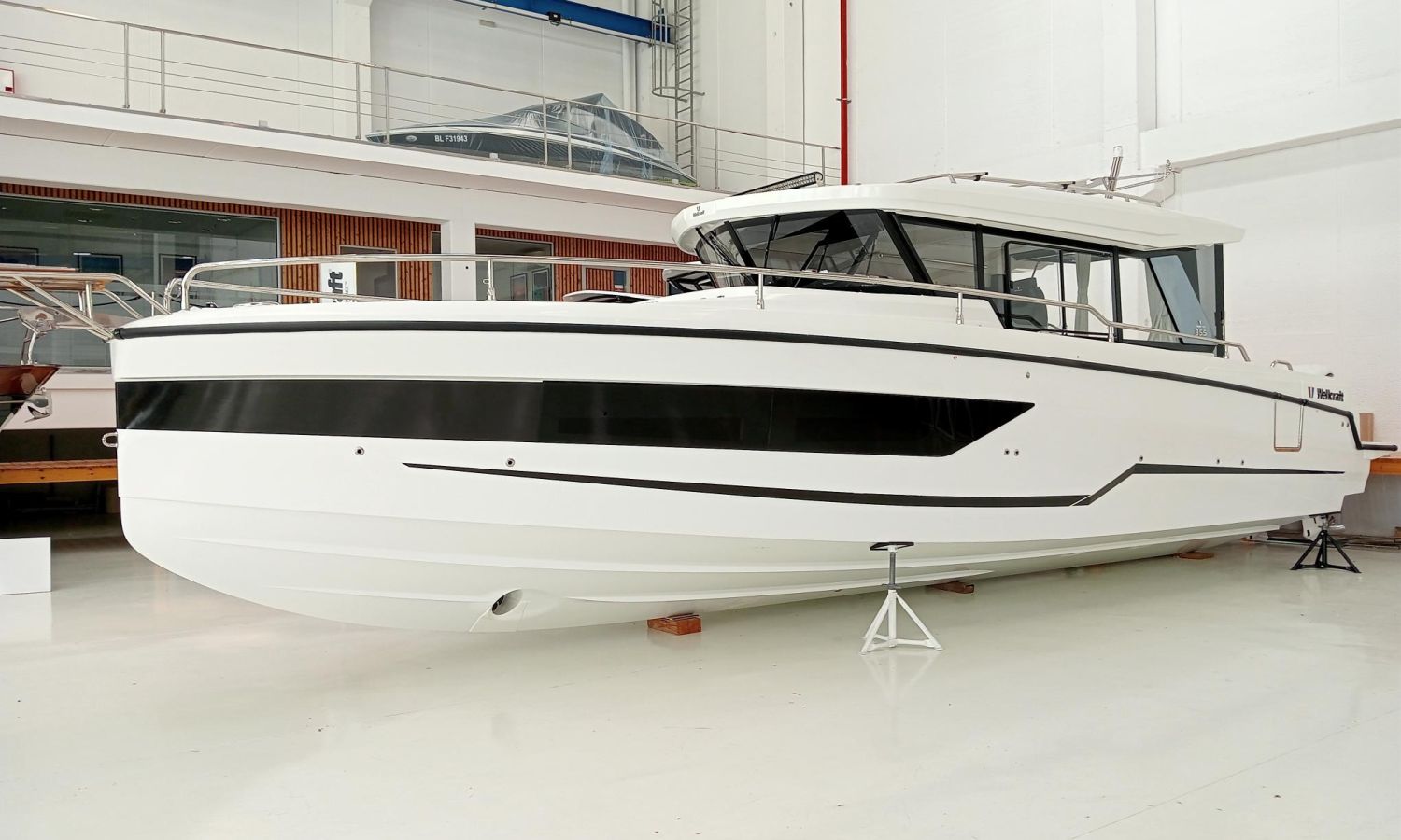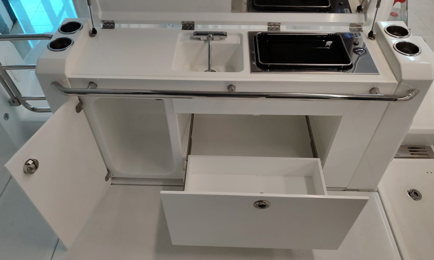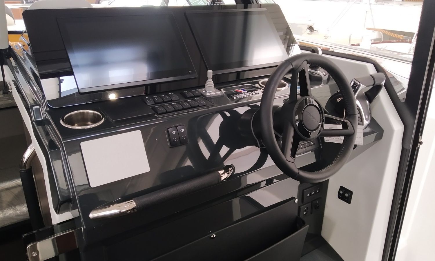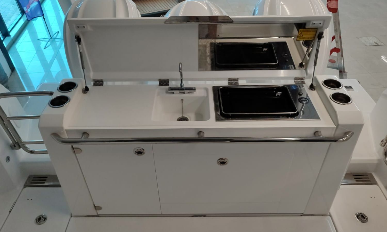 DOLCE IVORY UPHOLSTERY - GALLEY VERSION AFT - PREMIERE TRIM LEVEL - SUPERIOR ELECTRONICS PACK - SUPERIOR AUDIO PACK - SUN AWNING ON BOW - SUN AWNING ON STERN - PLATFORM WITH LADDER - MOVABLE BATHING LADDER FOR SIDE DOOR - LUGGAGE RACK ON HELM ROOF - SUN BATHING AND SEATING CUSHIONS IN BOW - LED BAR IN HELM - COOKER 1 FIRE - GAS HOB FOR GALLEY VERSION AFT - PRE-INSTALLATION FOR MICROWAVE - DOUBLE BERTH IN SALOON - 2 POUFS IN DINETTE - RADAR GARMIN FANTOM FANTOM 18 - DEFOGGER - MOSQUITO NETS IN PORTHOLES - CURTAINS IN HELM - (TRANSPORT TO COSTA-BRAVA INCLUDED).Boat description