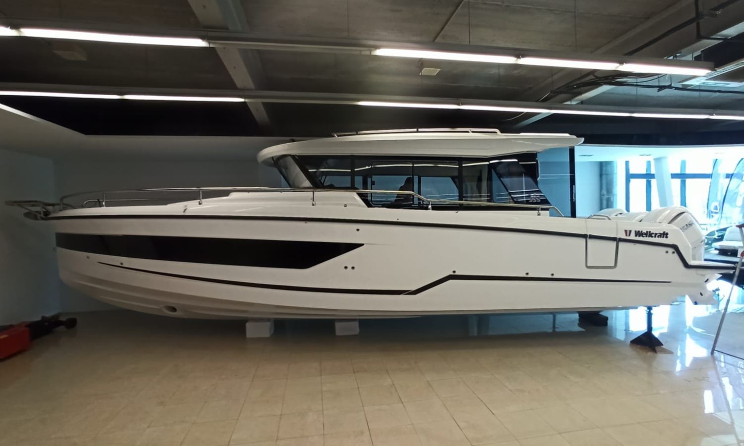 The Wellcraft 355 takes the lead in every aspect; outstanding design, comfort, and most importantly, speed and seaworthiness. Designed to push the limits - out past the horizon where the water is deep and adventure begins - Wellcraft utilizes its rich heritage of offshore experience to push into this new market with American flare and shameless enthusiasm.