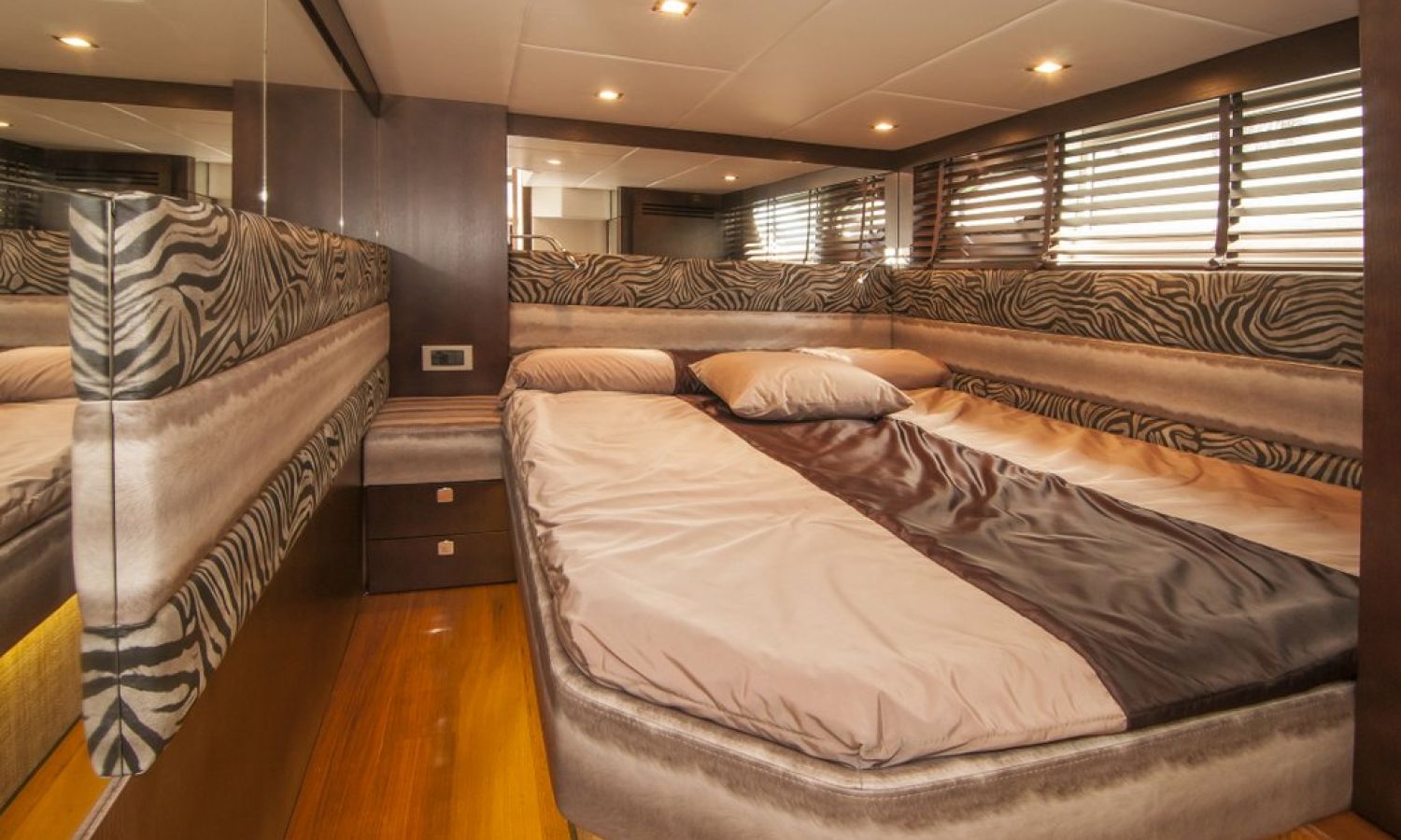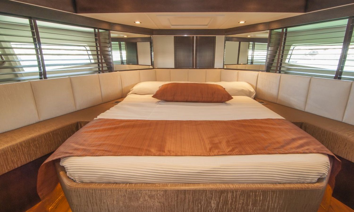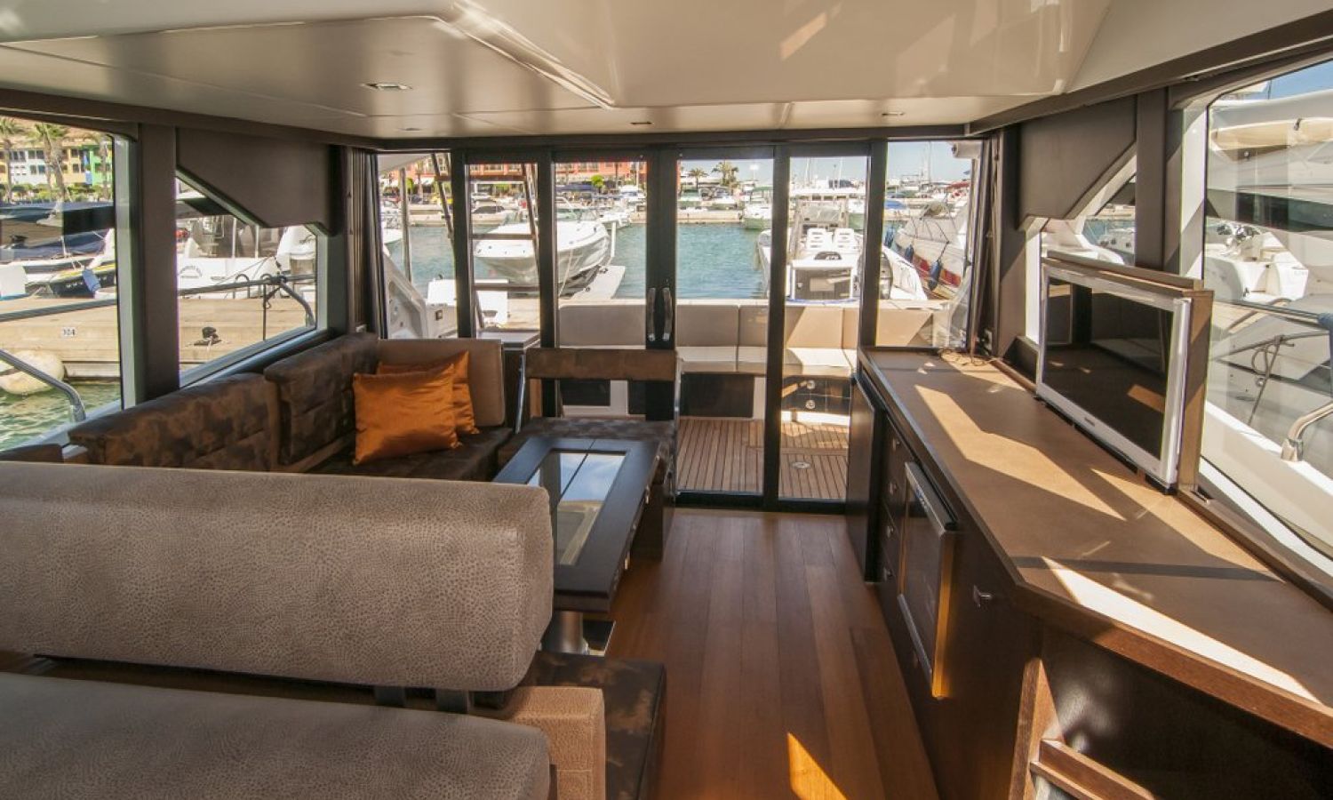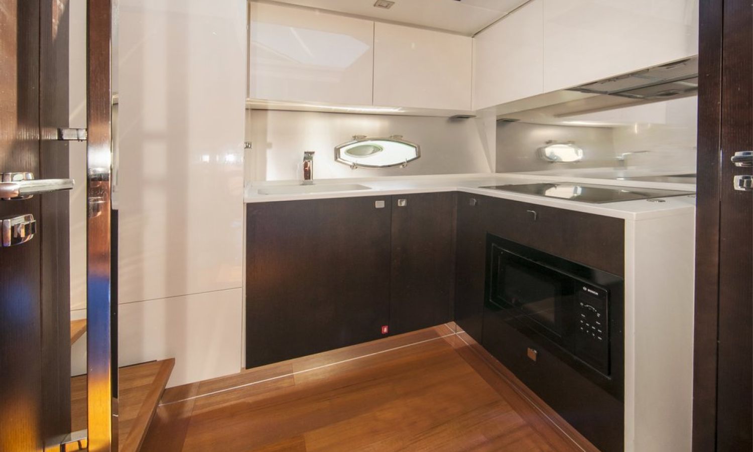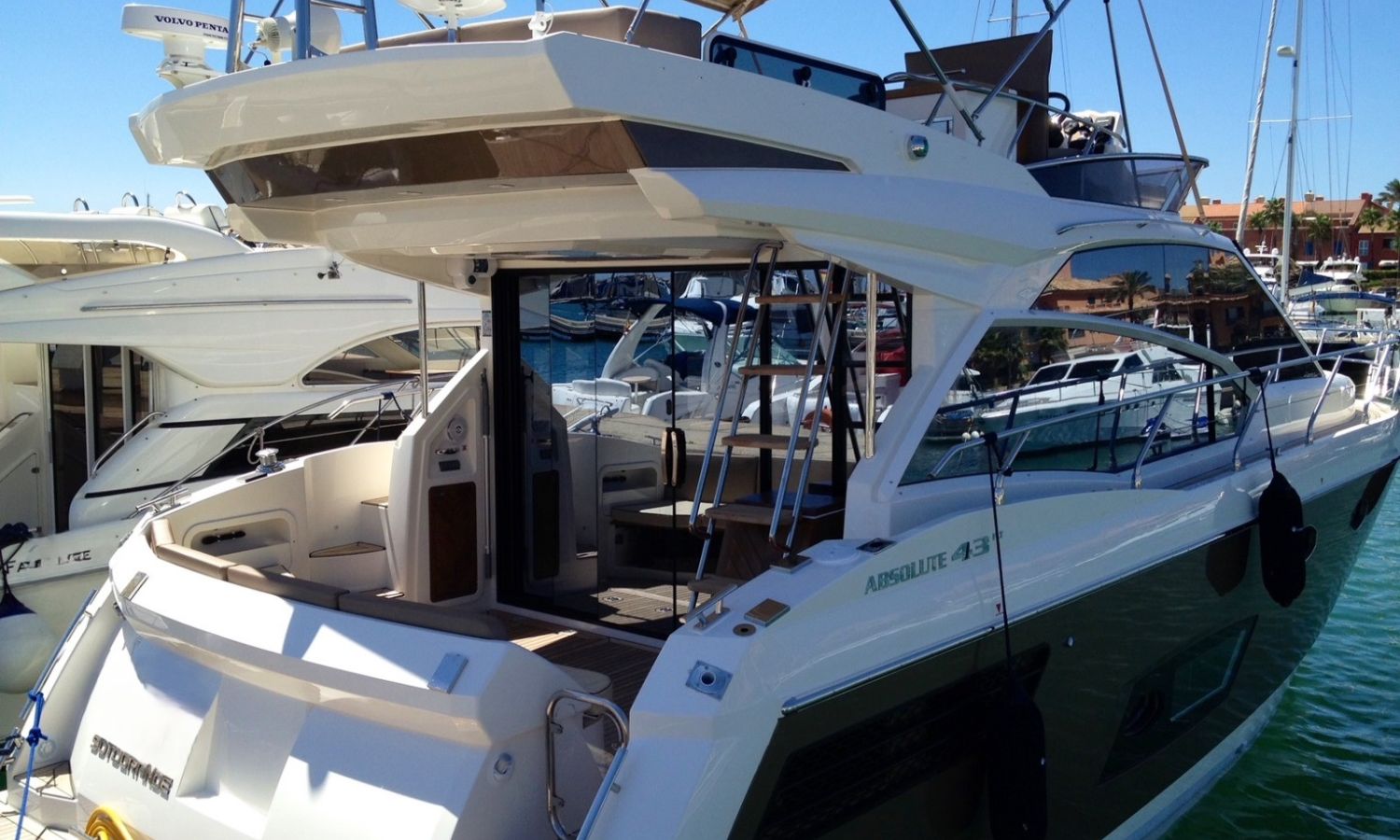 Toldo bimini en Flybridge - 3 cabinas - Ducha en popa - Plataforma de baño hidráulica con escalera - Solárium de popa - Mesa en la bañera - Solárium de proa - Mueble-bar con fregadero - Bañera en teka - Cargador de baterias - Toma de puerto 220 V. - Generador - Aire acondicionado - Nevera/Congelador - Placa vitrocerámica - Microondas - Lavavajillas - Gps/Plotter/Sonda - VHF - Piloto automático - Joystick de amarre en popa - Radar Raymarine 15" - Tv en el salón - Equipo de audio - Luces sub-acuáticas - Molinete eléctrico con ancla y cadena - 2 WC eléctricos con depósito de aguas negras - Antifouling.Estabilizador giroscópico