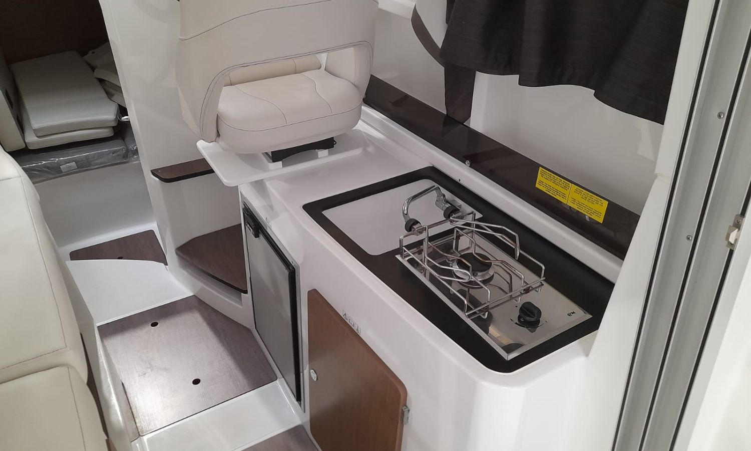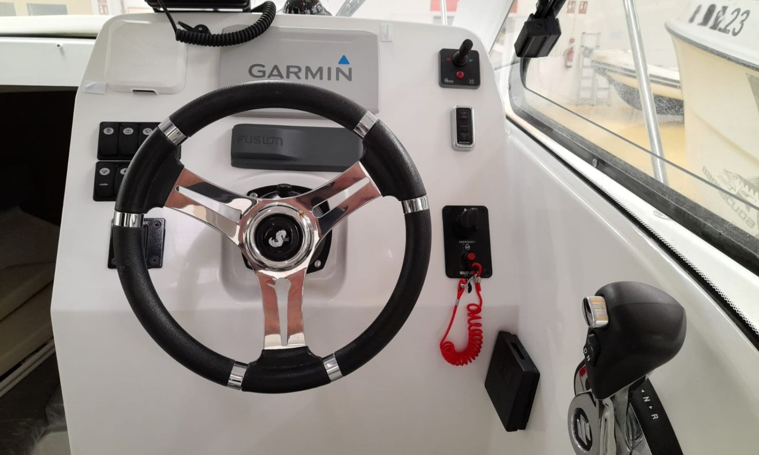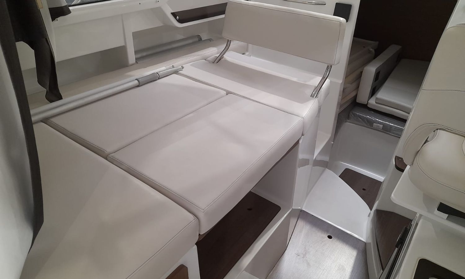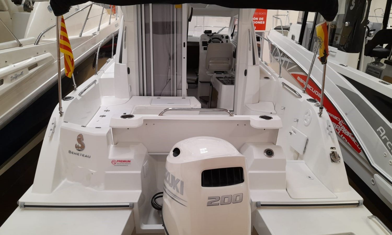 Toldo parasol - Ducha en popa - Escalera de baño - Solárium de proa - Mesa en la bañera - Mueble-bar con fregadero - Nevera 12 V - Molinete eléctrico con ancla y cadena - Hélice de proa - Gps/Plotter/Sonda - VHF - Compás - Equipo de audio - Toma de puerto 220 V - Cargador de baterías - Flaps - WC eléctrico con depósito de aguas negras - Cabina - Antifouling.