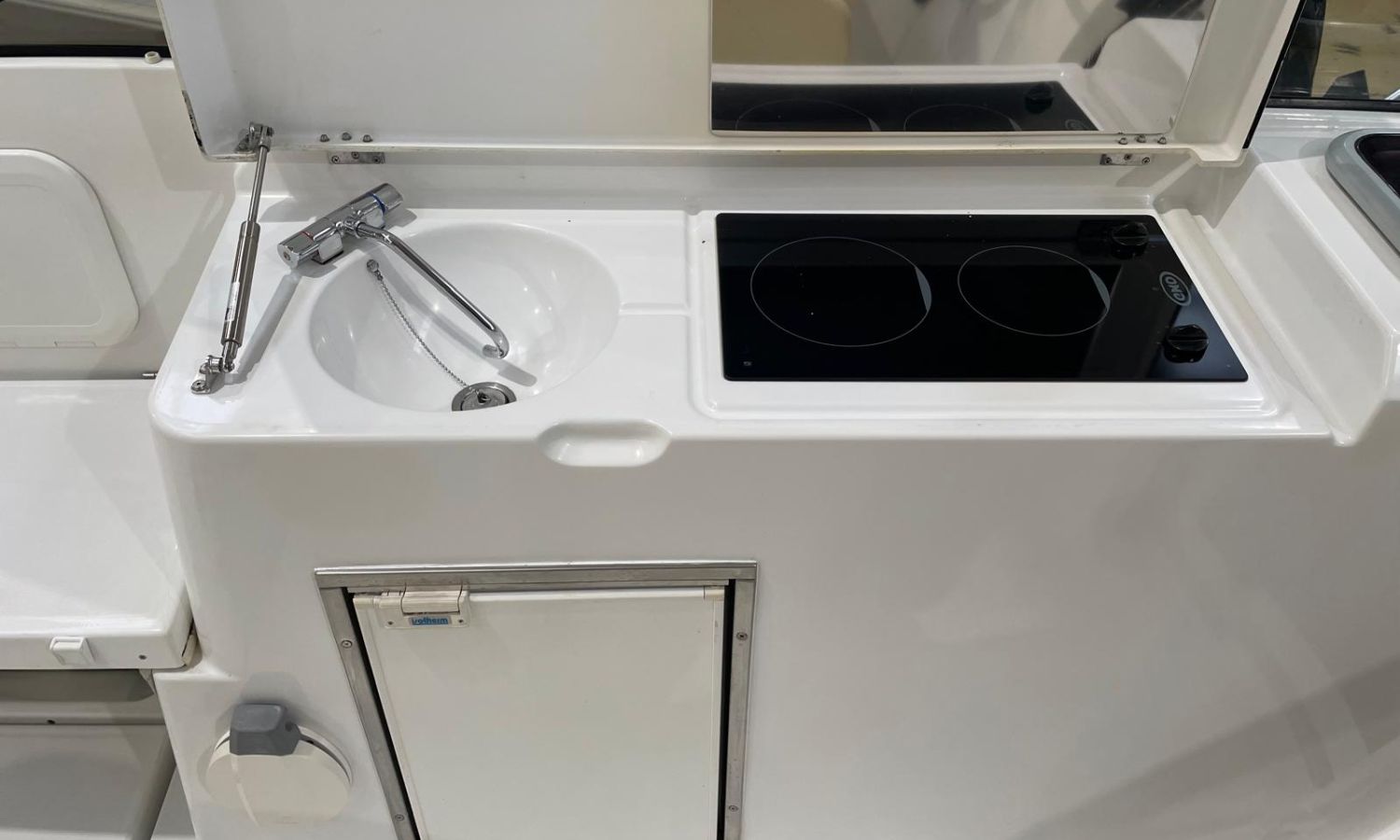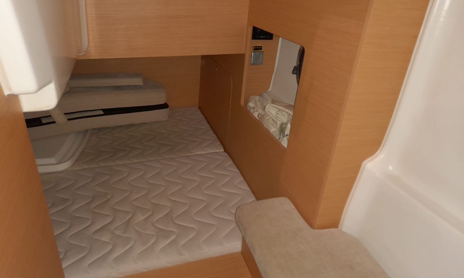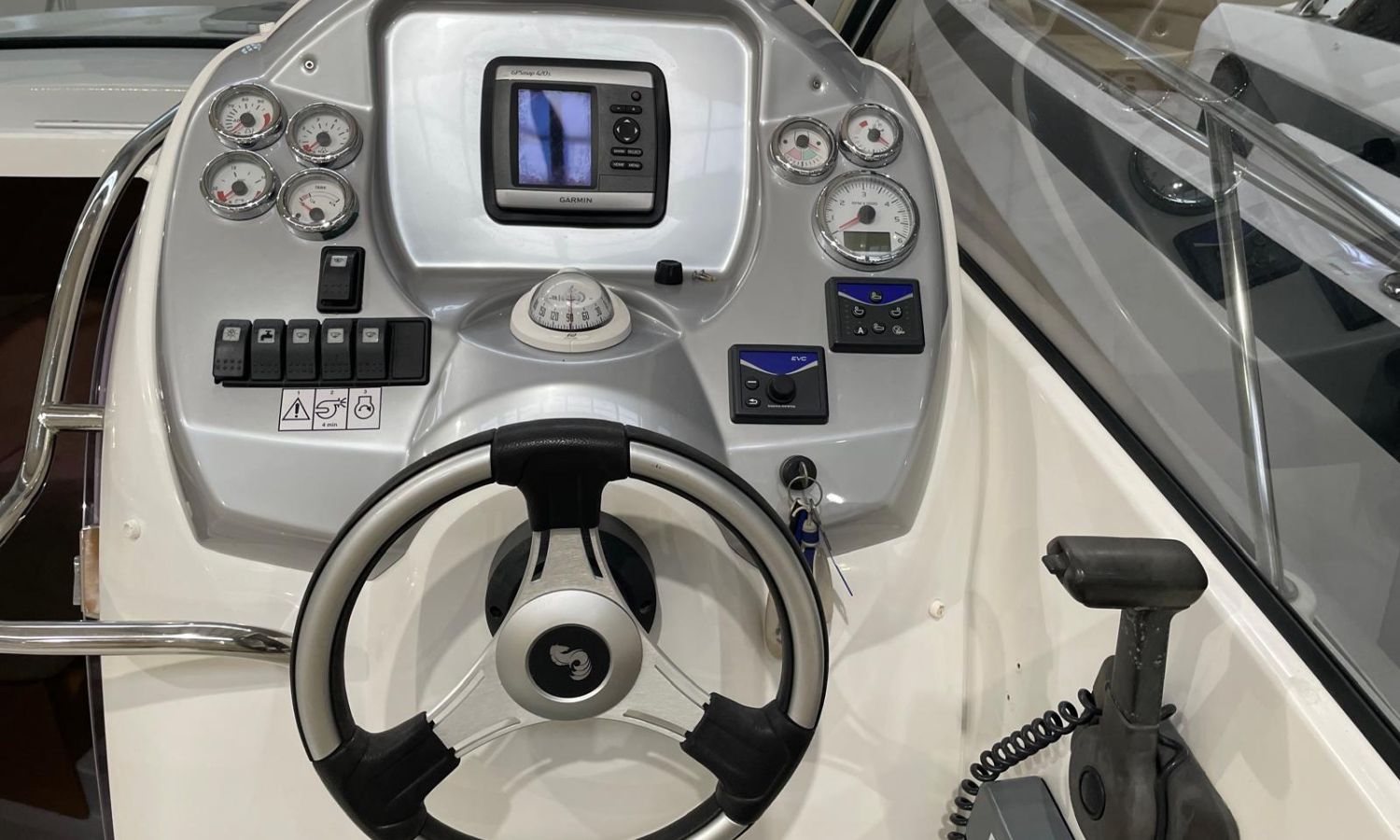 Toldo bimini - Plataforma de baño con escalera - Ducha en popa - Mesa en la bañera - Nevera 12 V. - Placa eléctrica - Teka - Equipo de audio - Gps/Plotter/Sonda - Compas - Molinete de ancla eéctrico - Colchonetas solarium proa - Hélice de proa - Wc électrico - Antifouling.Descripción embarcación