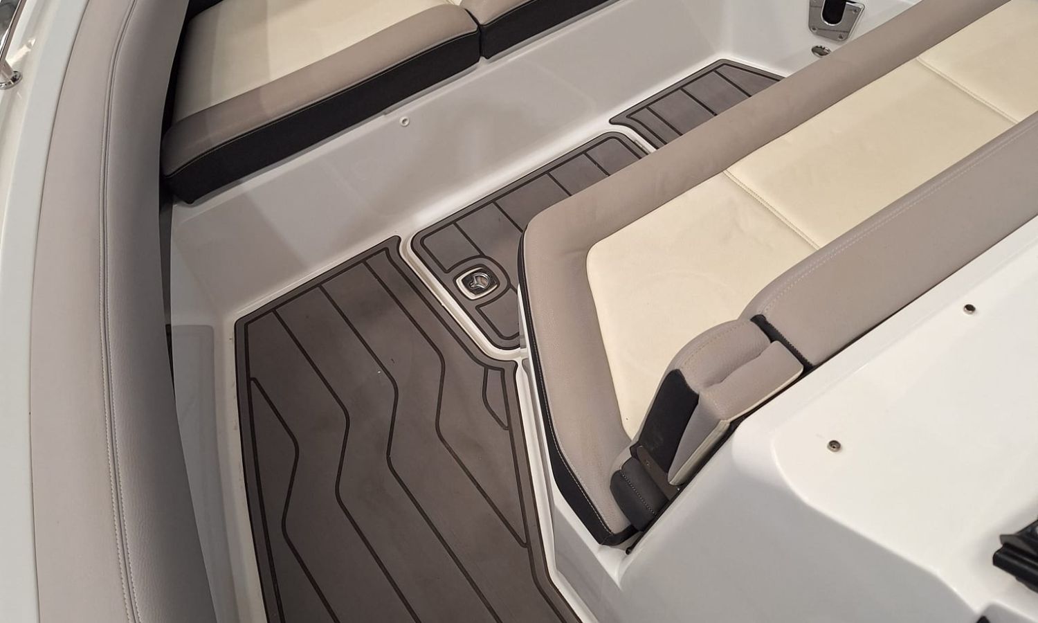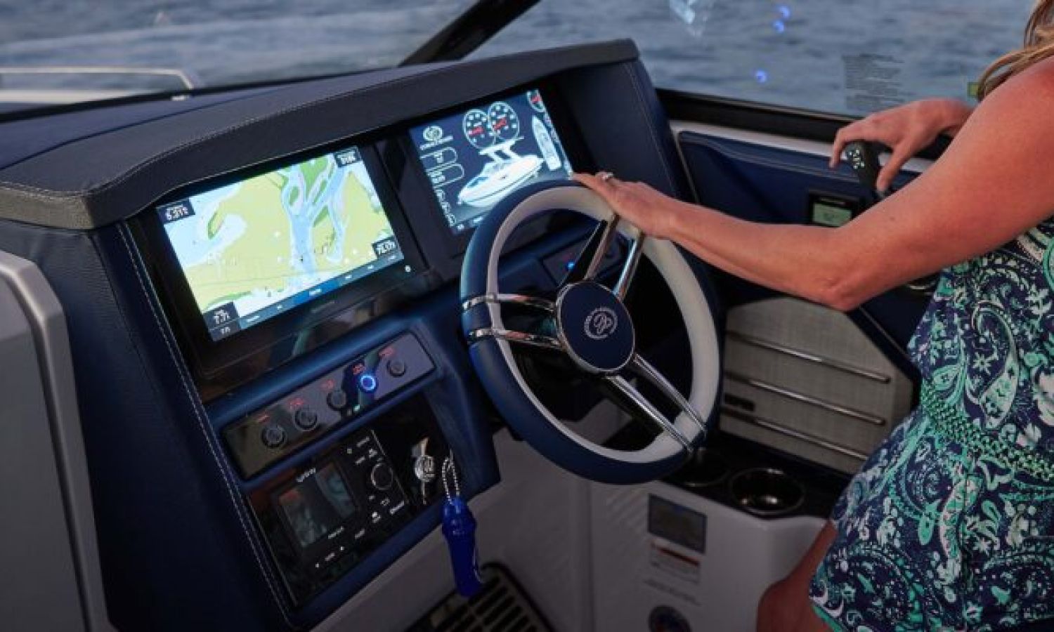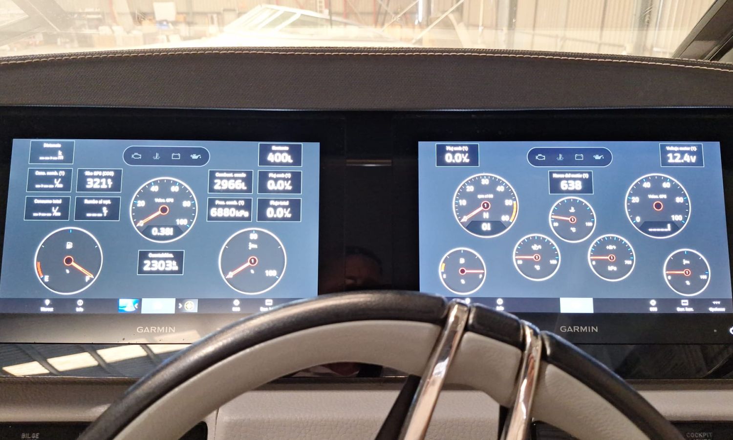 Gps/Plotter/Sonda - Hélice de proa - Luces de navegación - Luces de cortesía - Flaps lenco - Blower - Bomba de achique - Bocina - Molinete de ancla - Doble pantalla Garmín de 9 pulgadas - Cargador de baterías - Toma de puerto - Equipo de audio Fusion - Ducha en popa - Fregadero - Nevera - Wc marino - Plataforma de popa abatible - Tercera bateria adicional - Antifouling.Descripción embarcación
