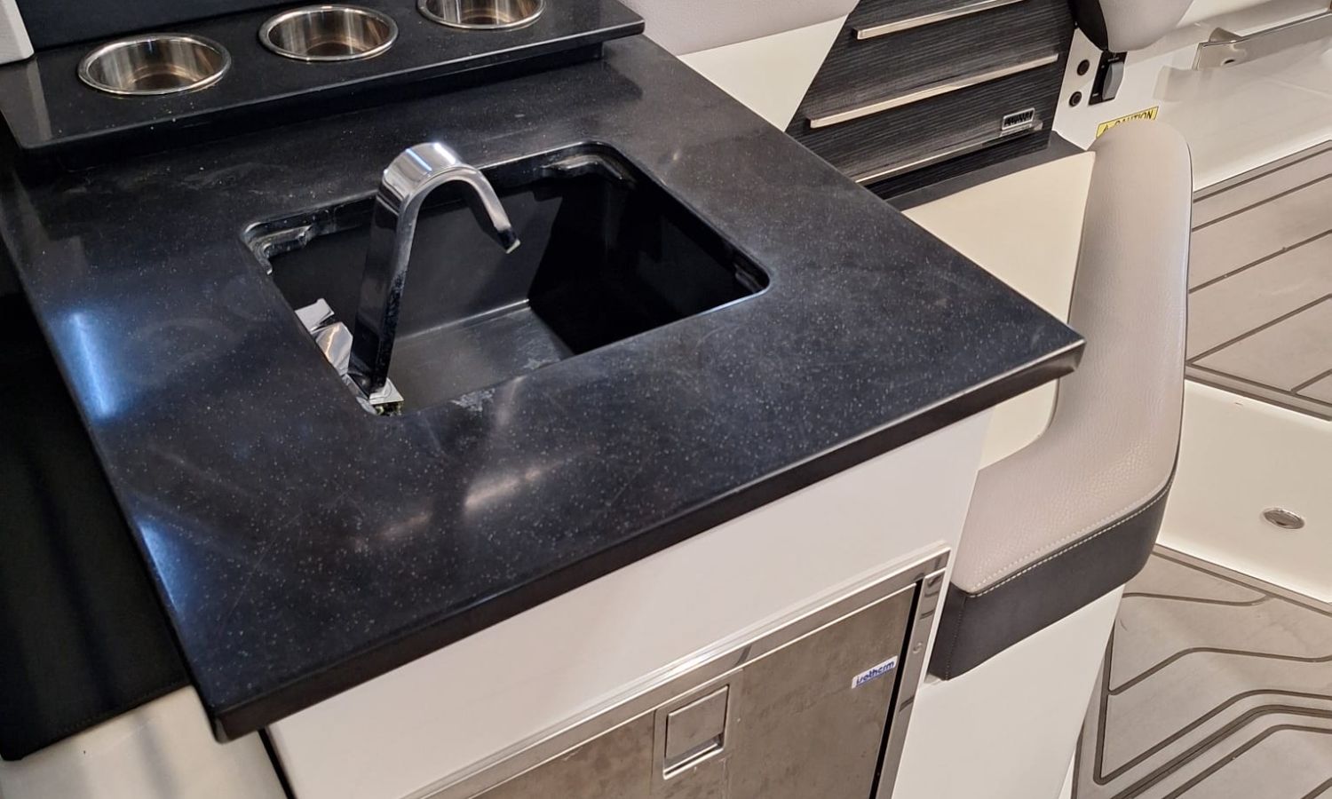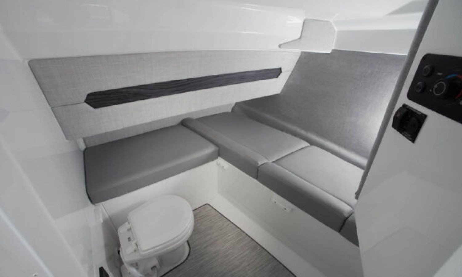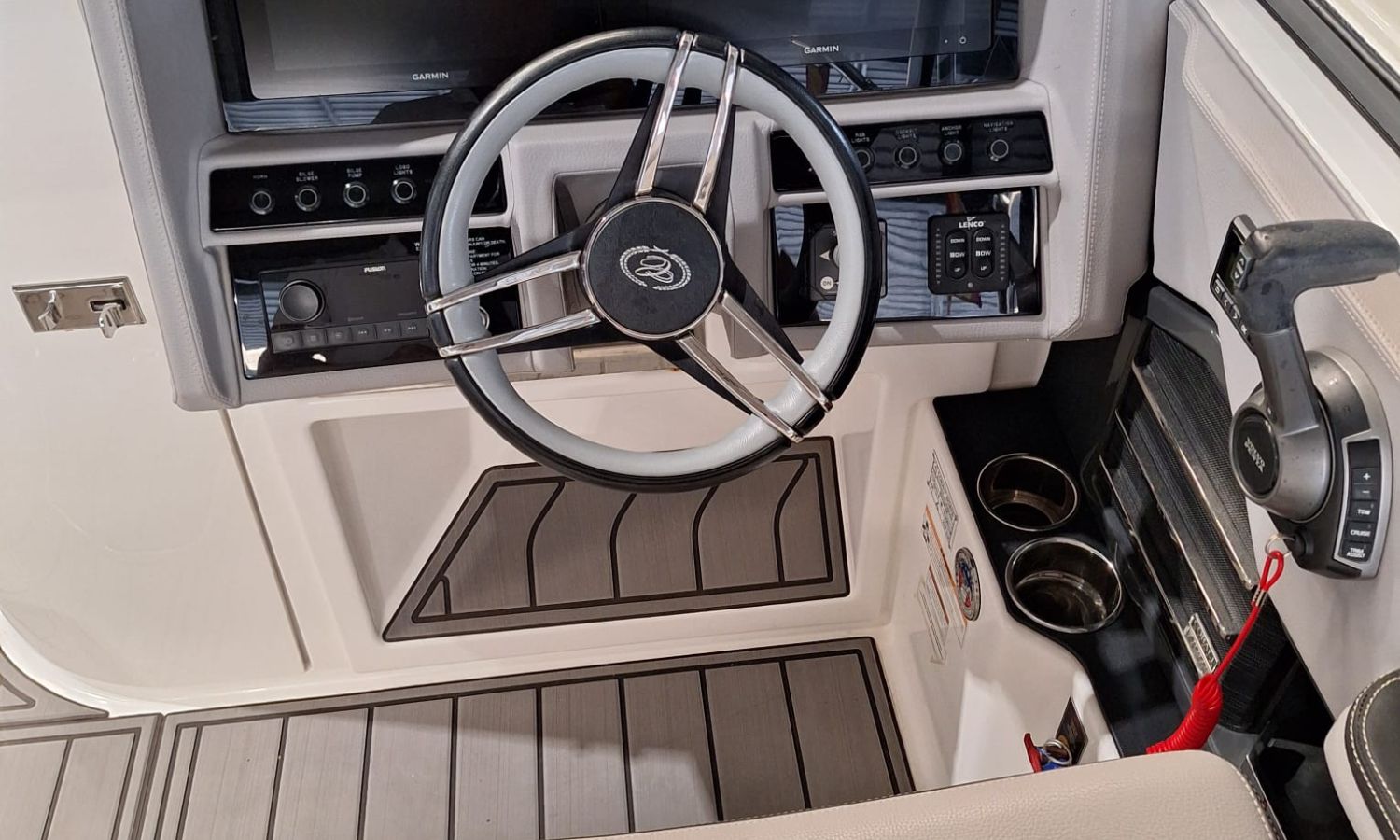 Gps/Plotter/Sonda - Hélice de proa - Luces de navegación - Luces de cortesía - Flaps lenco - Blower - Bomba de achique - Bocina - Molinete de ancla - Doble pantalla Garmín de 9 pulgadas - Cargador de baterías - Toma de puerto - Equipo de audio Fusion - Ducha en popa - Fregadero - Nevera - Wc marino - Plataforma de popa abatible - Tercera bateria adicional - Antifouling.Descripción embarcación