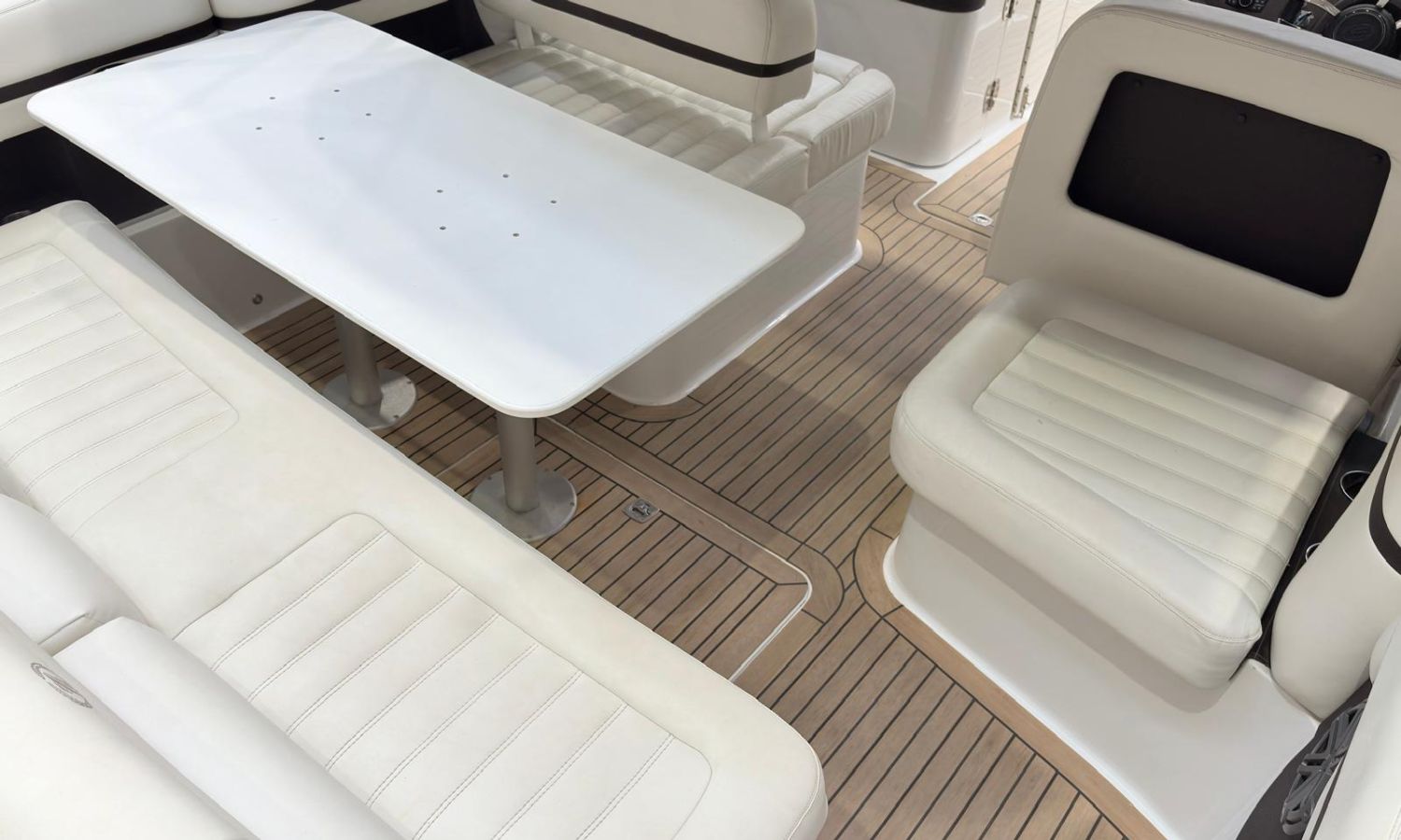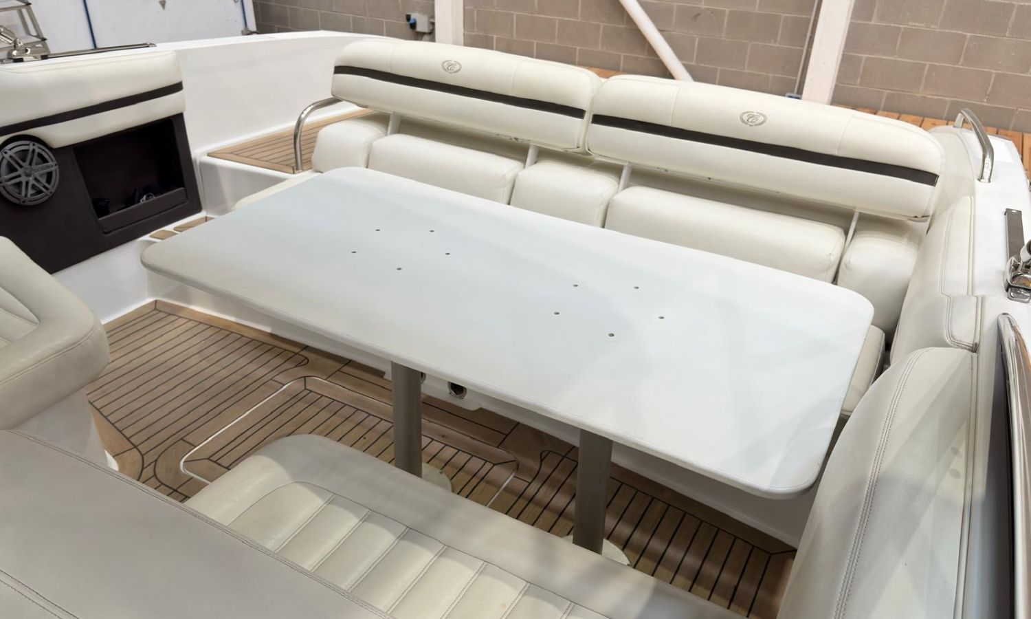 Toldo parasol - Plataforma de baño - Solárium de popa - Luces subacuáticas - Teca - Mesa en la bañera - Nevera - Equipo audio - Contrtoles electrónicos - Piloto automático - Gps/Plotter/Sonda - Wc eléctrico - Fregadero - Molinete de ancla eléctrico - Lona de fondeo - Antifouling.Descripción embarcación