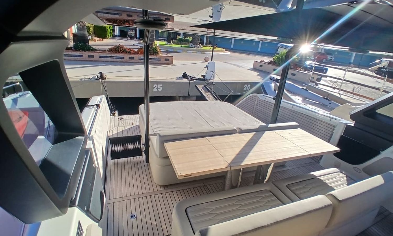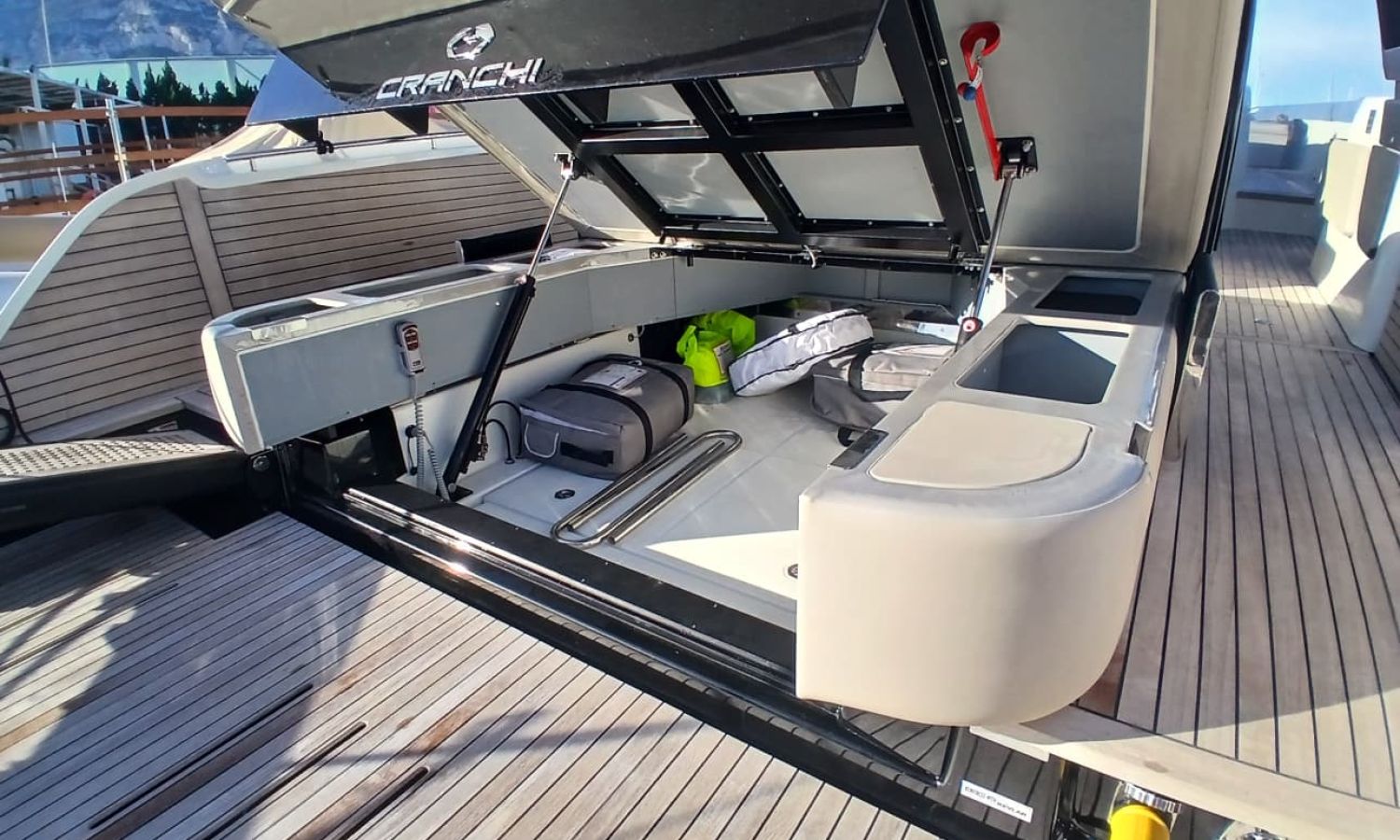 Embarcación en stock. Entrega inmediata. Modelo A 46 LT del prestigioso astillero italiano Cranchi, de 14,25 m de eslora total. Barco con hard top y gran solárium a popa. Interiores de diseño moderno y gran habitabilidad.DEN-Nº 7865