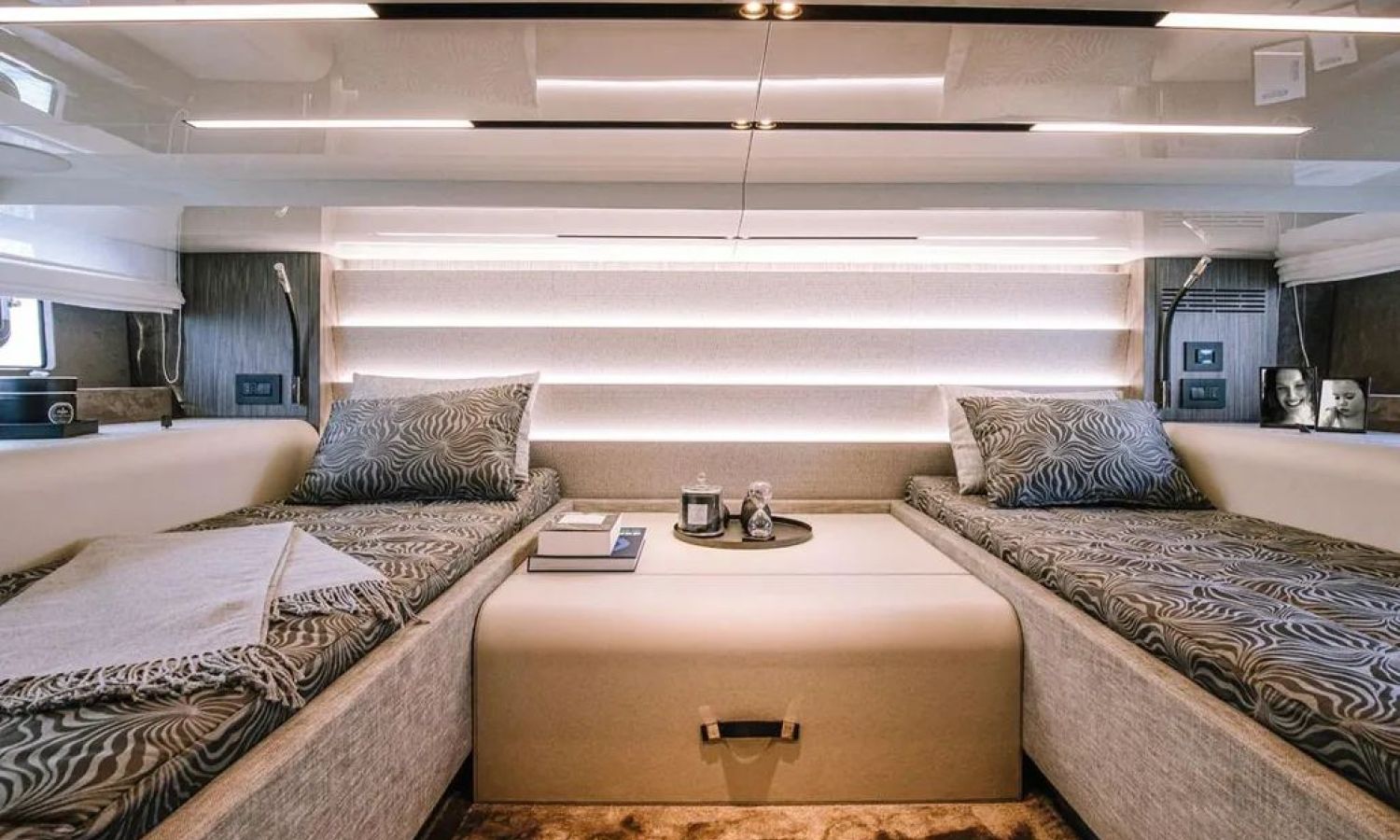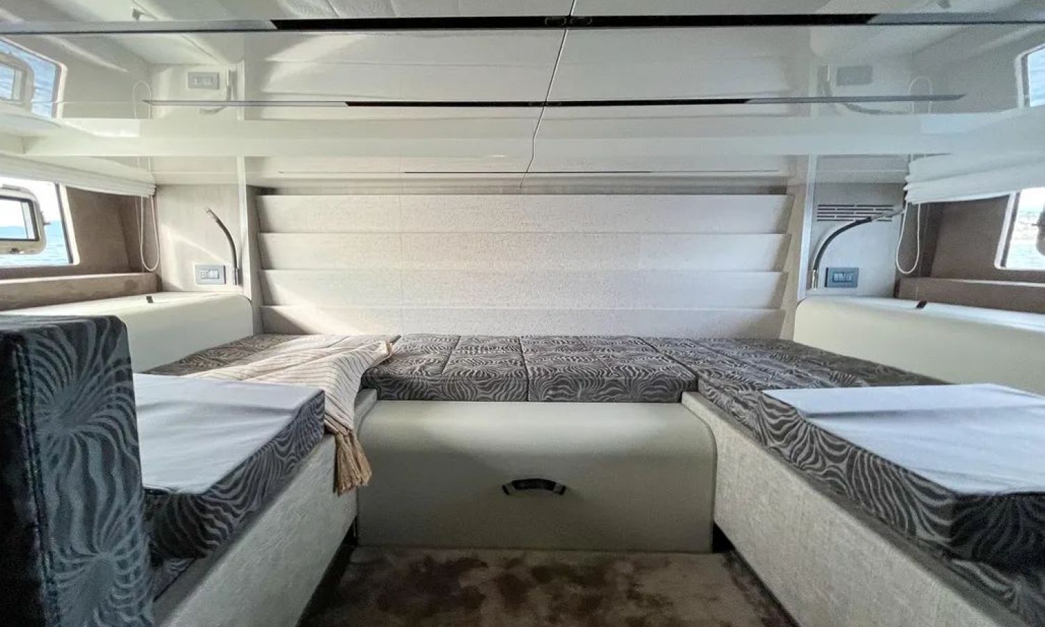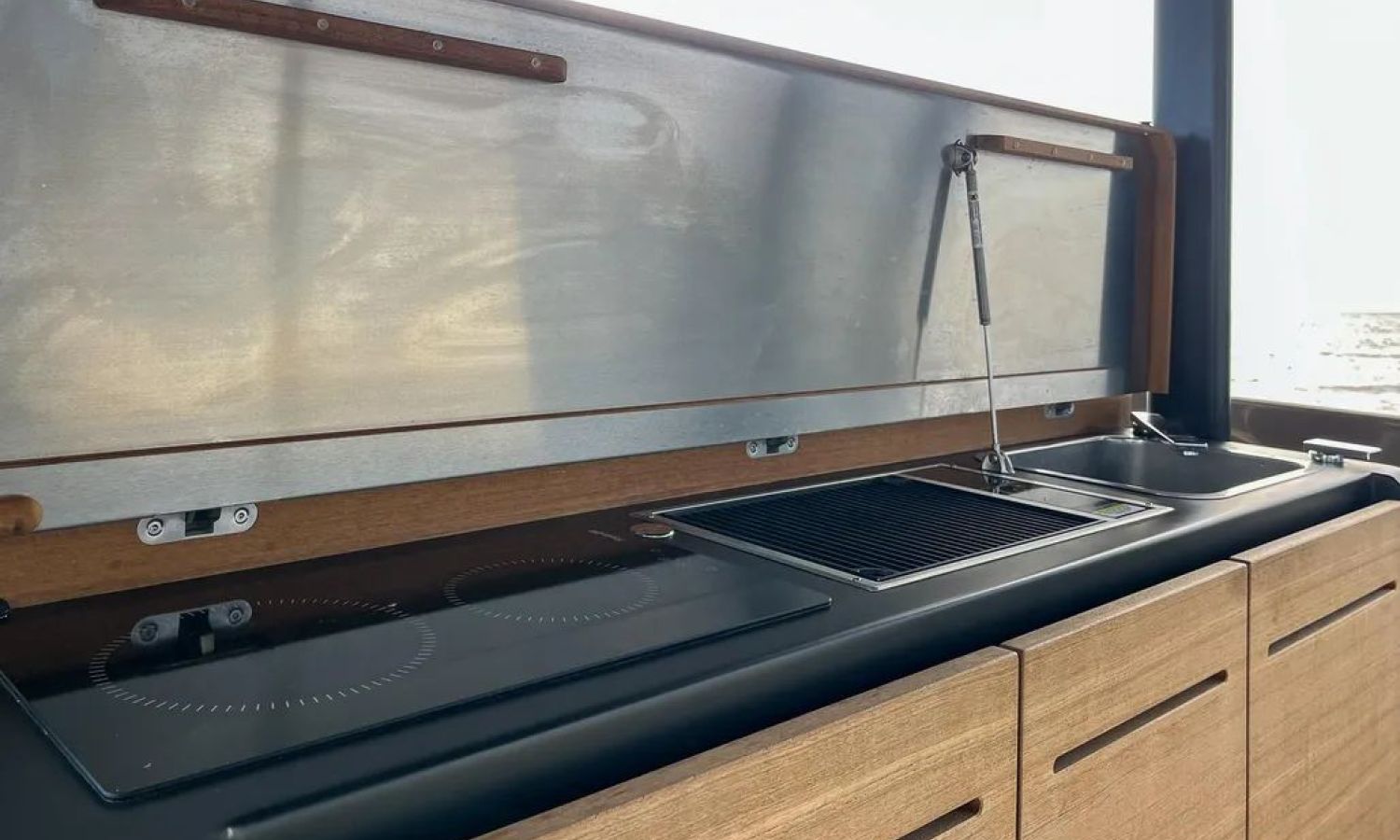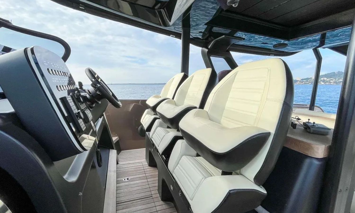 Mandos en el volante - Hélice de proa con extintor automático - 2 Cabinas - Gps/Plotter/Sonda - Piloto automático Raymarine - Vhf - Radar Raymarine - Estabilizador giroscópico - Nevera en la bañera - Generador - Barbacoa eléctrica en la bañera - Máquina de hielo - Luces subacuáticas - Pasarela hidráulica - Equipo de audio - Bañera en teca - Molinete con mando a distáncia y contador de cadena - T-Top - Tv.Descripción embarcación