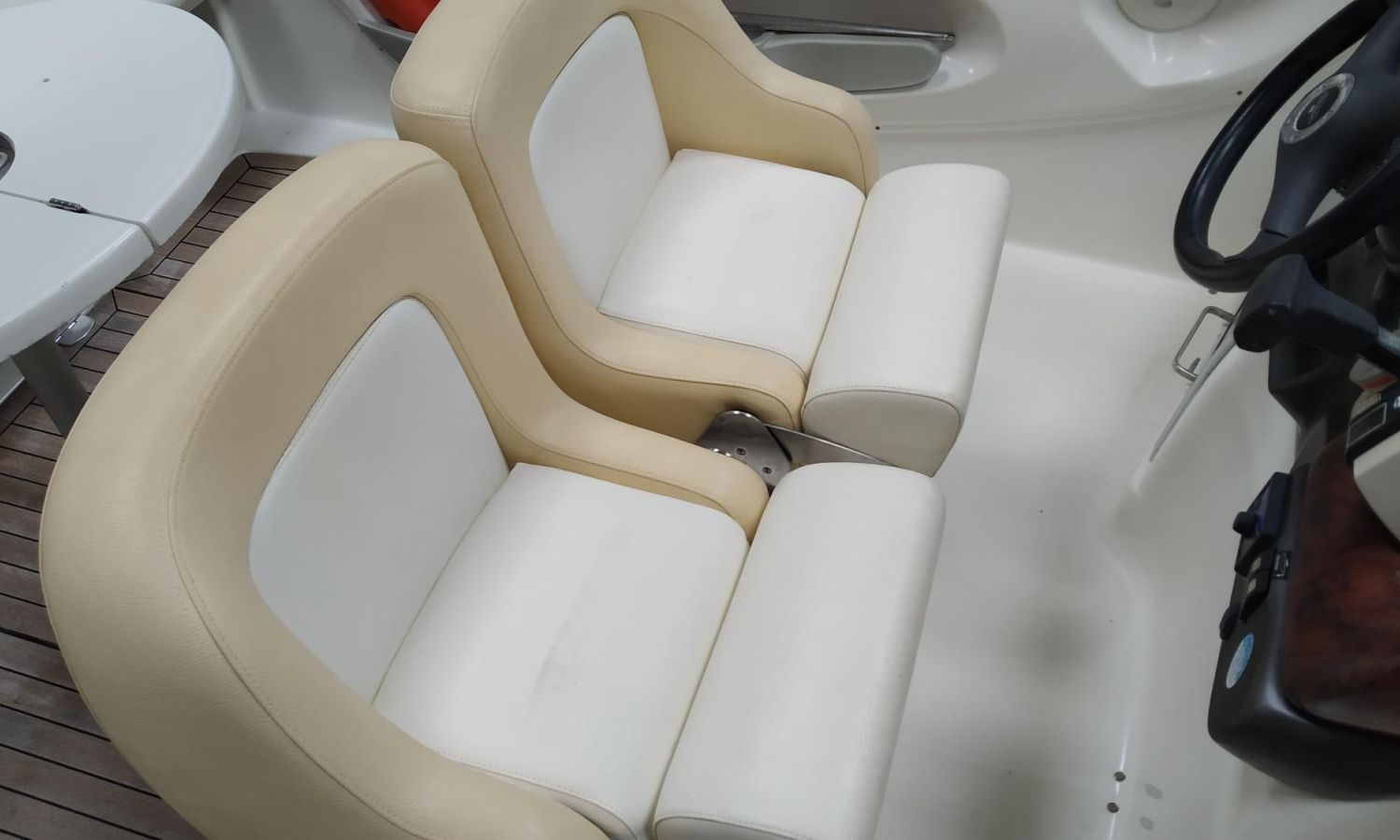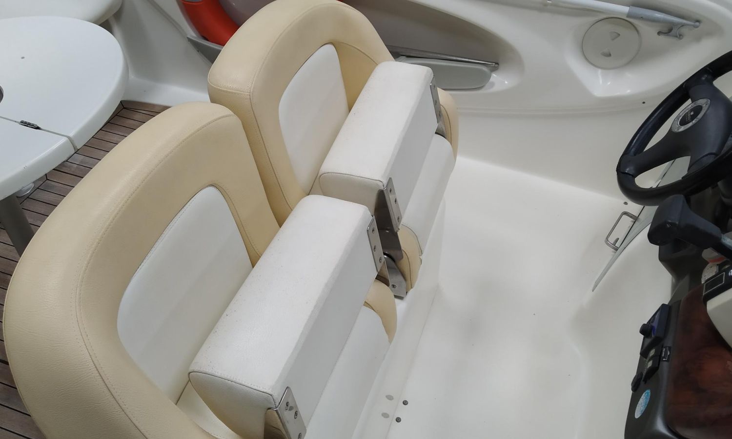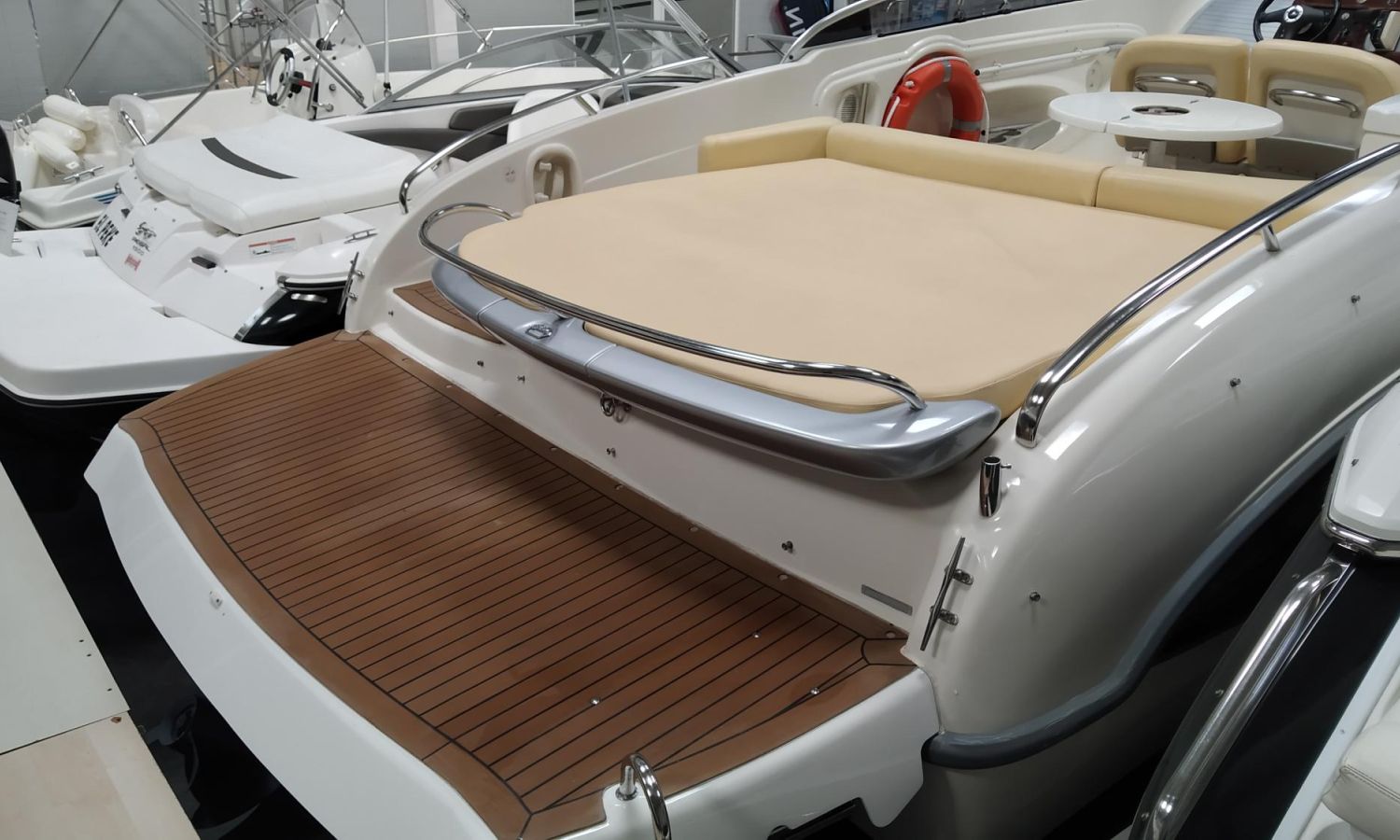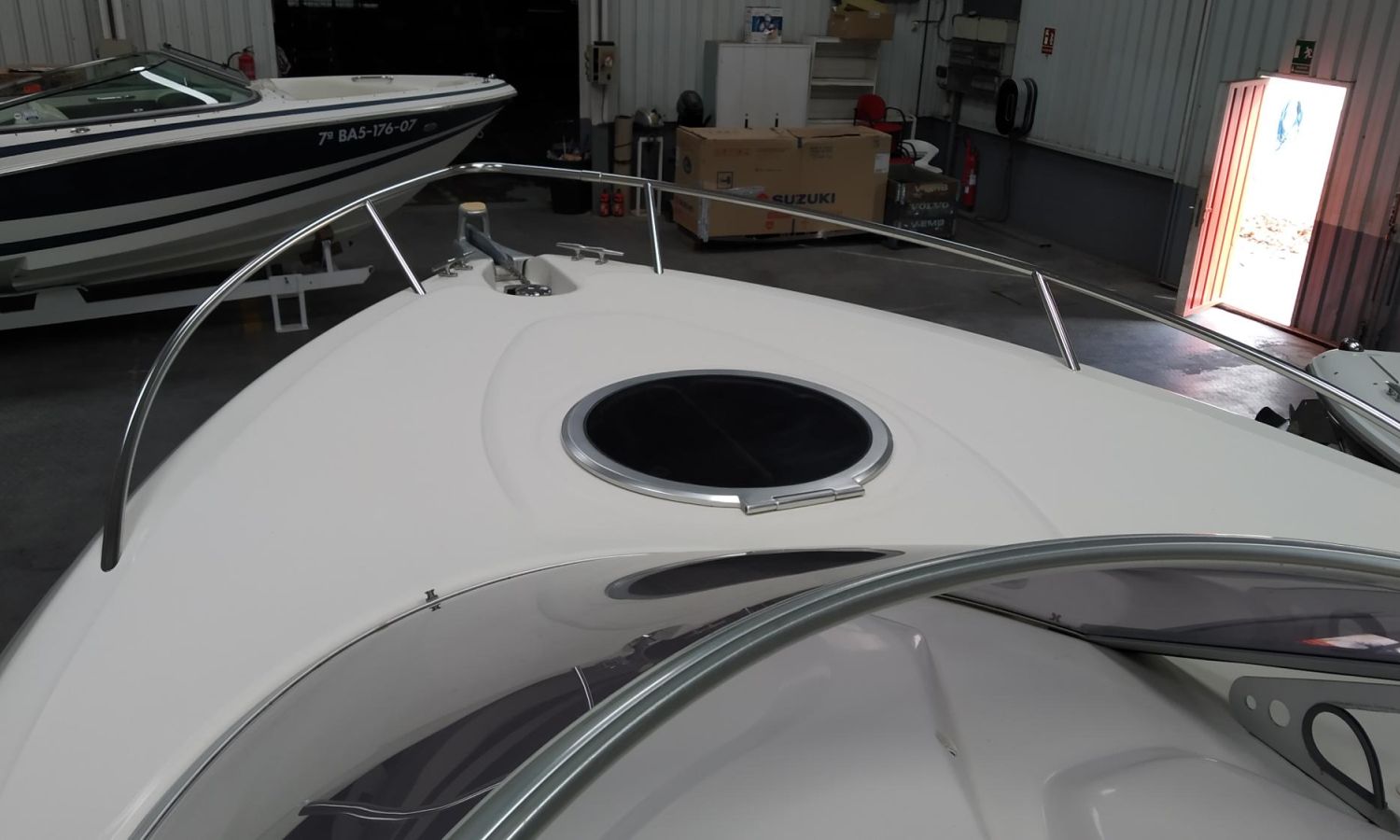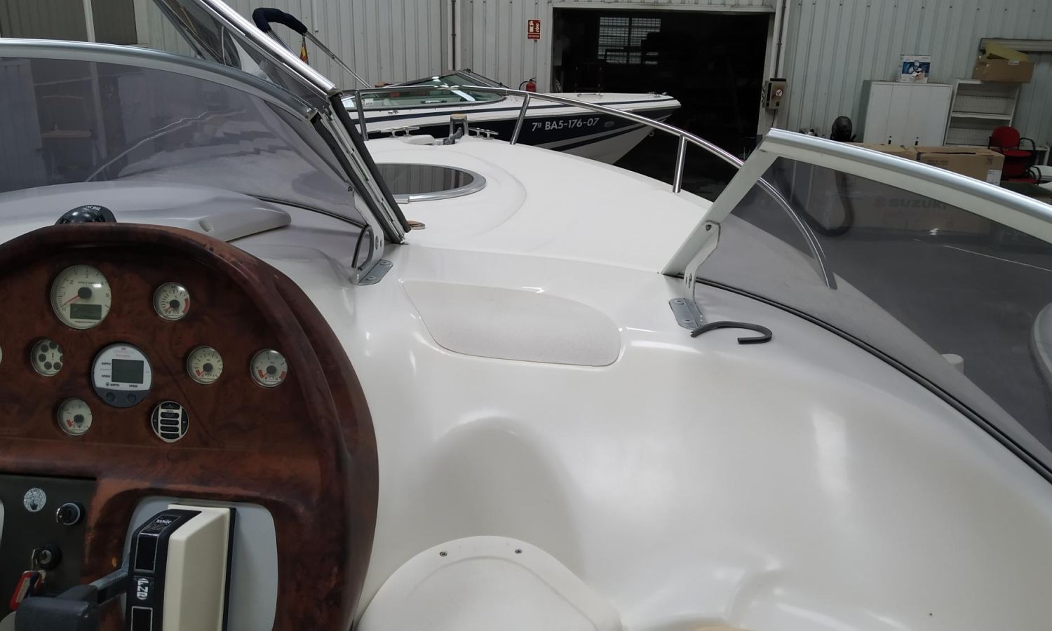 Lona de fondeo - Toldo parasol - Molinete eléctrico con ancla y cadena - Mesa bañera - Mueble-bar en bañera con fregadero y nevera - Depósito de agua - Depósito de combustible - Ducha a popa - Plataforma de baño con escalera - WC marino eléctrico - Depósito de aguas negras - Equipo de música con altavoces - Flexiteek en plataforma de baño - Bañera en teka - Solárium de popa con apertura hidráulica para acceso motor - Antifouling.Descripción embarcación