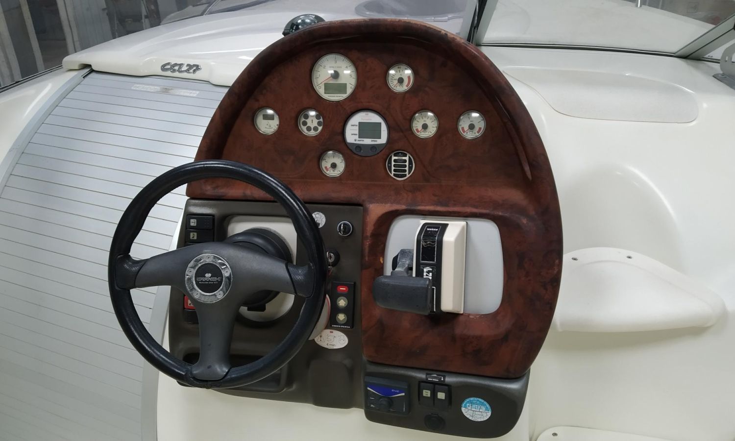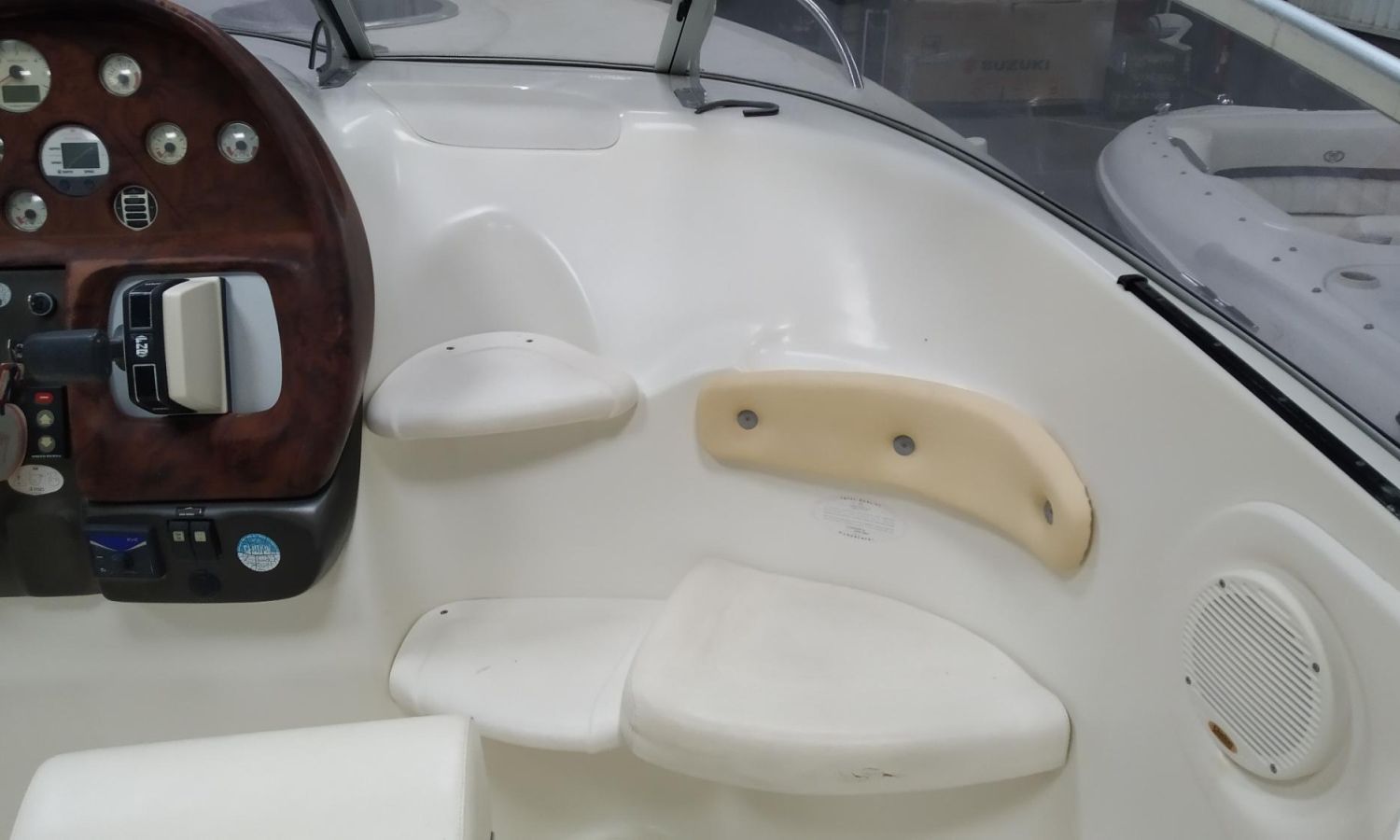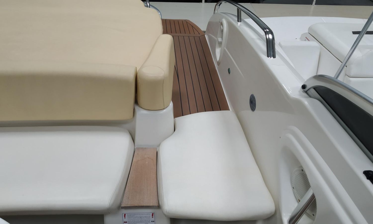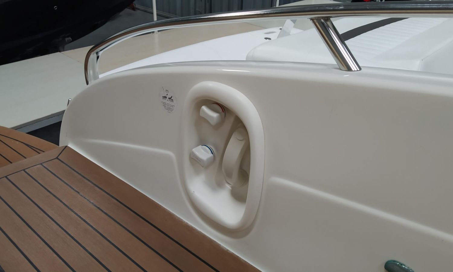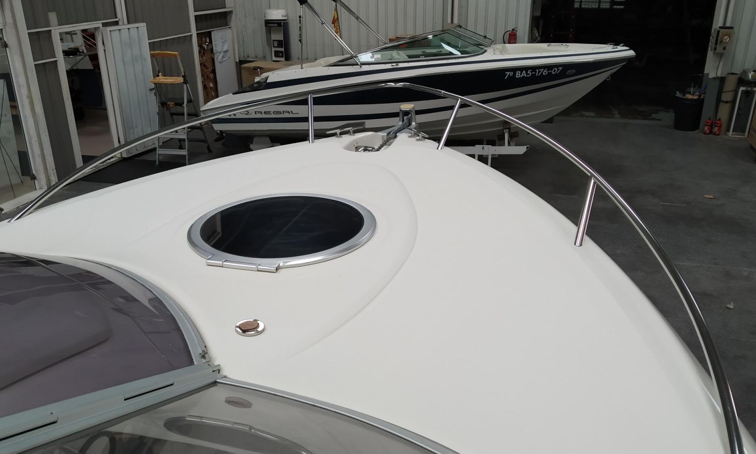 Lona de fondeo - Toldo parasol - Molinete eléctrico con ancla y cadena - Mesa bañera - Mueble-bar en bañera con fregadero y nevera - Depósito de agua - Depósito de combustible - Ducha a popa - Plataforma de baño con escalera - WC marino eléctrico - Depósito de aguas negras - Equipo de música con altavoces - Flexiteek en plataforma de baño - Bañera en teka - Solárium de popa con apertura hidráulica para acceso motor - Antifouling.Descripción embarcación