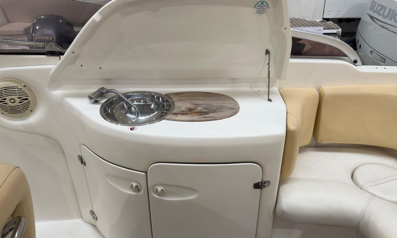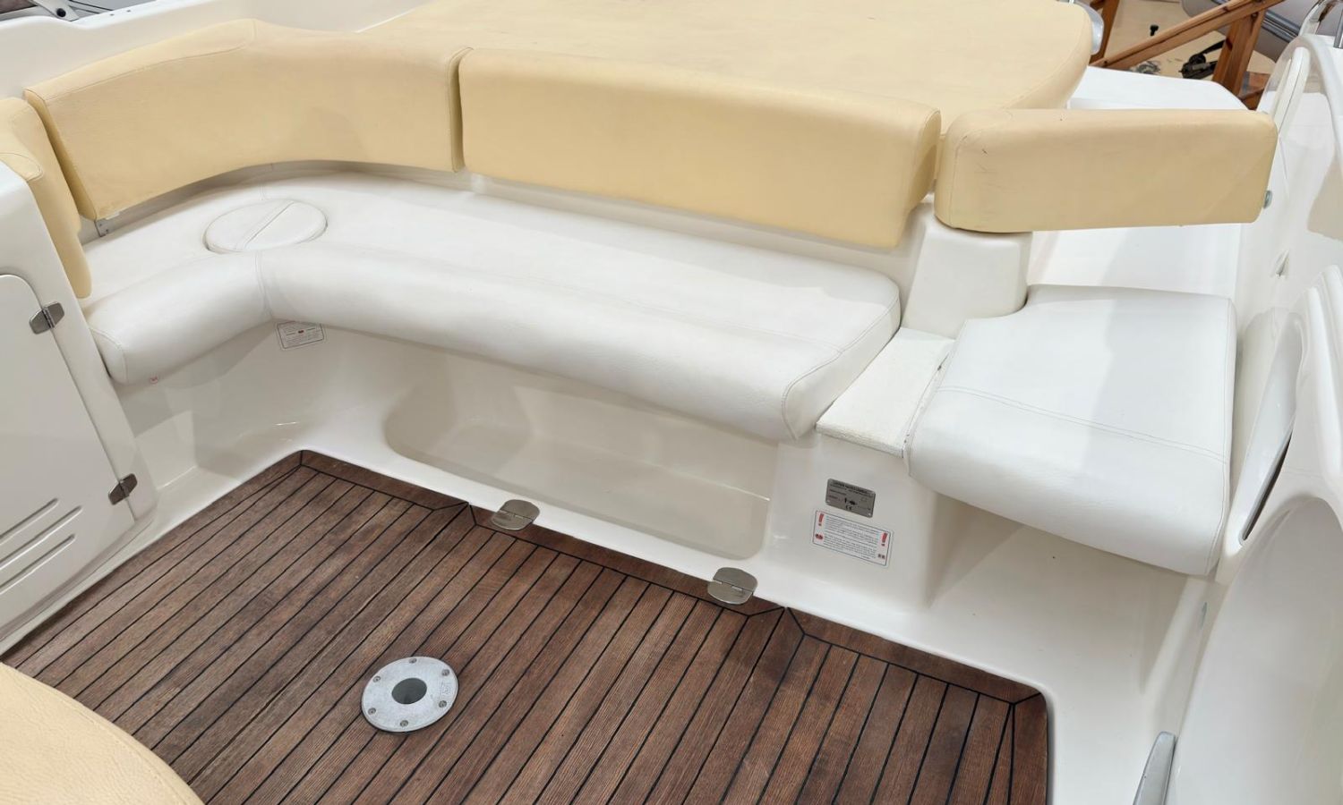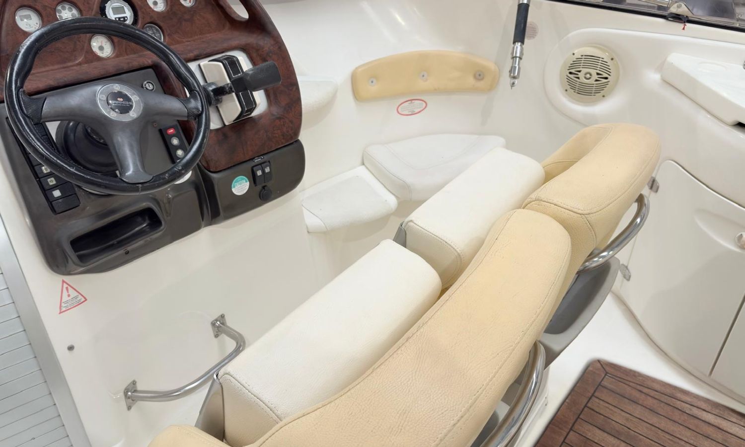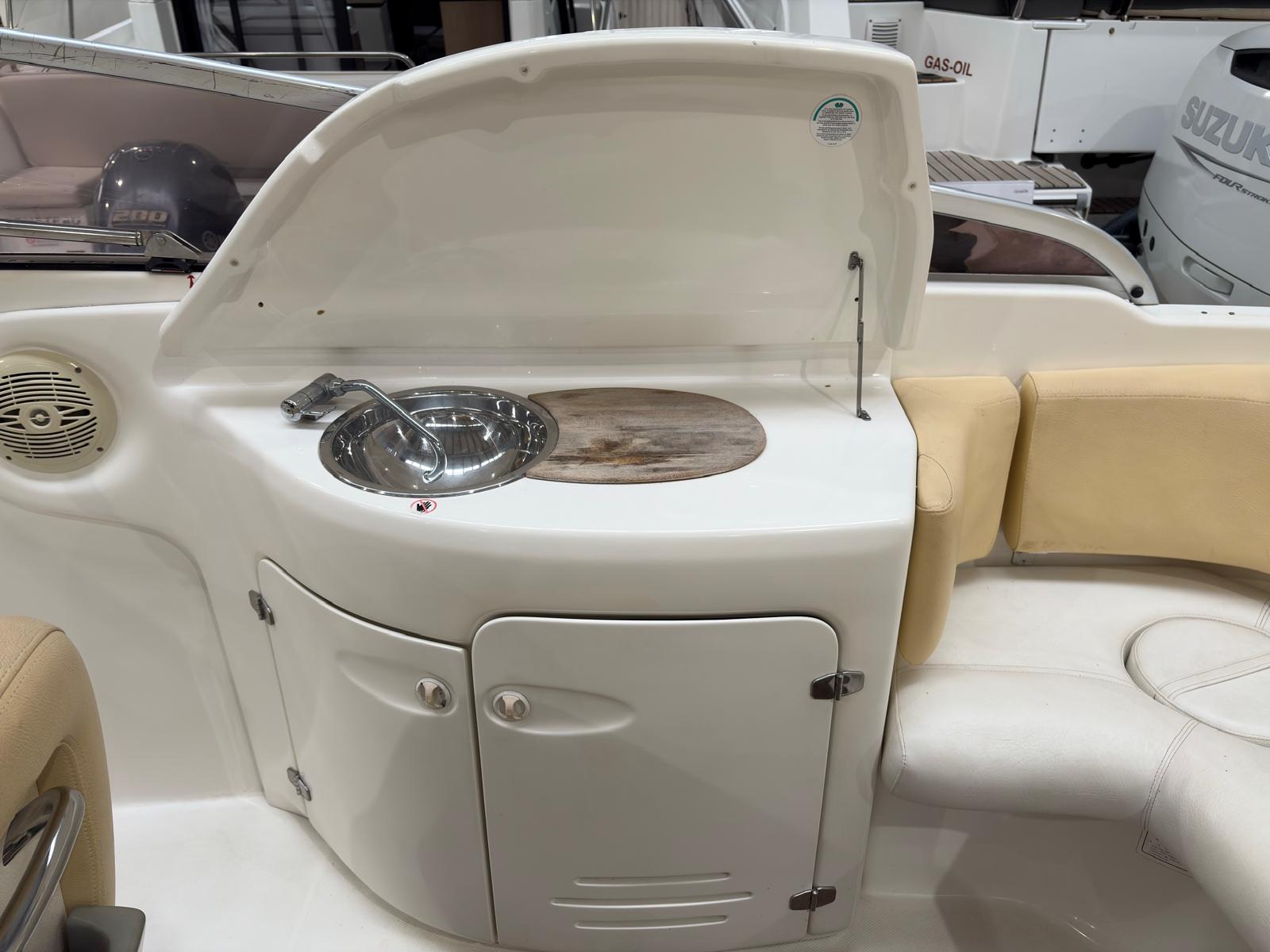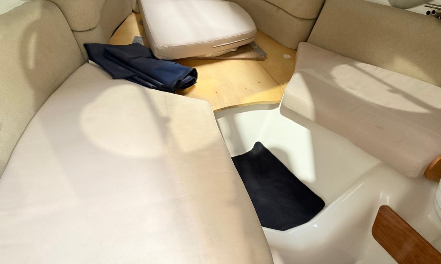 Lona de fondeo - Toldo parasol - Molinete de ancla eléctrico - Mesa en la bañera - Mueble bar con fregadero - Nevera 12 v. - Wc marino con depósito de aguas negras - Plataforma de baño con escalera - Toma de puerto - Cargador de baterías - Equipo de audio - Solárium de proa - Solárium de popa - Hélice de proa - Antifouling.Descripción embarcación