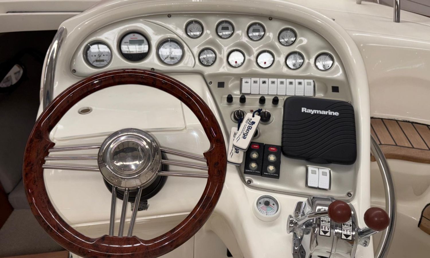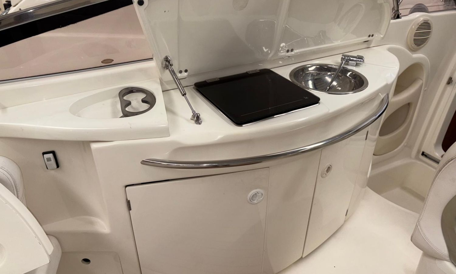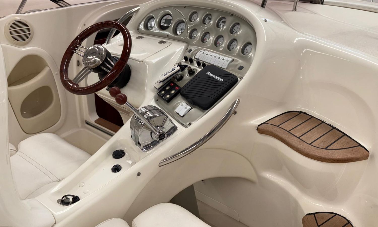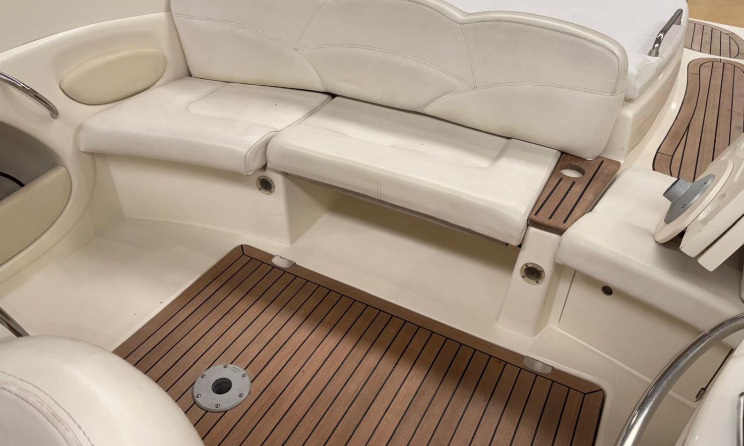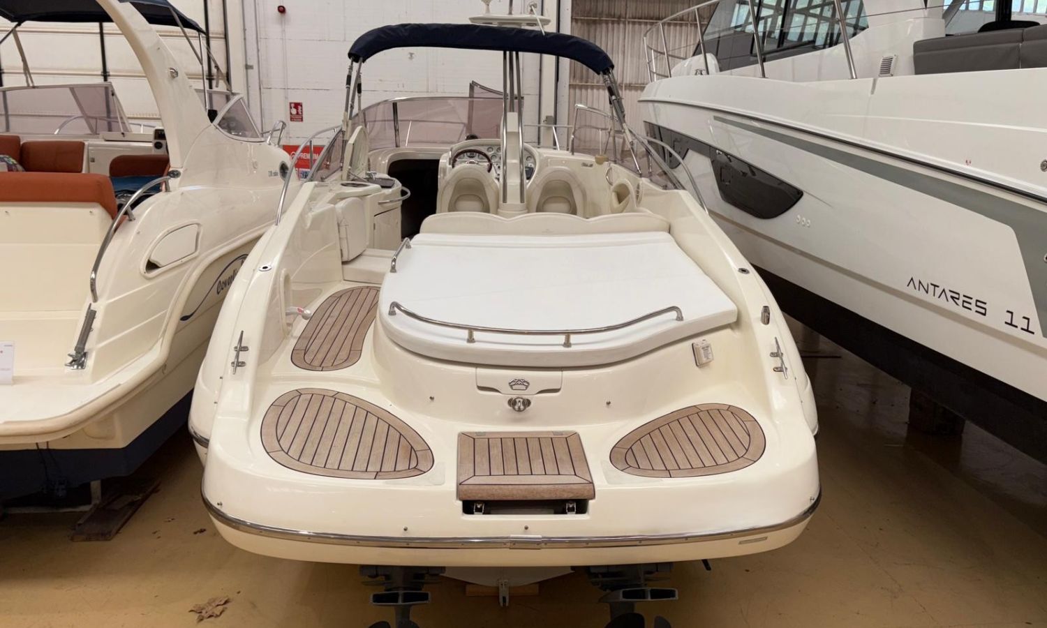 Toldo parasol - Ducha en popa - Plataforma de baño con escalera - Solárium de popa con apertura hidráulica para acceso a motor - Mesa en la bañera - Mueble bar con fregadero - Nevera en la bañera - Cargador de baterias - Toma de puerto - Molinete de ancla eléctrico - Gps/Sonda - Wc marino con depósito de aguas negras - Cabina - Lona de fondeo - Antifouling.