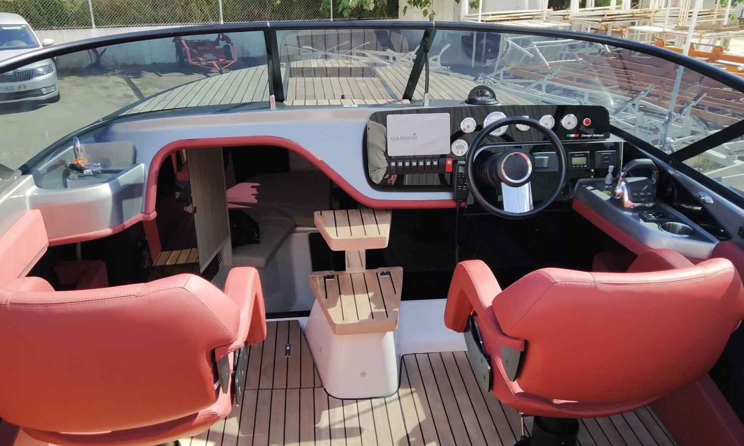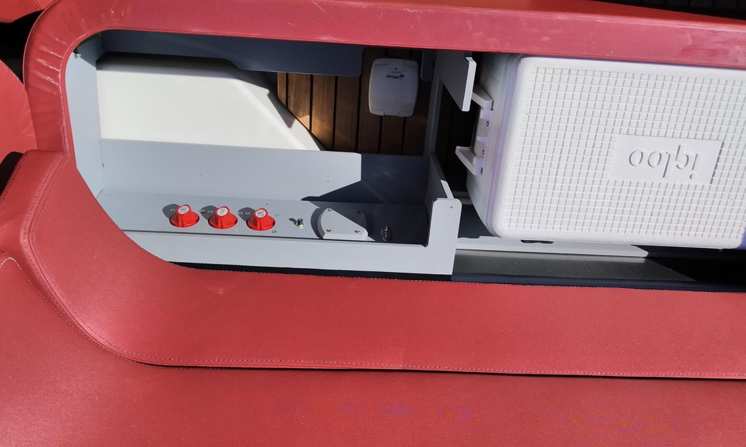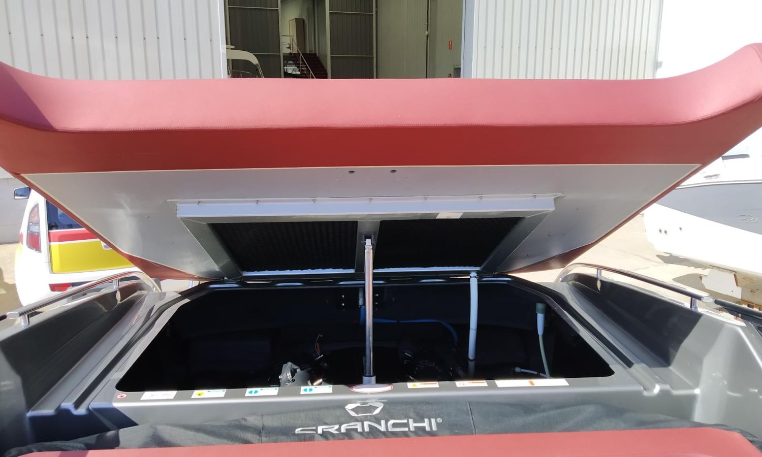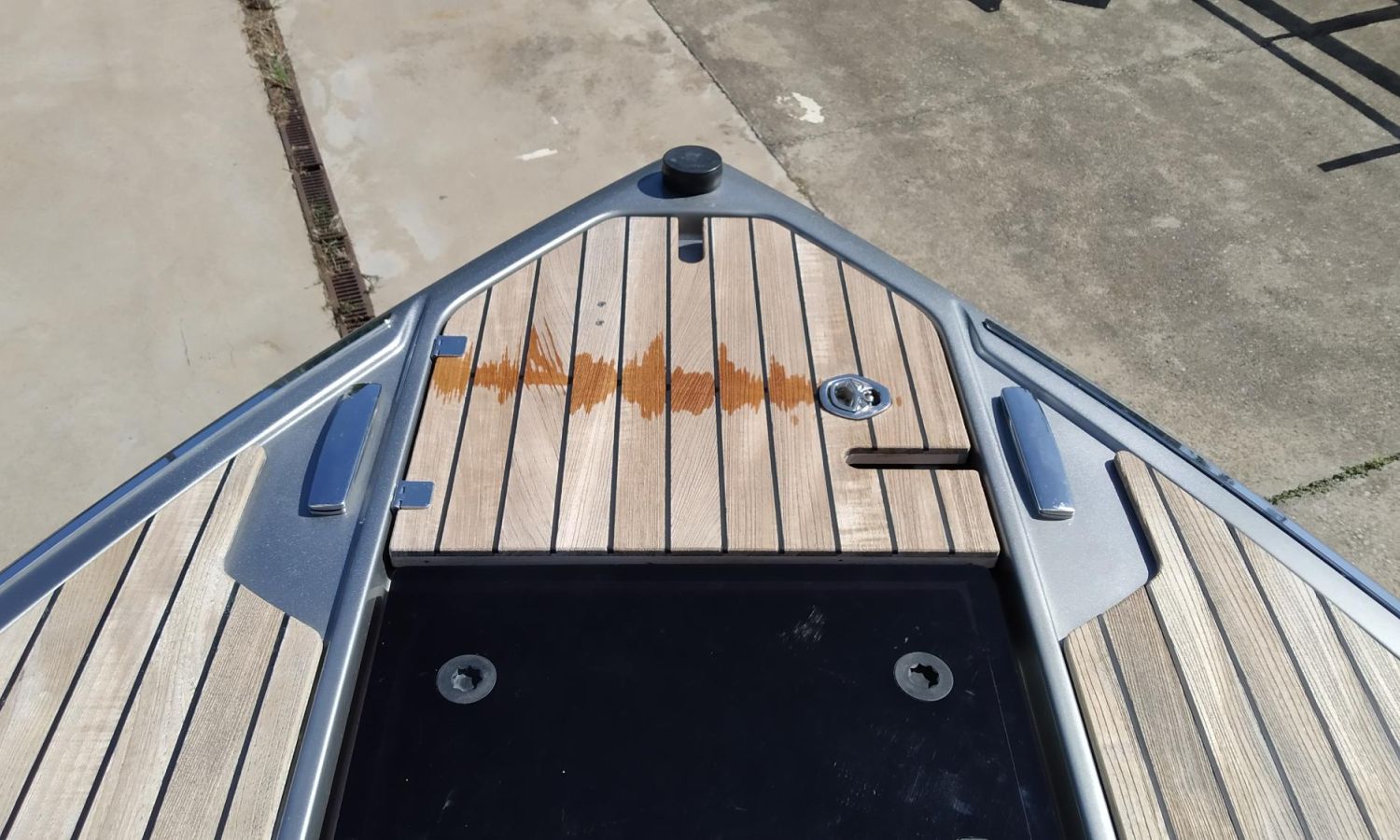 Capota sol microperforada negra - Hélice de proa - Nevera de hielo extraíble 34 l - Radio Fusion con conexión iPod y enchufe USB - Mesa bañera - Plataforma de popa en teka - Teka en puente de proa - Bañera en teka - Lona de fondeo - Trip computer + power trim assitance - Molinete eléctrico con cadena y ancla Ultramarine inox - VHF - Gancho esquí - Antifouling.Descripción embarcación
