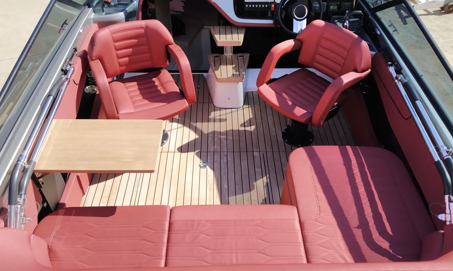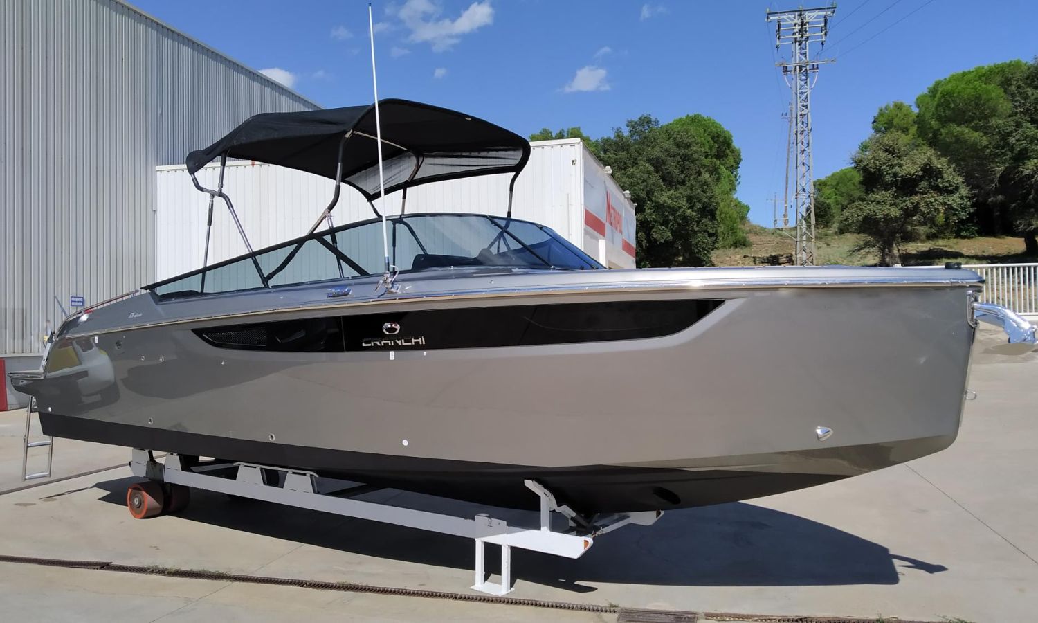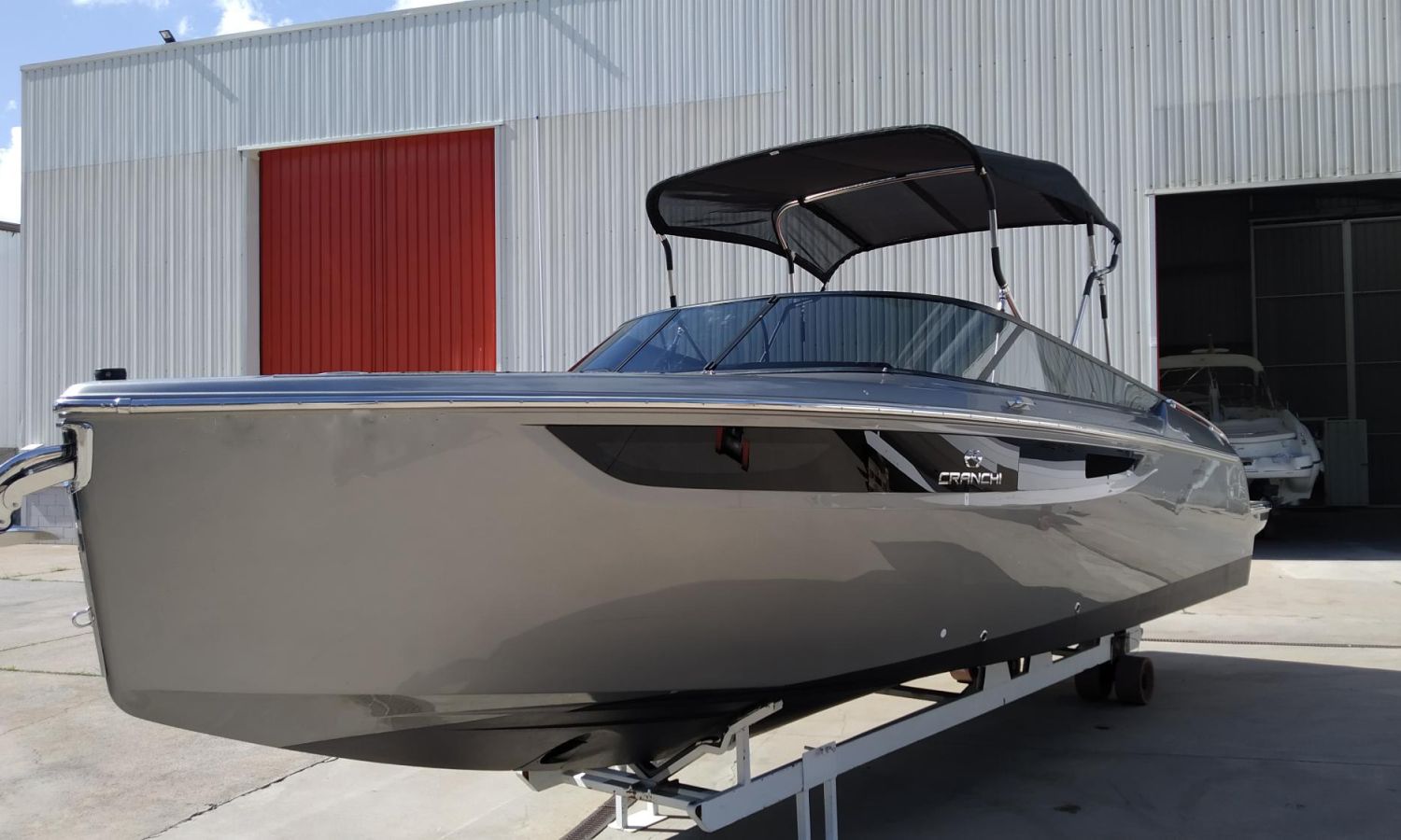 Capota sol microperforada negra - Hélice de proa - Nevera de hielo extraíble 34 l - Radio Fusion con conexión iPod y enchufe USB - Mesa bañera - Plataforma de popa en teka - Teka en puente de proa - Bañera en teka - Lona de fondeo - Trip computer + power trim assitance - Molinete eléctrico con cadena y ancla Ultramarine inox - VHF - Gancho esquí - Antifouling.Descripción embarcación