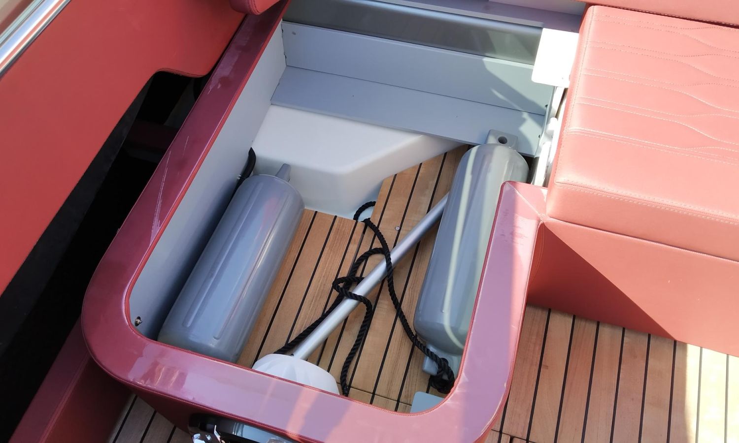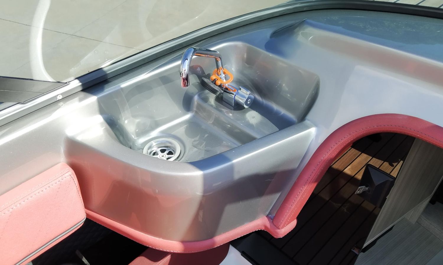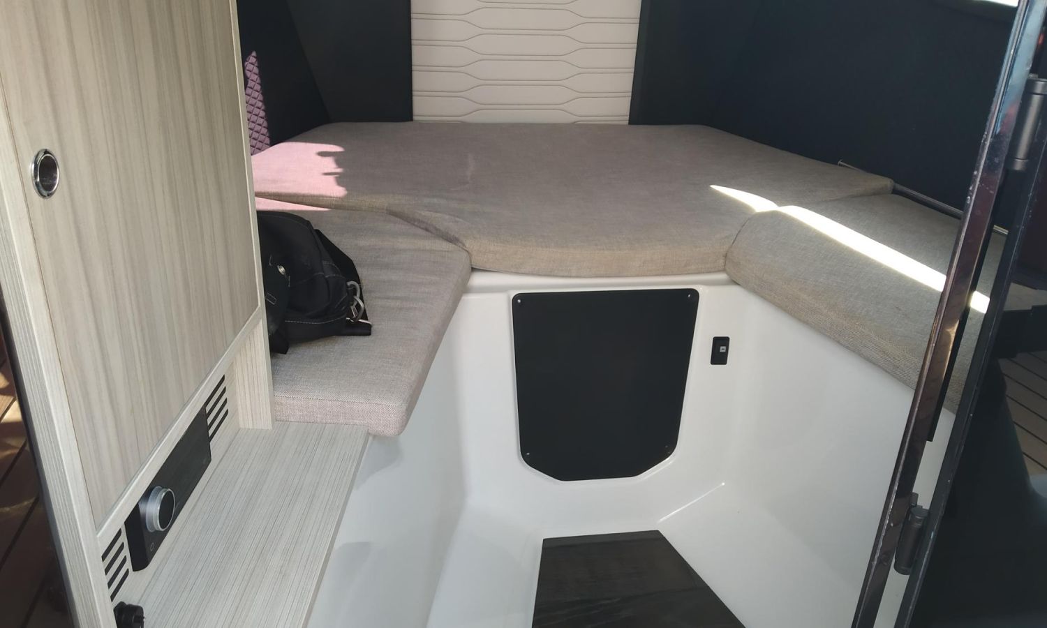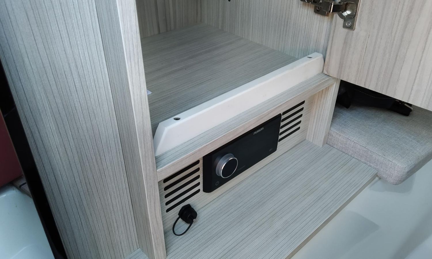 Capota sol microperforada negra - Hélice de proa - Nevera de hielo extraíble 34 l - Radio Fusion con conexión iPod y enchufe USB - Mesa bañera - Plataforma de popa en teka - Teka en puente de proa - Bañera en teka - Lona de fondeo - Trip computer + power trim assitance - Molinete eléctrico con cadena y ancla Ultramarine inox - VHF - Gancho esquí - Antifouling.Descripción embarcación