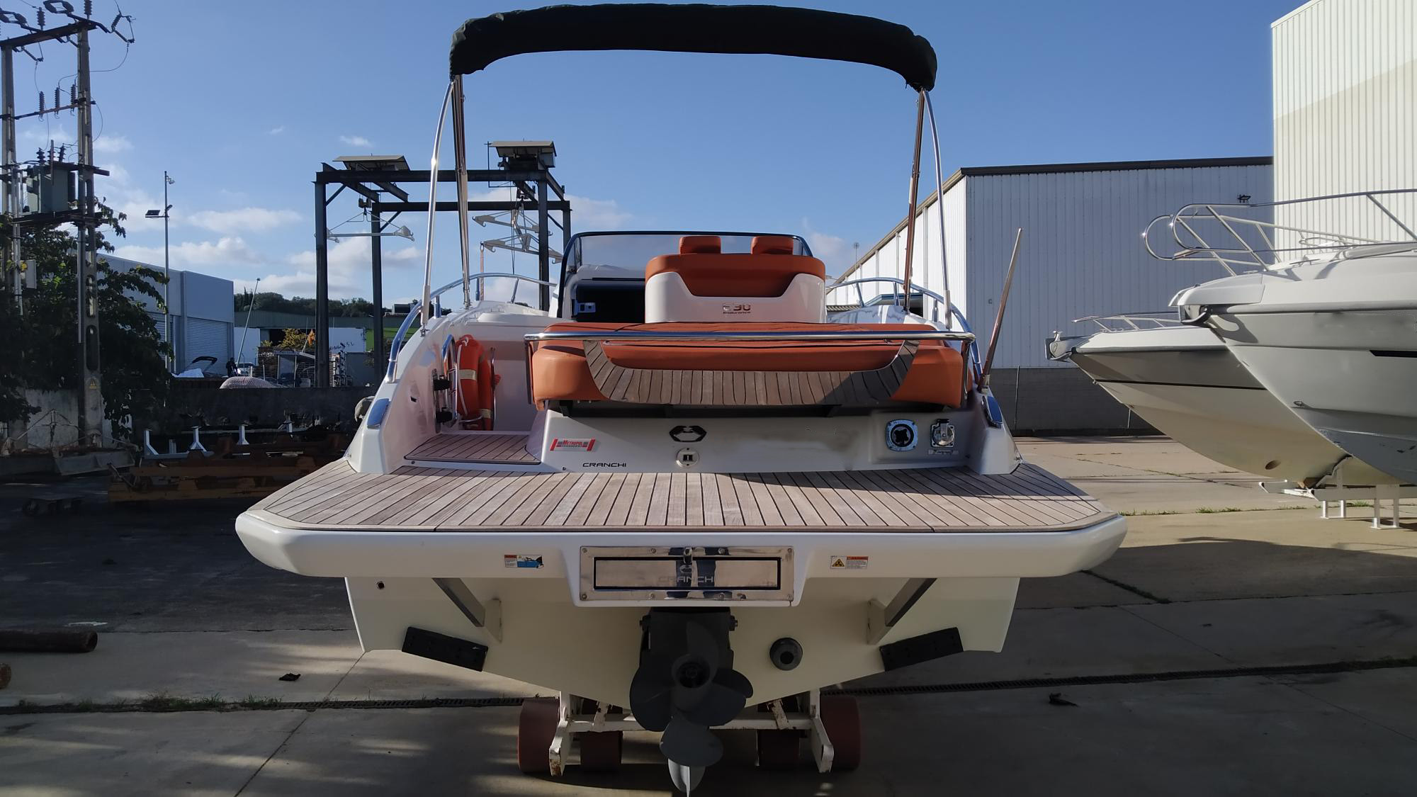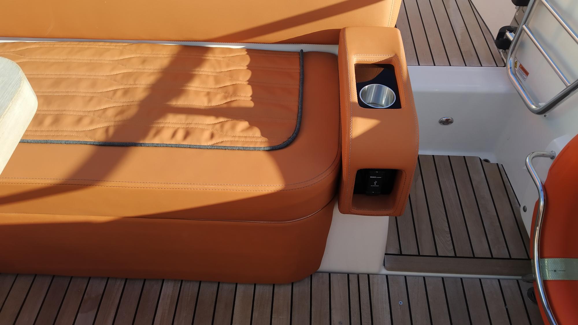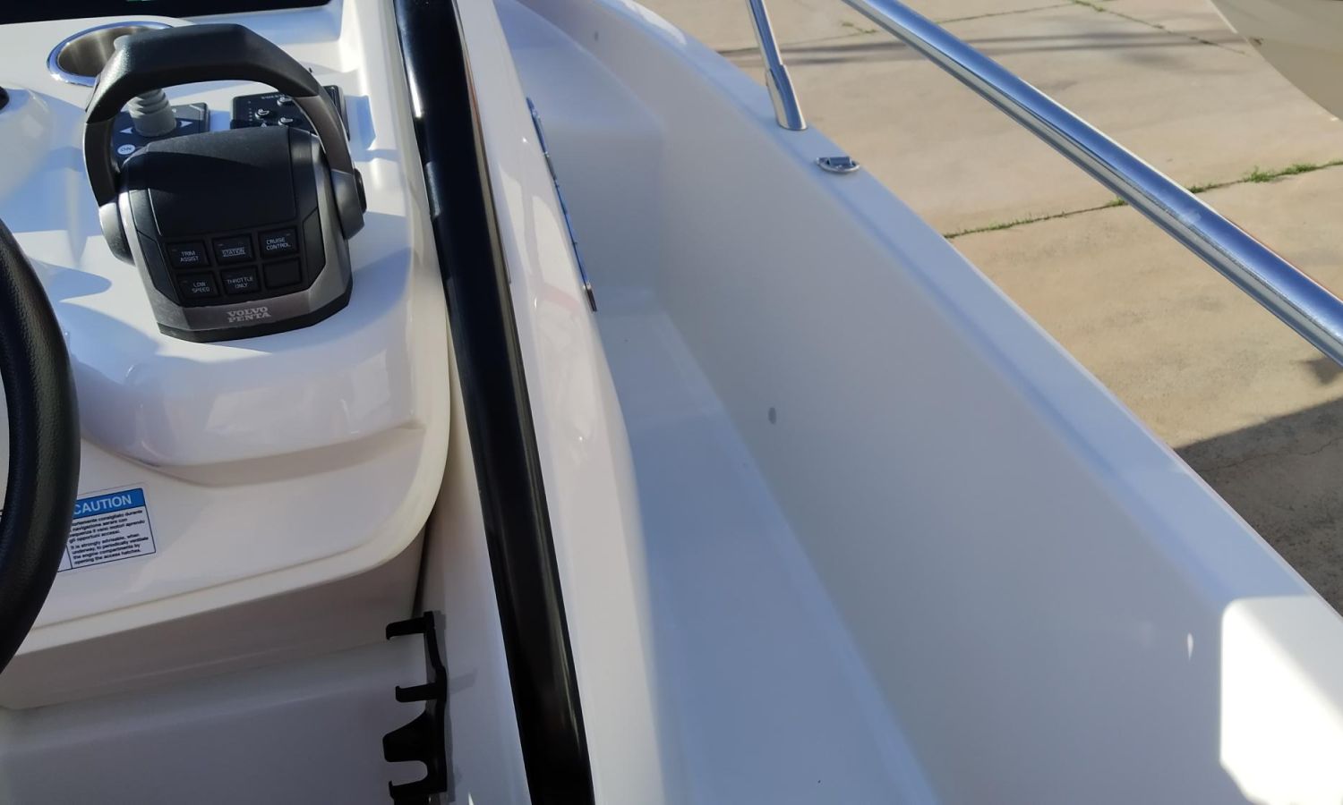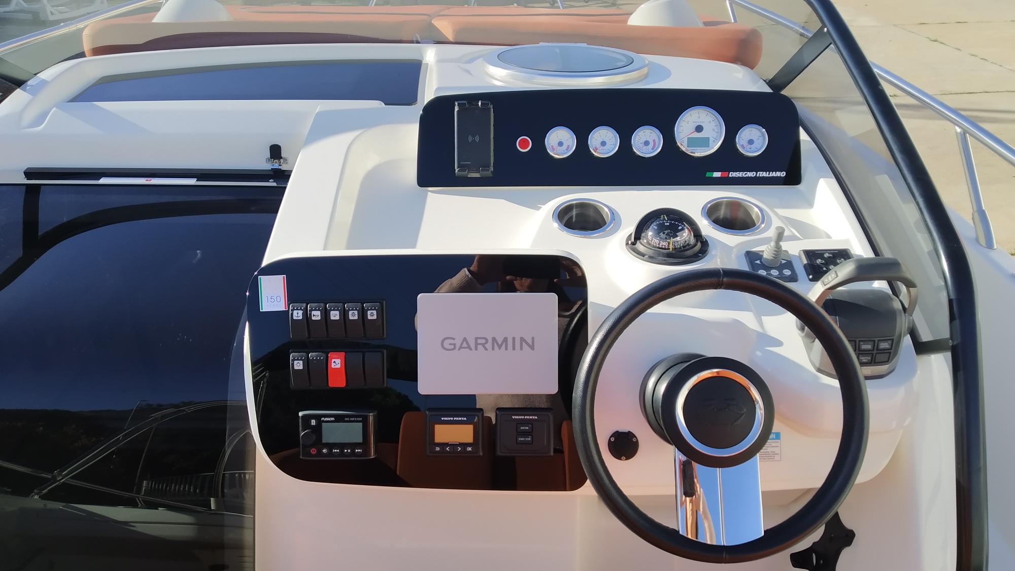 Hélice de proa - Molinete eléctrico con ancla, cadena, mando a distancia y cuentametros cadena - GPS Garmin - Instalación eléctrica 230 V con cargador de baterías - Toma puerto con cable de conexión - Toldo parasol con arquillada en inox - Bañera en teka - Plataforma de baño en teka con escalera - Colchoneta de proa y funda - Lona de fondeo - Nevera en bañera - Horno microondas - Radio Fusion con Bluetooth/USB, altavoces en cabina y bañera, amplificador, subwoofer y mando a distancia en la bañera - Mesa interior convertible en cama - WC con depósito de aguas negras - Antifouling.Descripción embarcación