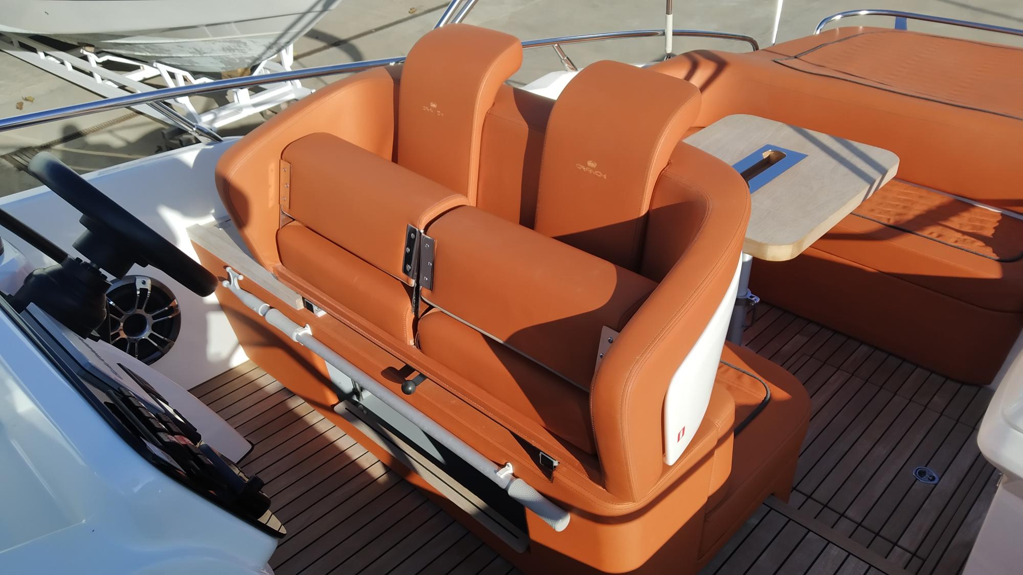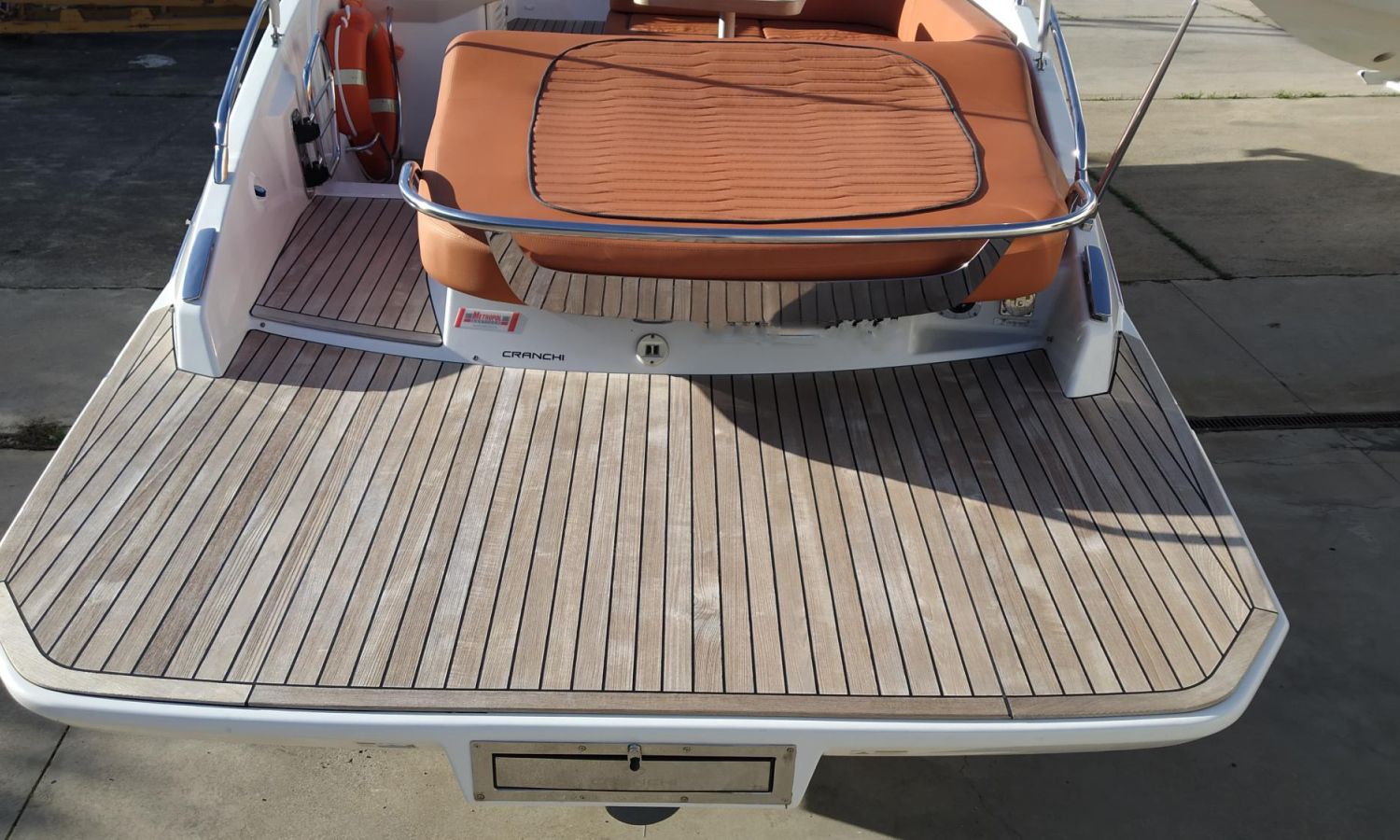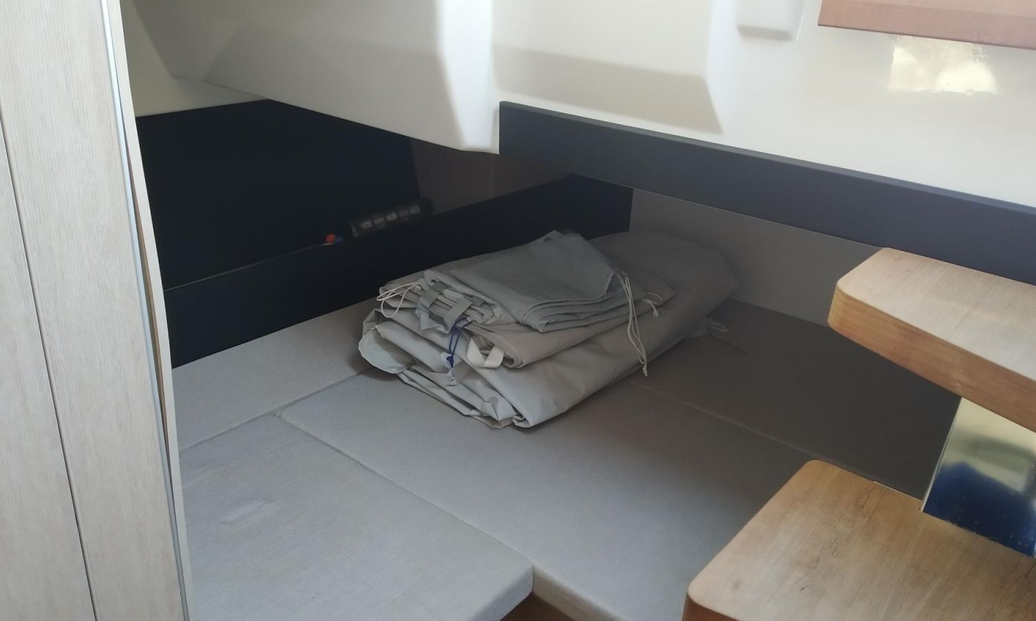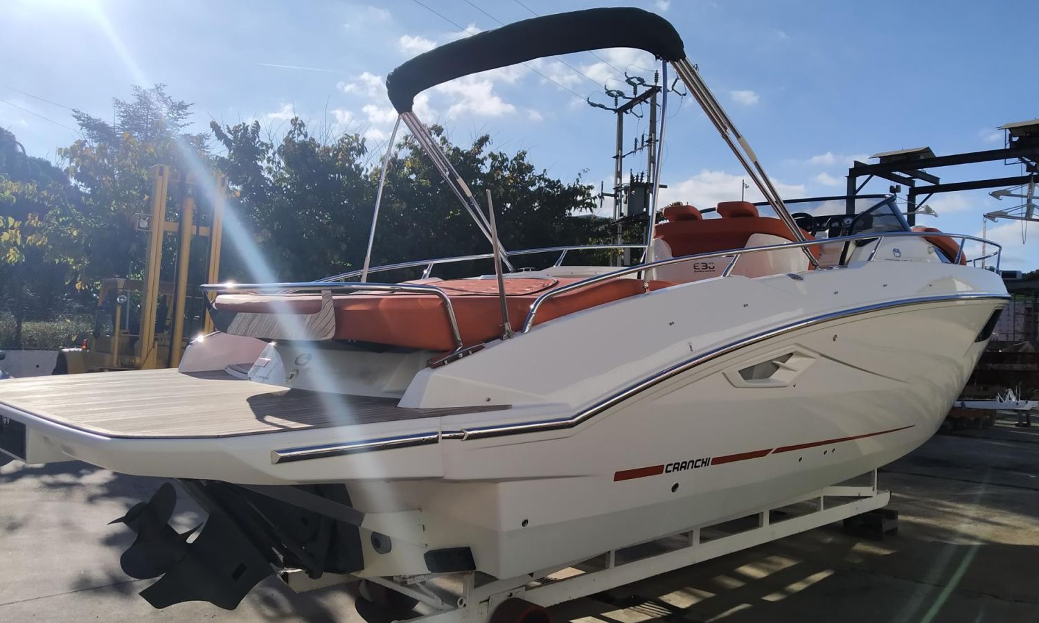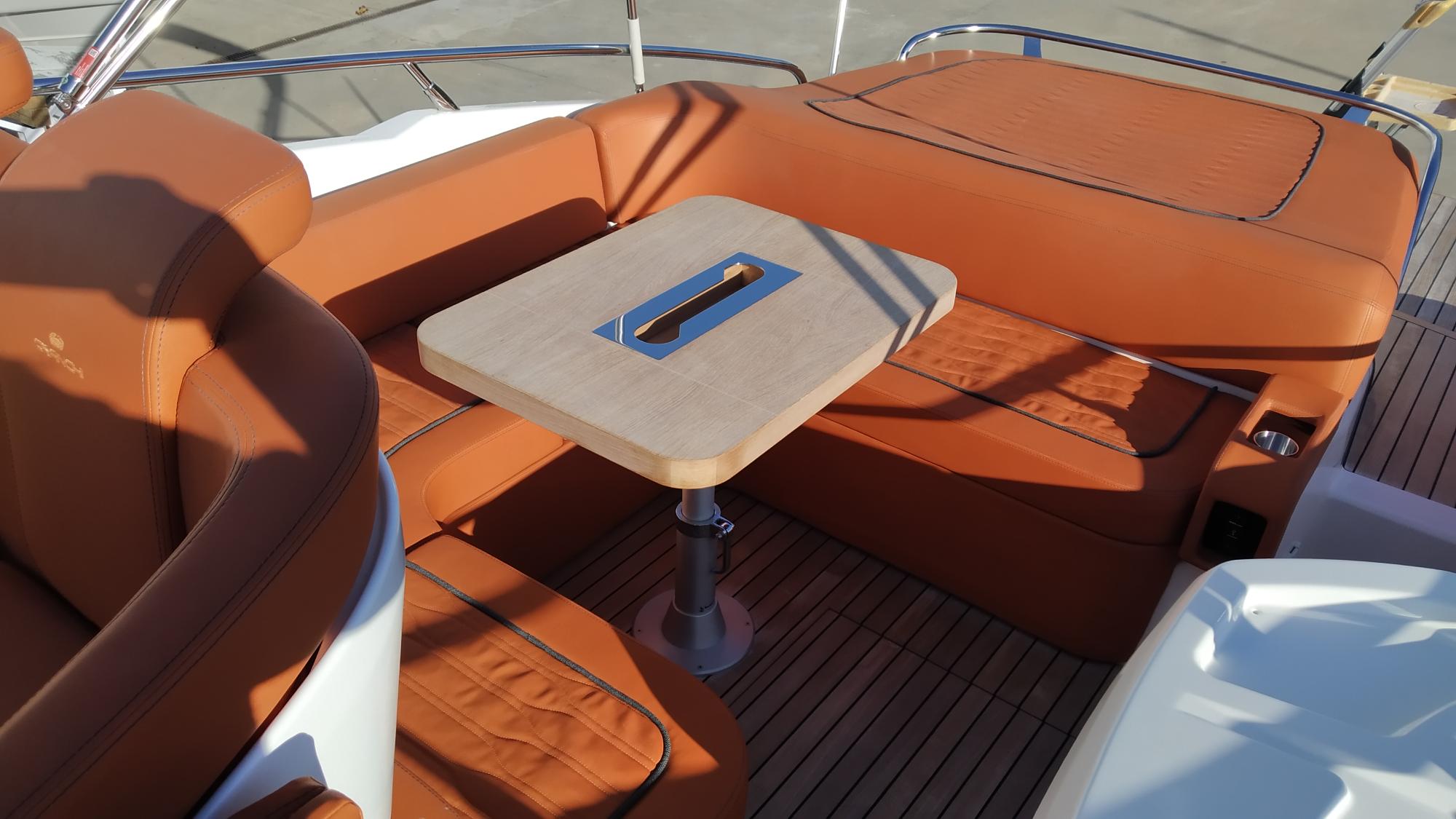 Hélice de proa - Molinete eléctrico con ancla, cadena, mando a distancia y cuentametros cadena - GPS Garmin - Instalación eléctrica 230 V con cargador de baterías - Toma puerto con cable de conexión - Toldo parasol con arquillada en inox - Bañera en teka - Plataforma de baño en teka con escalera - Colchoneta de proa y funda - Lona de fondeo - Nevera en bañera - Horno microondas - Radio Fusion con Bluetooth/USB, altavoces en cabina y bañera, amplificador, subwoofer y mando a distancia en la bañera - Mesa interior convertible en cama - WC con depósito de aguas negras - Antifouling.Descripción embarcación