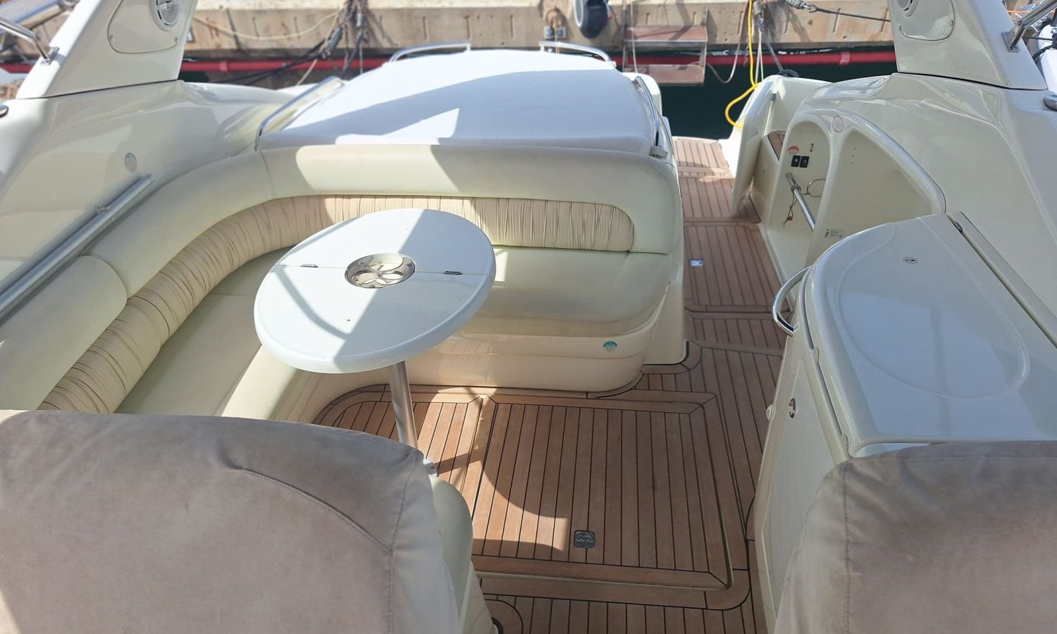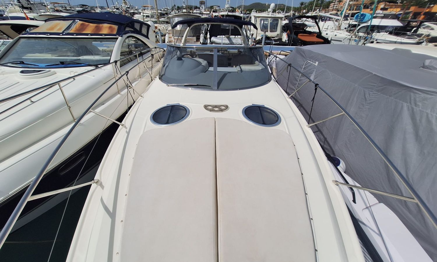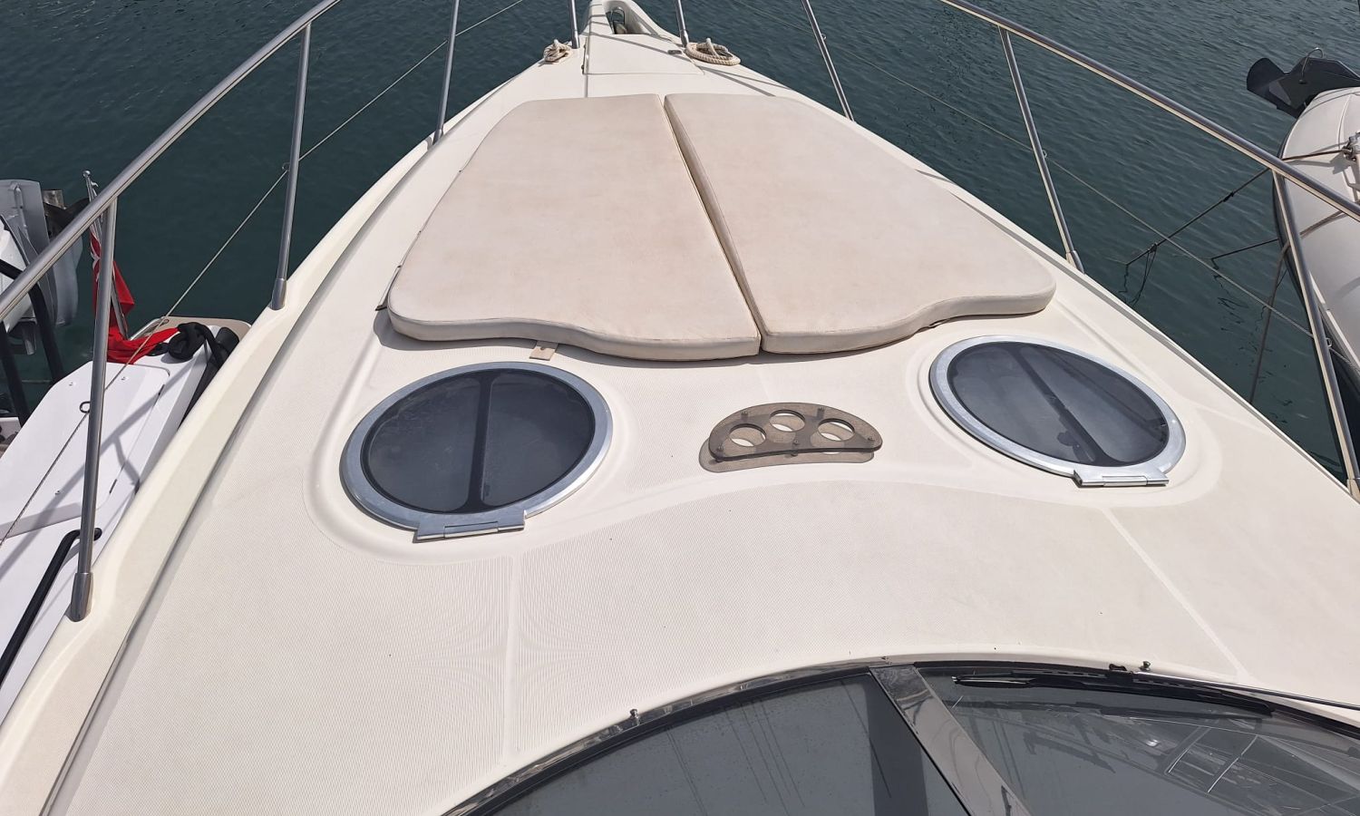 Generador - Aire acondicionado - Equipo audio - Fundas para consola y asientos - Funda camper - Bimini - 2 neveras - Microondas - Calentador de agua - Cargador de baterías - Teca en el suelo - Control de cabrestante de ancla - Escotilla de apertura y cierre electrohidráulico - Ducha - Vhf - Gps/Plotter/Sonda - Piloto automático - Hélice de proa - Bateria sevicios nueva 2025 - Flaps - Antifouling.Descripción embarcación
